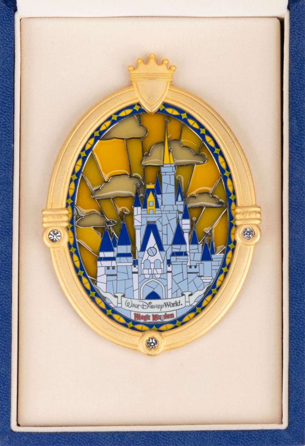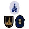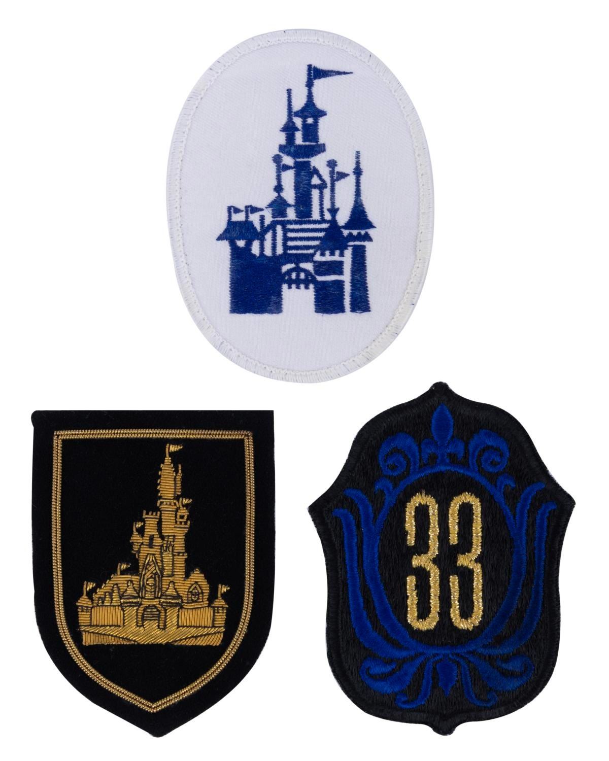 (Disney Parks, 2000s) A Collection of (3) Disney Parks Cast Patches. This collection includes embroidered patches designed and intended for use by Hosts and Hostesses of Disneyland and Walt Disney World. This lot includes a white and blue patch with Sleeping Beauty Castle used on Cooks and Chef's uniforms, (1) gold metal thread patch with Cinderella Castle used by early WDW Guides, and (1) Club 33 Logo Patch. Each patch is in very good to fine condition with minor fading to colors and wear to textile.