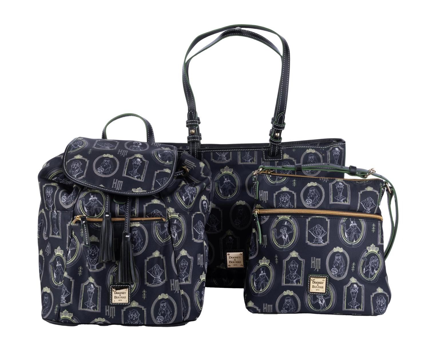 (Dooney & Bourke, 2015) A Set of (3) Haunted Mansion Portraits (3) Bags by Dooney & Bourke. This collection contains a backpack, tote handbag, and crossbody bag featuring ghostly portraits. Each piece is in fine condition with its original merchandise tags attached.