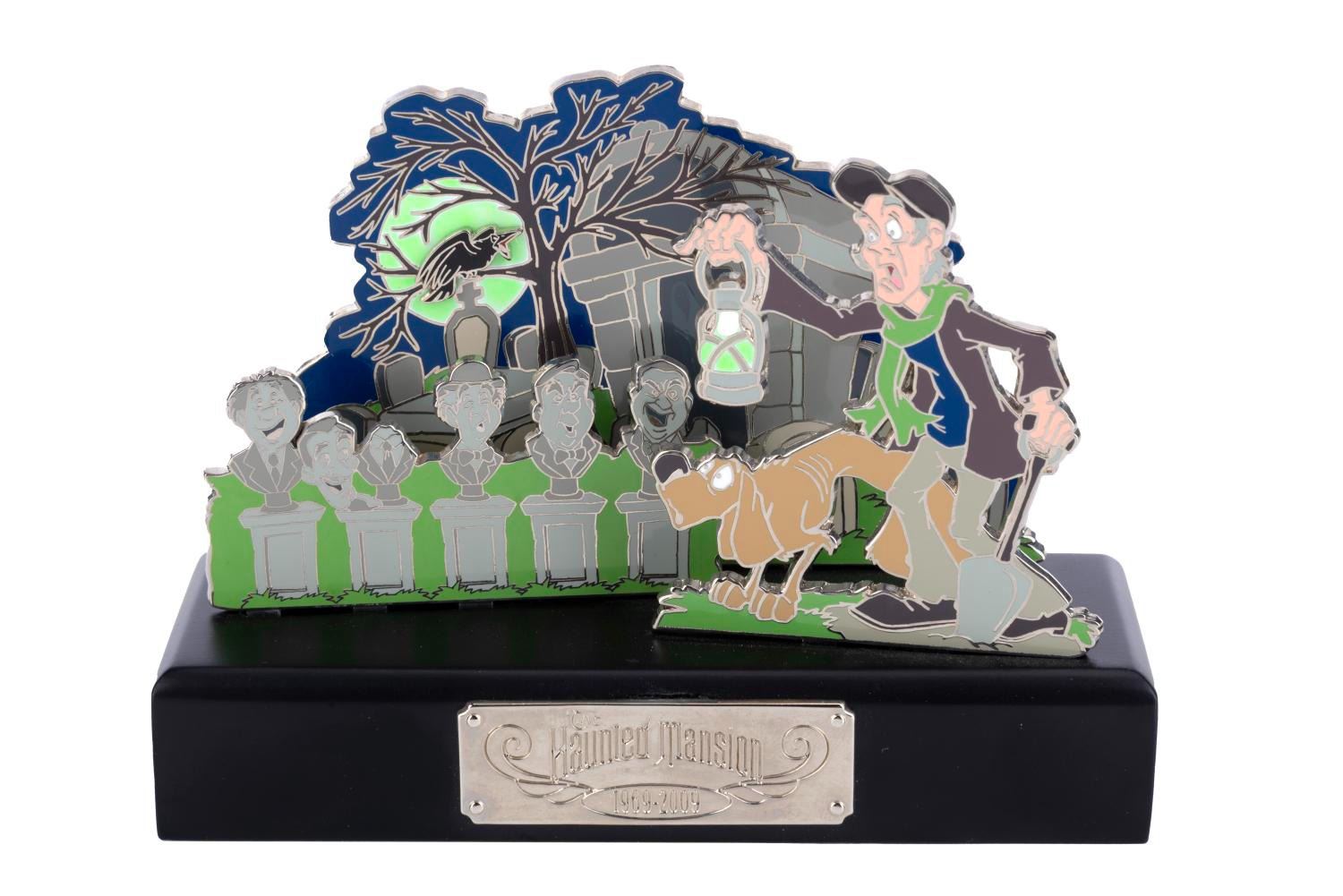 (Disneyland, 2009) A set of (3) "Stand Up pins" of the caretaker & dog, singing busts, and Haunted Mansion Graveyard, released in a Limited Edition of 250 at the O-Pin House event At Disneyland. The piece is in fine condition in original box.