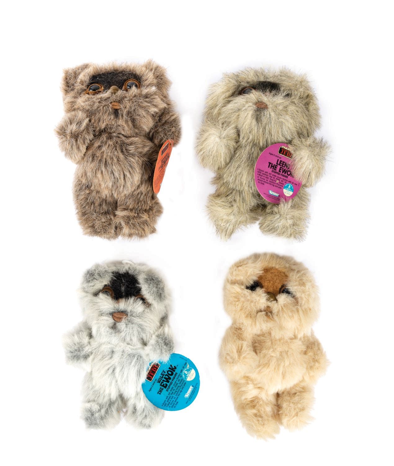 (Kenner/Lucasfilm, 1983) A complete set of (4) Ewok baby plush, released in time with their debut in "Return of the Jedi." Wiley, Leeni, and Mookiee are complete with original tag, Nippet is not. Each measuring 8"x5", the plush figures are in very good condition, with some creases to their tags.