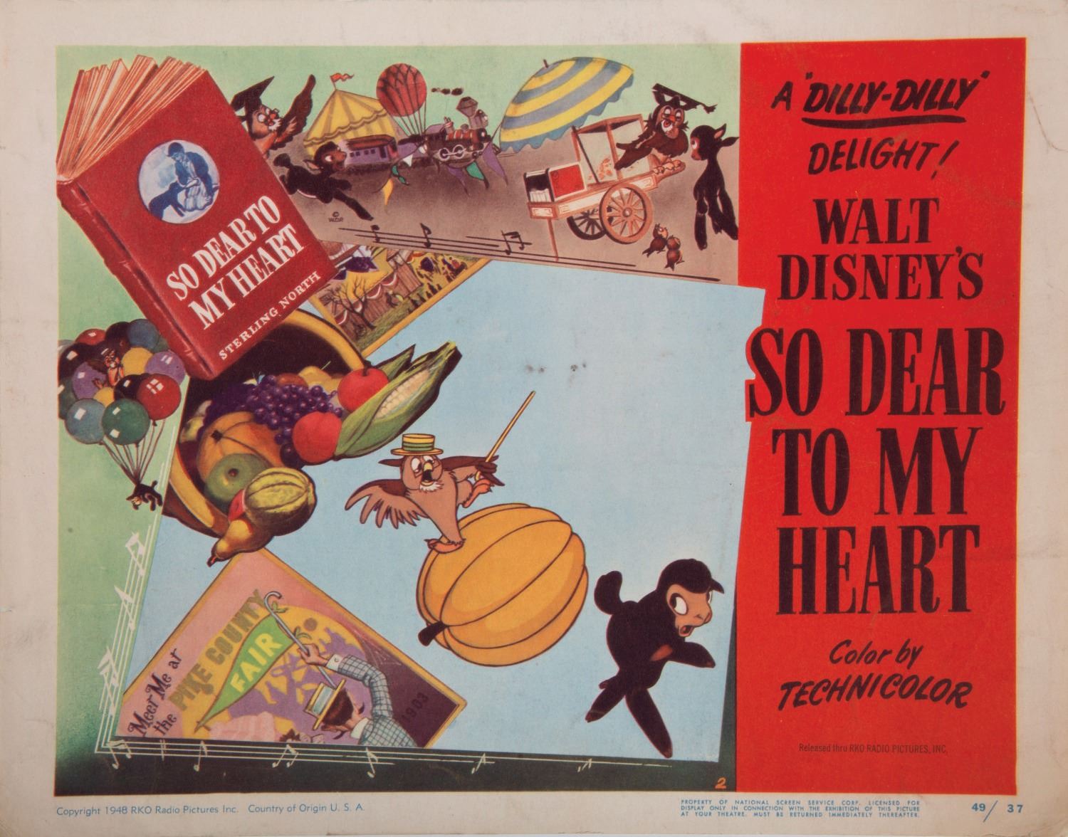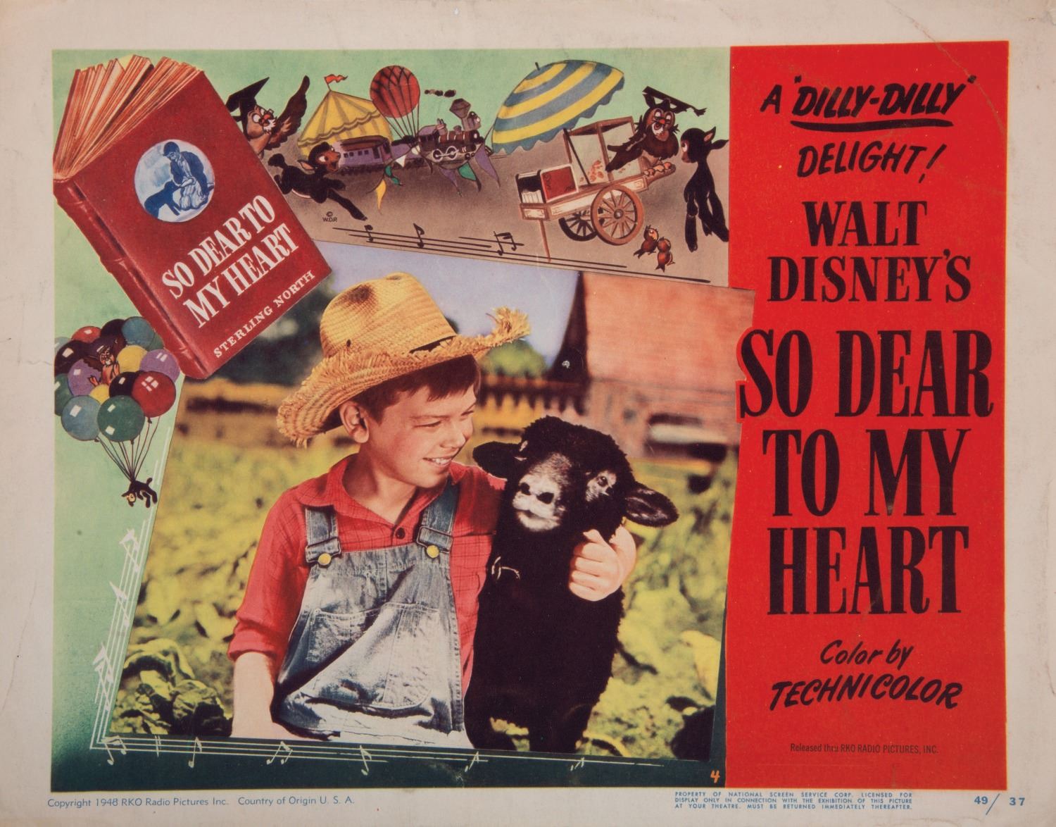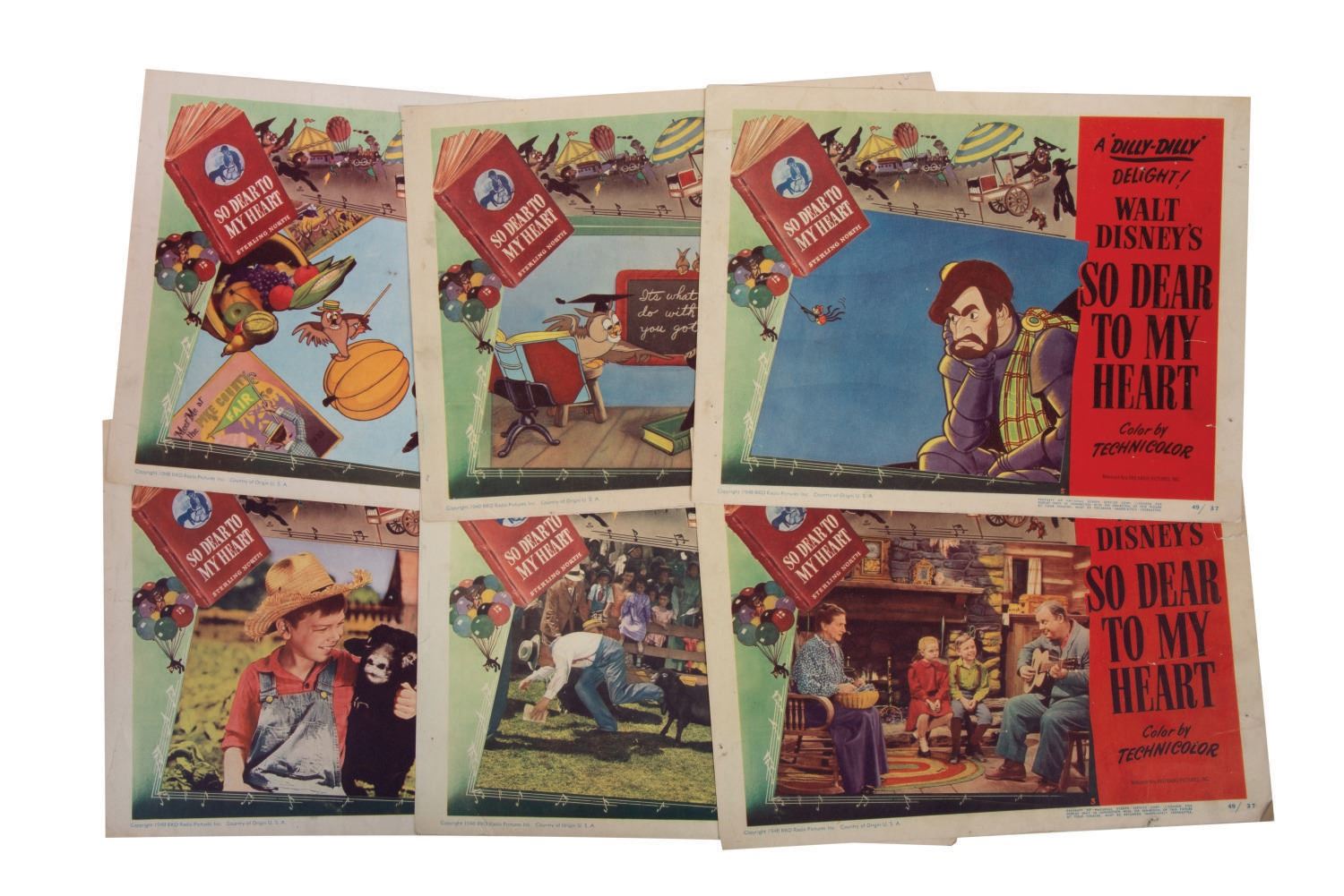(Disney, 1948) A collection of (2) lobby cards for "So Dear To My Heart." Measuring 11"x14", the lobby cards display in good condition despite some annotation on reverse, pinholes, and mild wear to edges and corners.