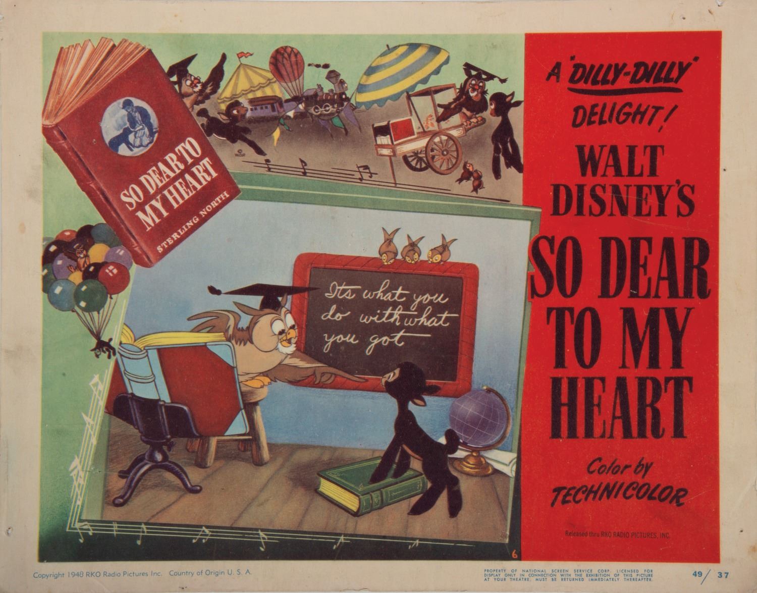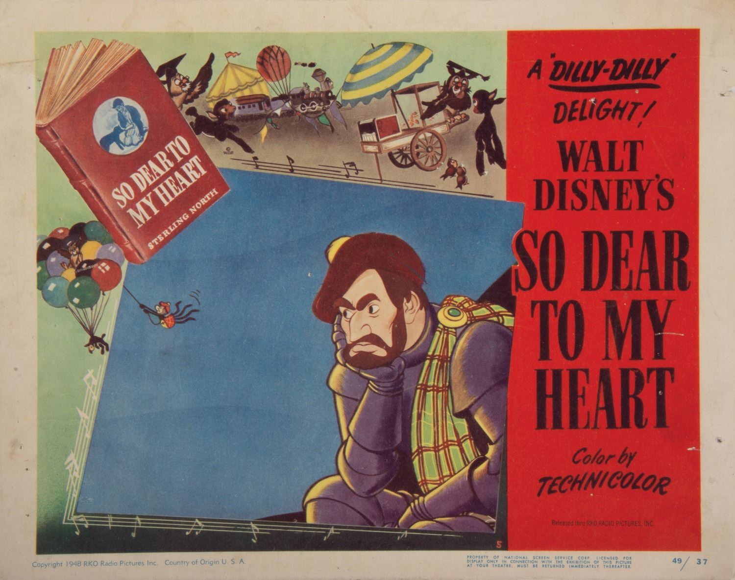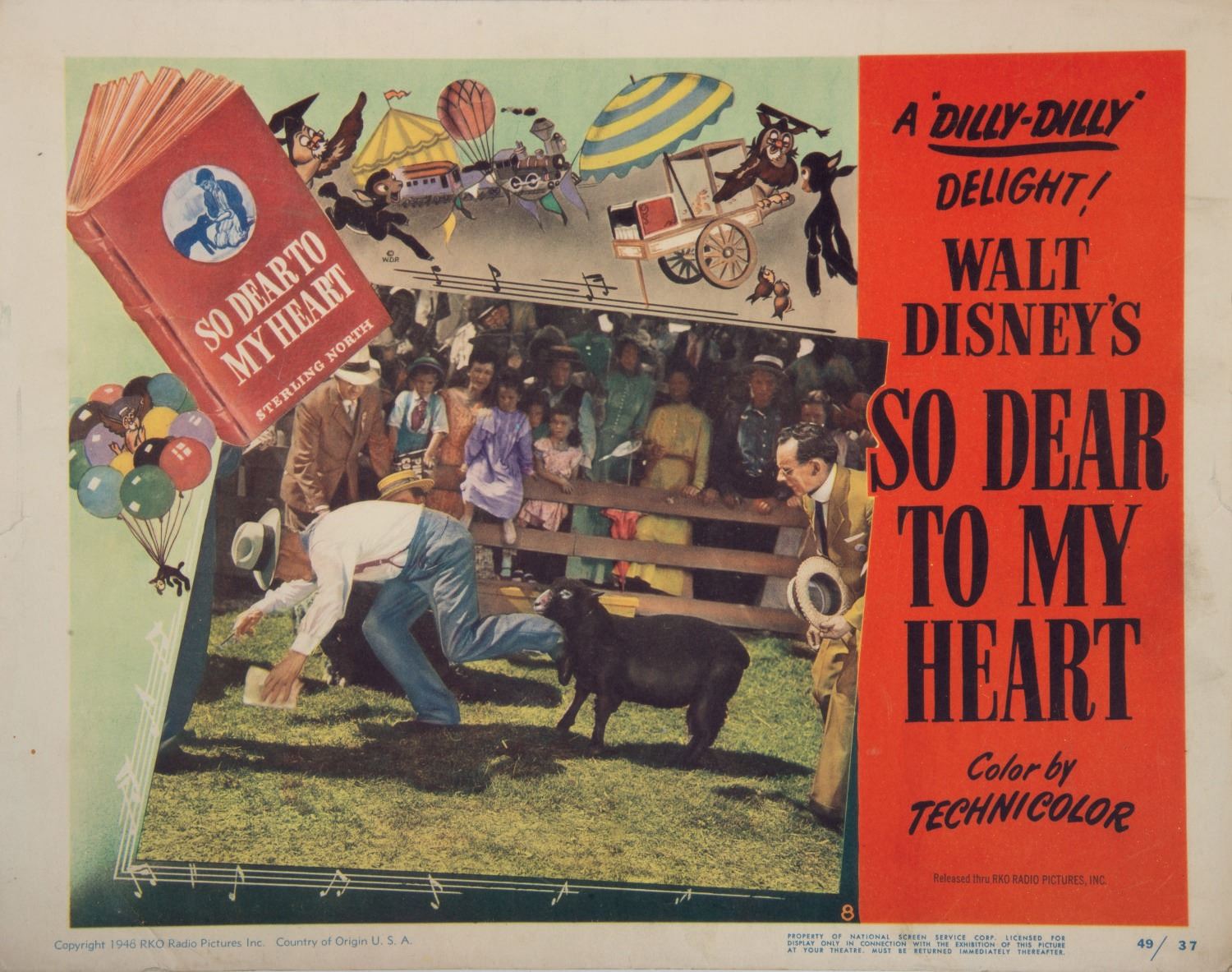 (Disney, 1948) A collection of (2) lobby cards for "So Dear To My Heart." Measuring 11"x14", the lobby cards display in good condition despite some annotation on reverse, pinholes, and mild wear to edges and corners.