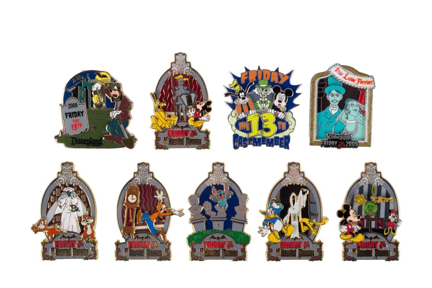 (Walt Disney World, 2007-09) A Haunted Mansion Friday The 13th (9) Pin Set. This lot contains limited edition pieces with “pin-on-pin” and spring features, including (6) pins released 2007, (2) pins released 2008, and (1) released 2009. Each pin is in fine condition.