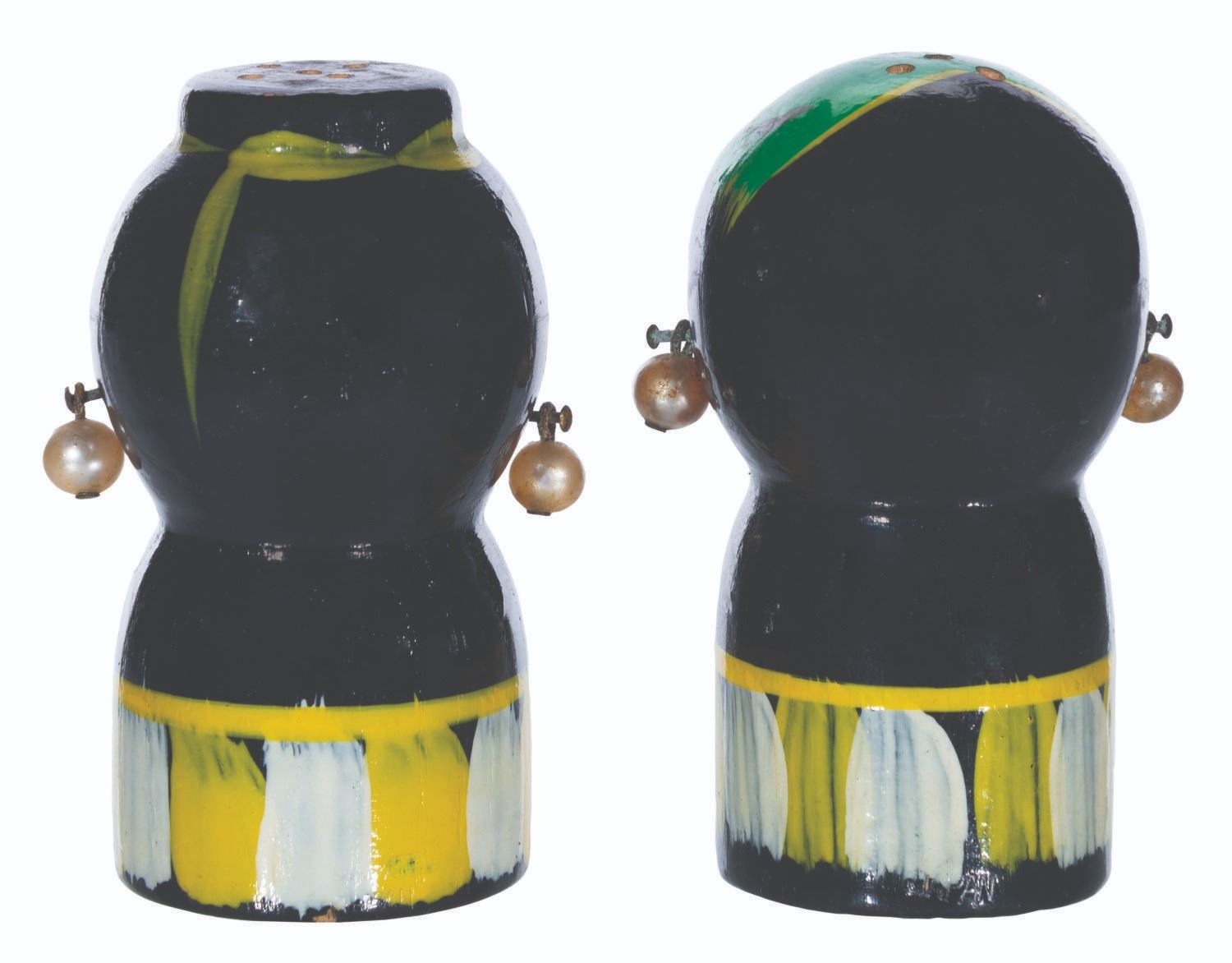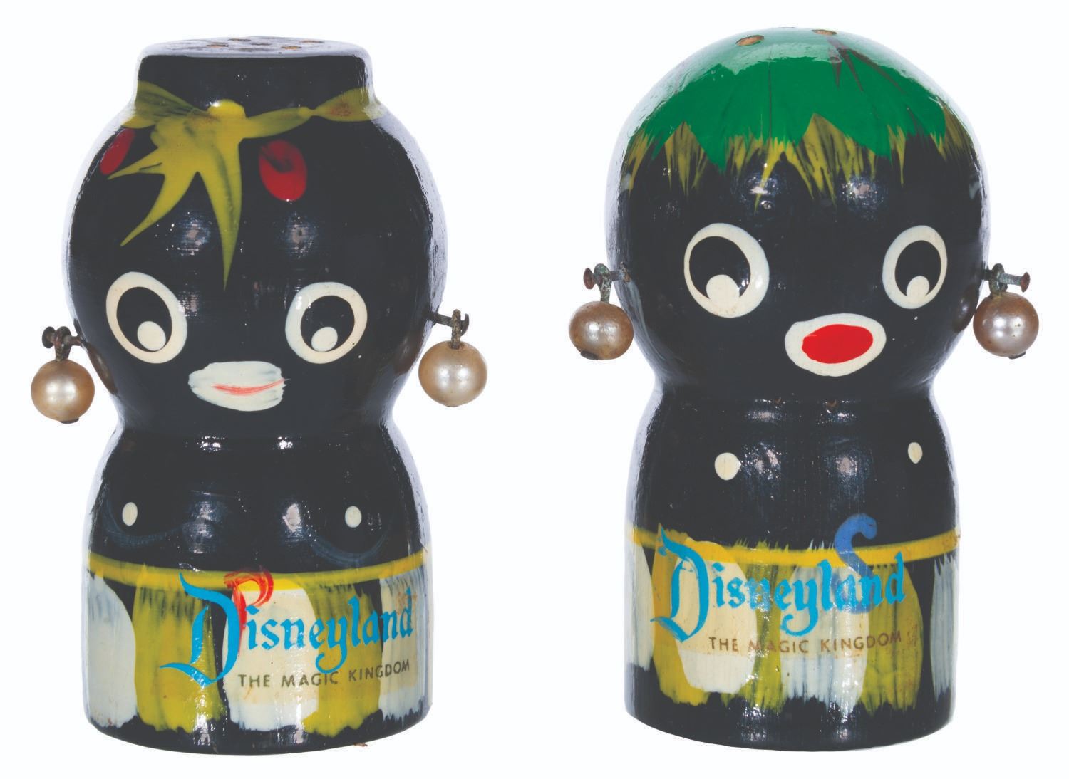 (Disneyland, 1960s) A salt and pepper shaker set based on Jungle Cruise natives from Adventureland. Measuring 2.5" tall, the hand-painted wooden shakers display in fine condition.