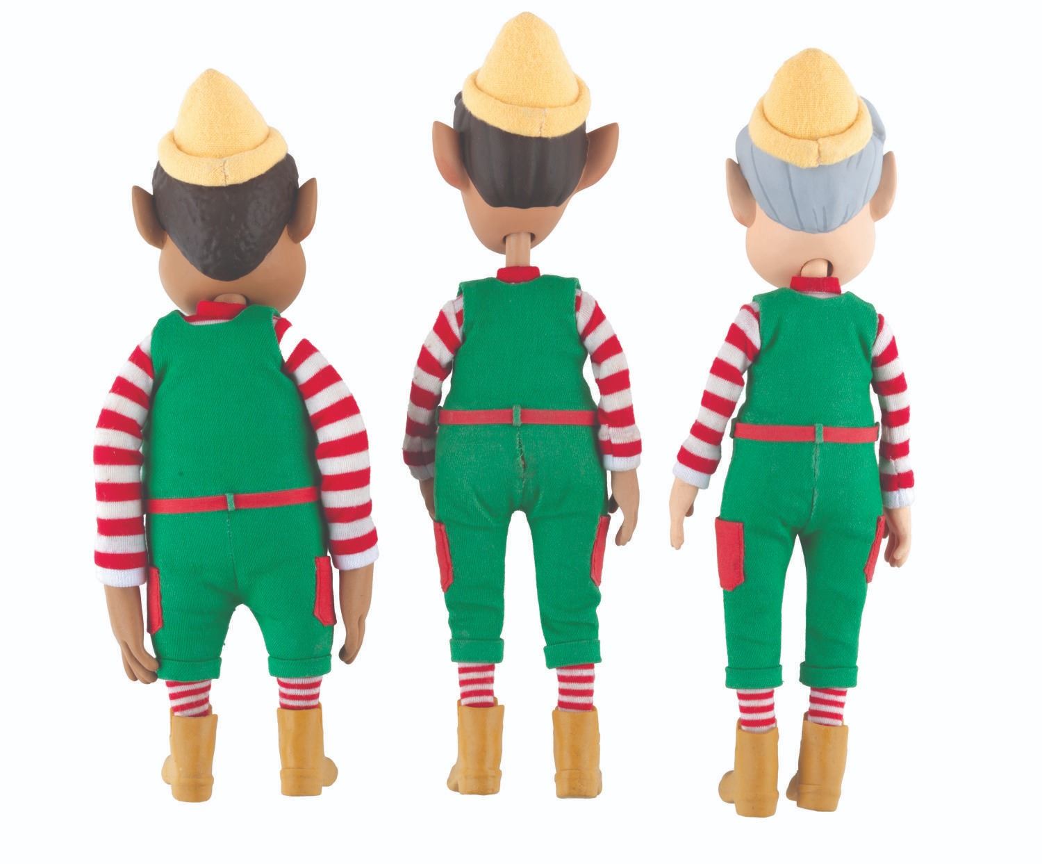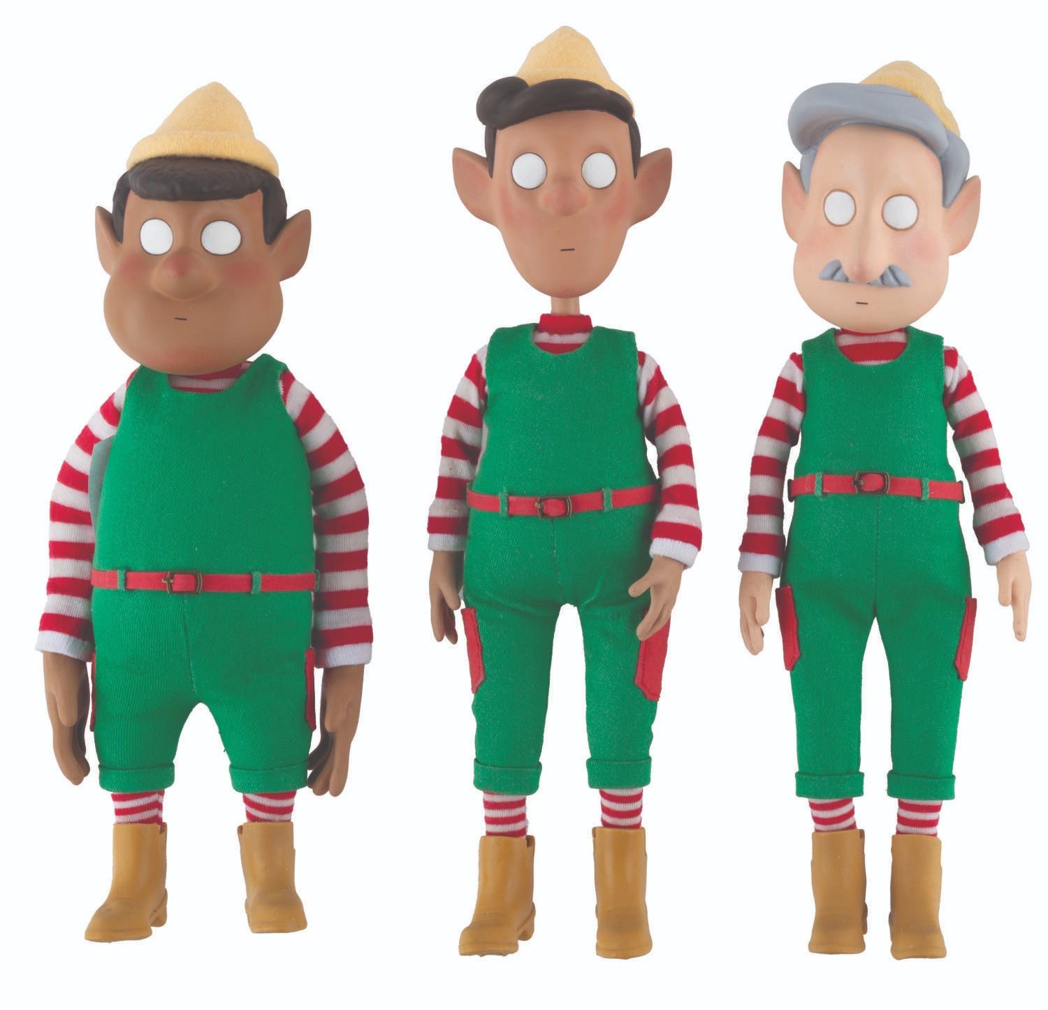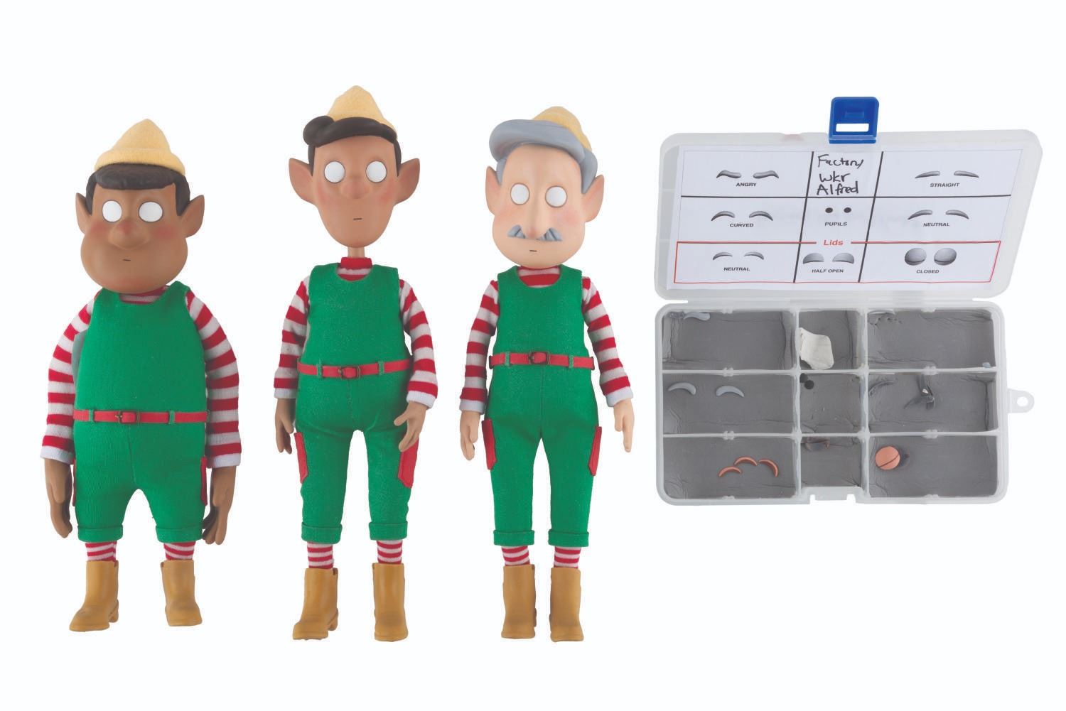 (Netflix, 2020) A set of three stop-motion puppets from the Netflix holiday special “Alien Xmas.” The factory worker elves, composed of latex over a wire armature, are residents of Christmas Town, which is invaded by the Klept alien race. Included in the lot is one eye kit for the elder elf’s different expressions. Measuring 10” to 11” tall, the elves are in very good condition with light wear from production use.