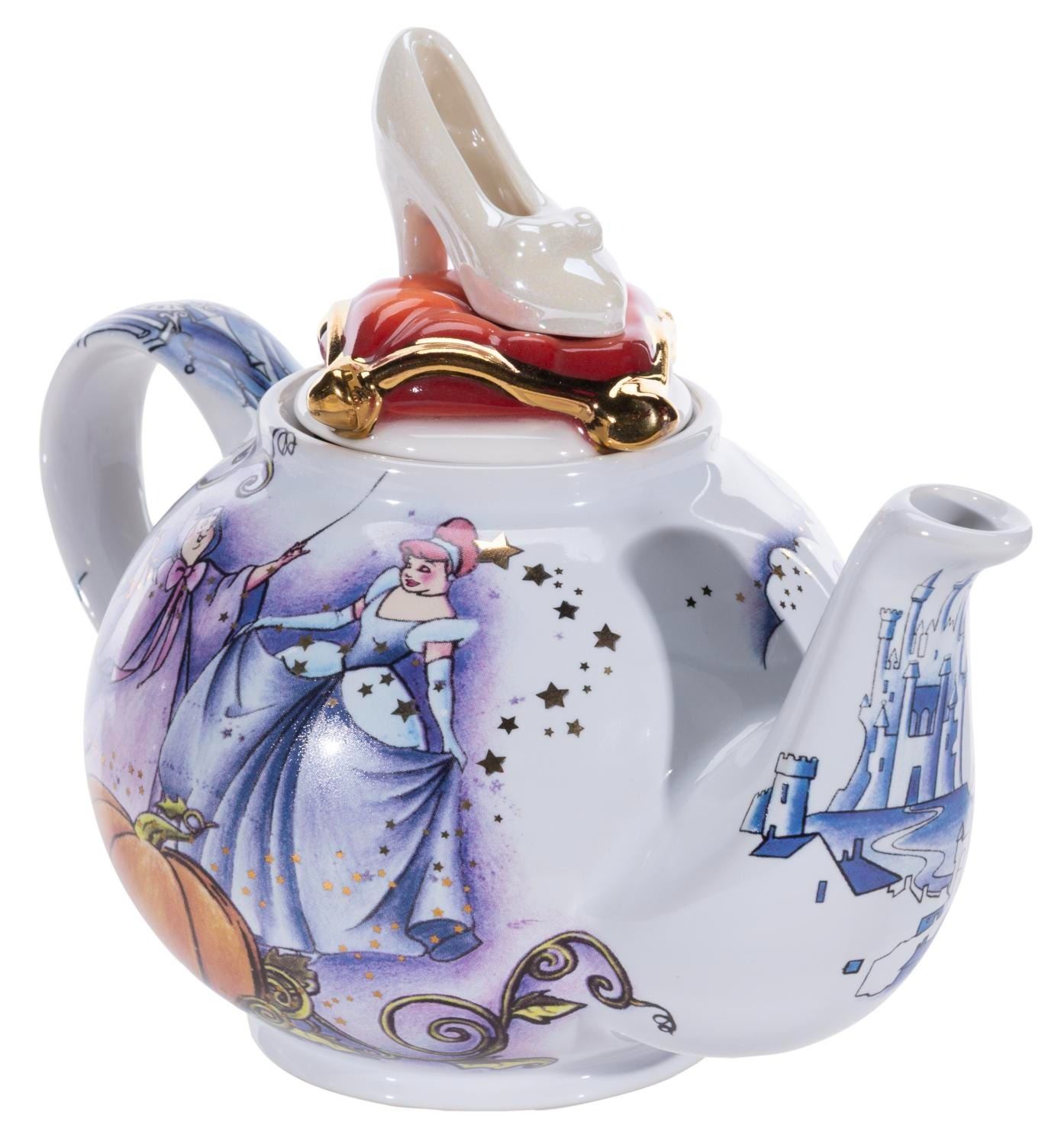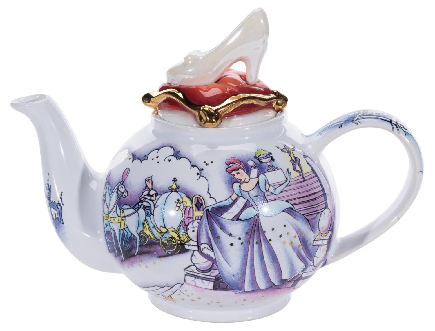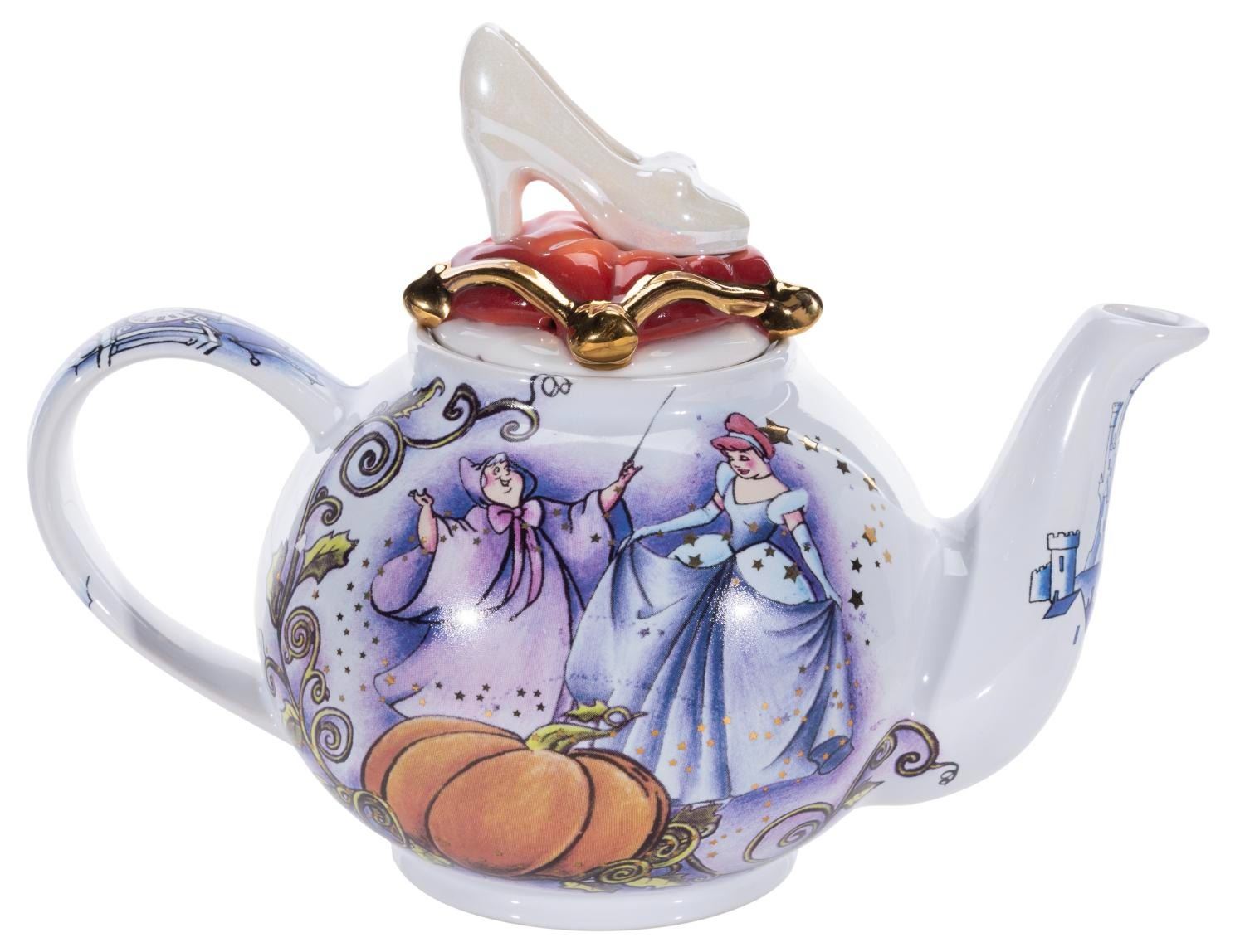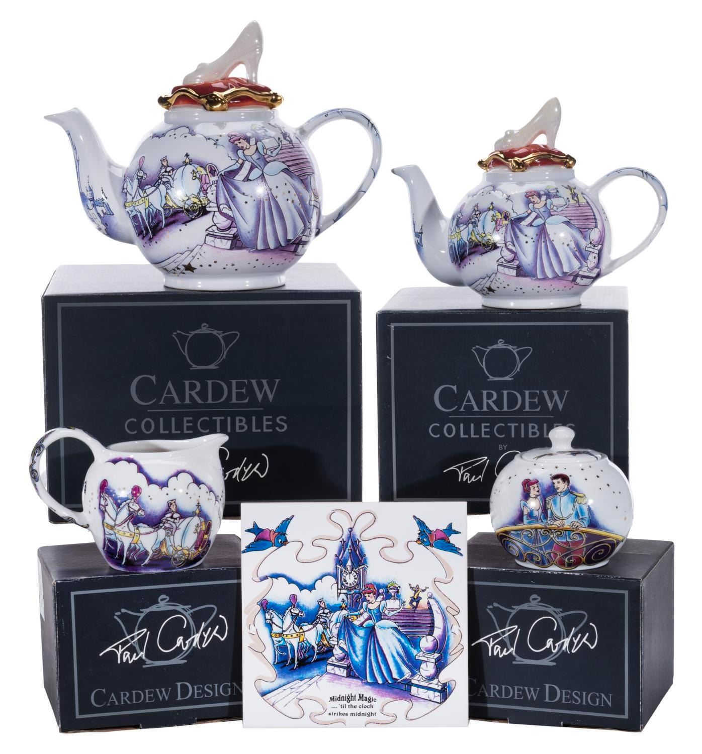 (Cardew Collectibles, 2005) A five-piece "Cinderella " tea set, including a large teapot, small teapot, creamer, sugar dish with lid, and a tile trivet. Measuring 4 " x 4 " x 4 " tall to 6 " x 9.75 " x 7 " tall, the tea set is in fine condition.