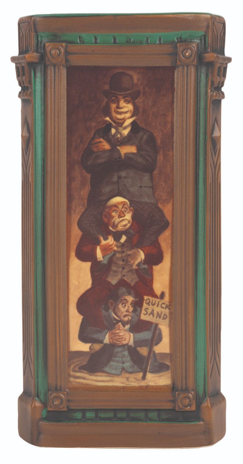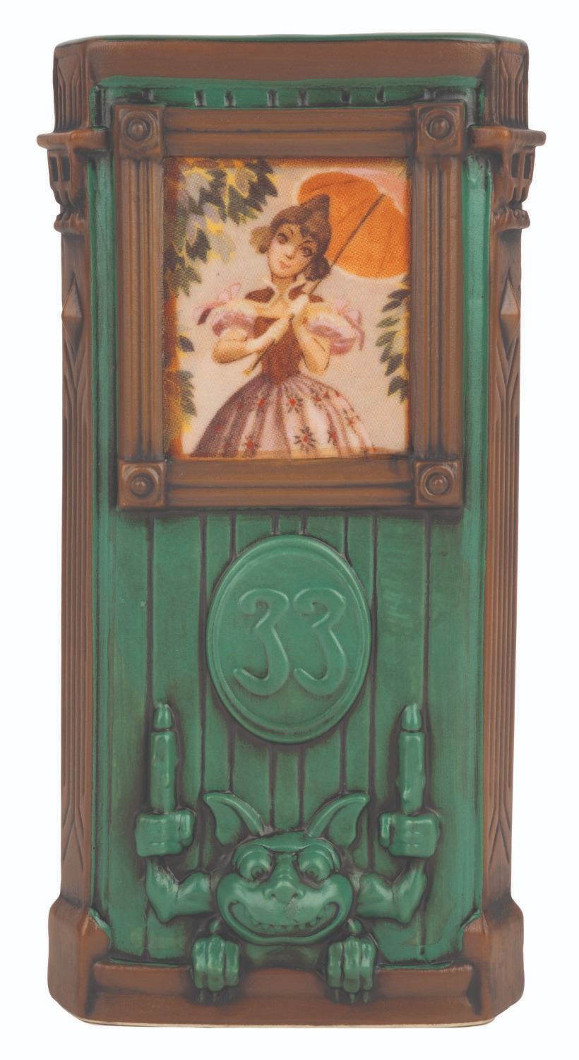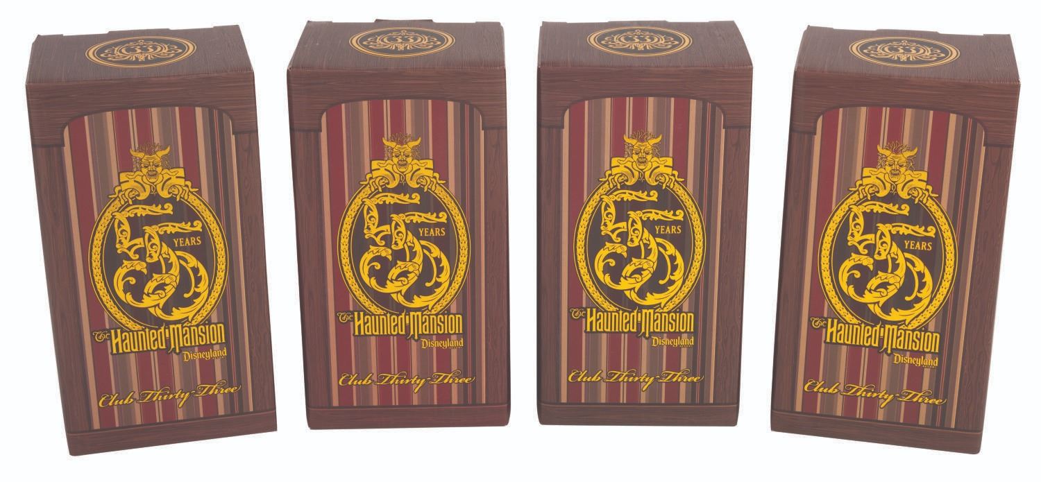 (Disneyland, 2024) A complete set of four tiki mugs and four coasters, sold exclusively at Club 33 for The Haunted Mansion’s 55th anniversary. Based on Marc Davis’ original stretching portrait art, the mugs feature the Dynamite Gentleman, the Bride, the Tightrope Walker, and the Quicksand Men. The mugs measure 3.5" x 2.75" x 6.75" with their original 4" x 3.5" x 7.25" tall boxes, while the coasters measure 3.25" x 4". The mugs and coasters are in fine condition and the boxes are in very good condition with light wear.