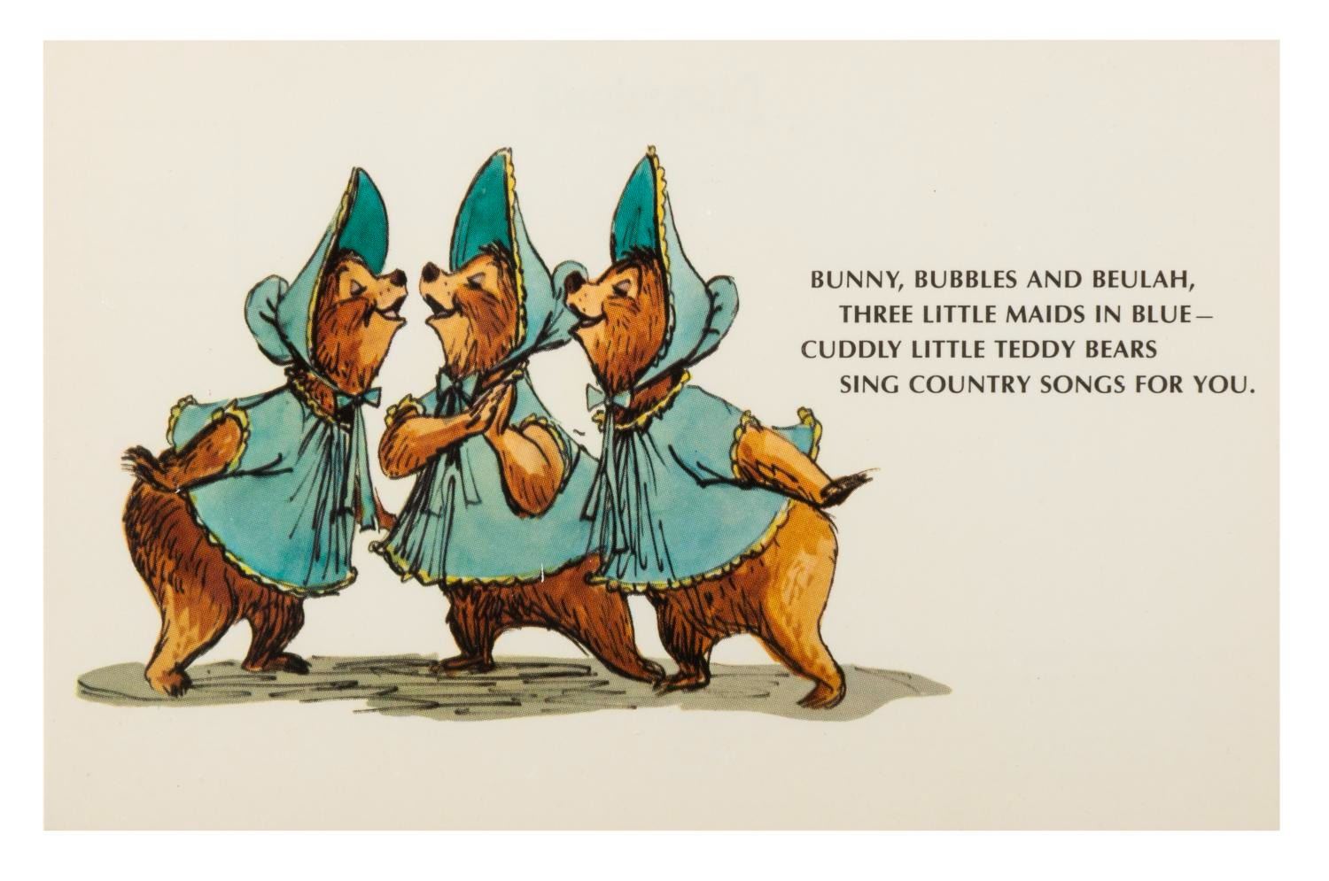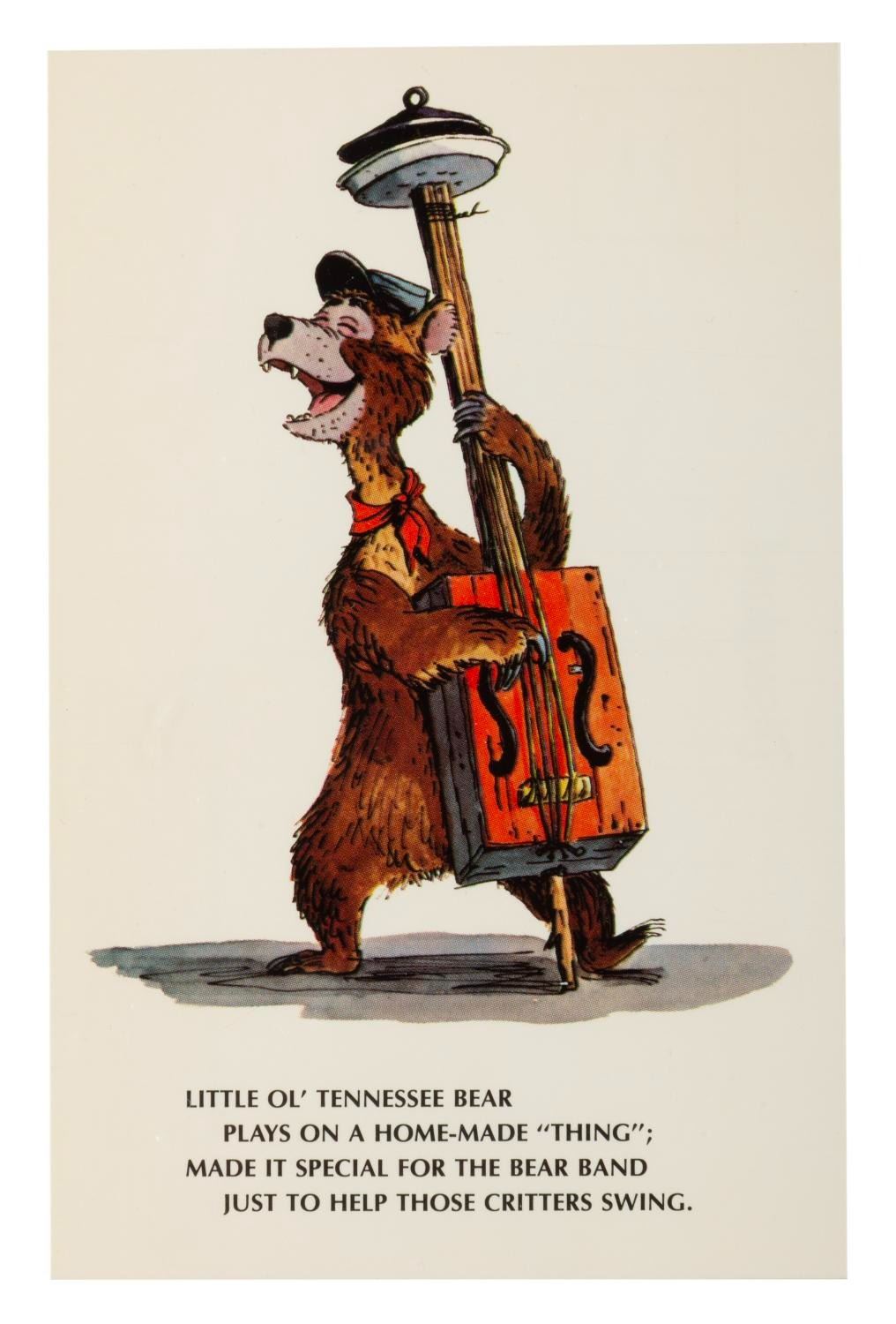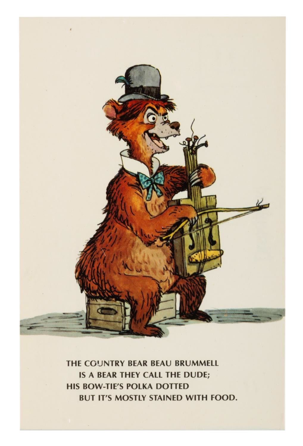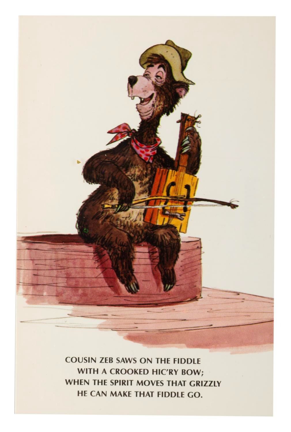 (Disneyland, 1972) An original set of Country Bear Jamboree concept art postcards featuring the designs of Imagineer Marc Davis. Measuring 3.5” x 5.5” each, the postcards are in fine condition.