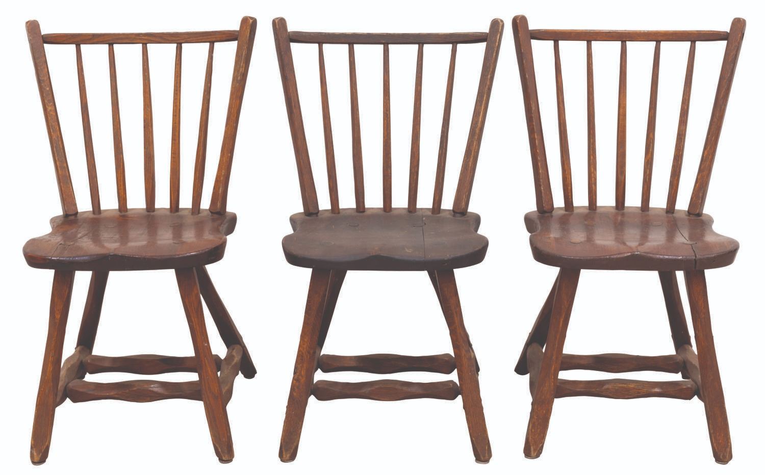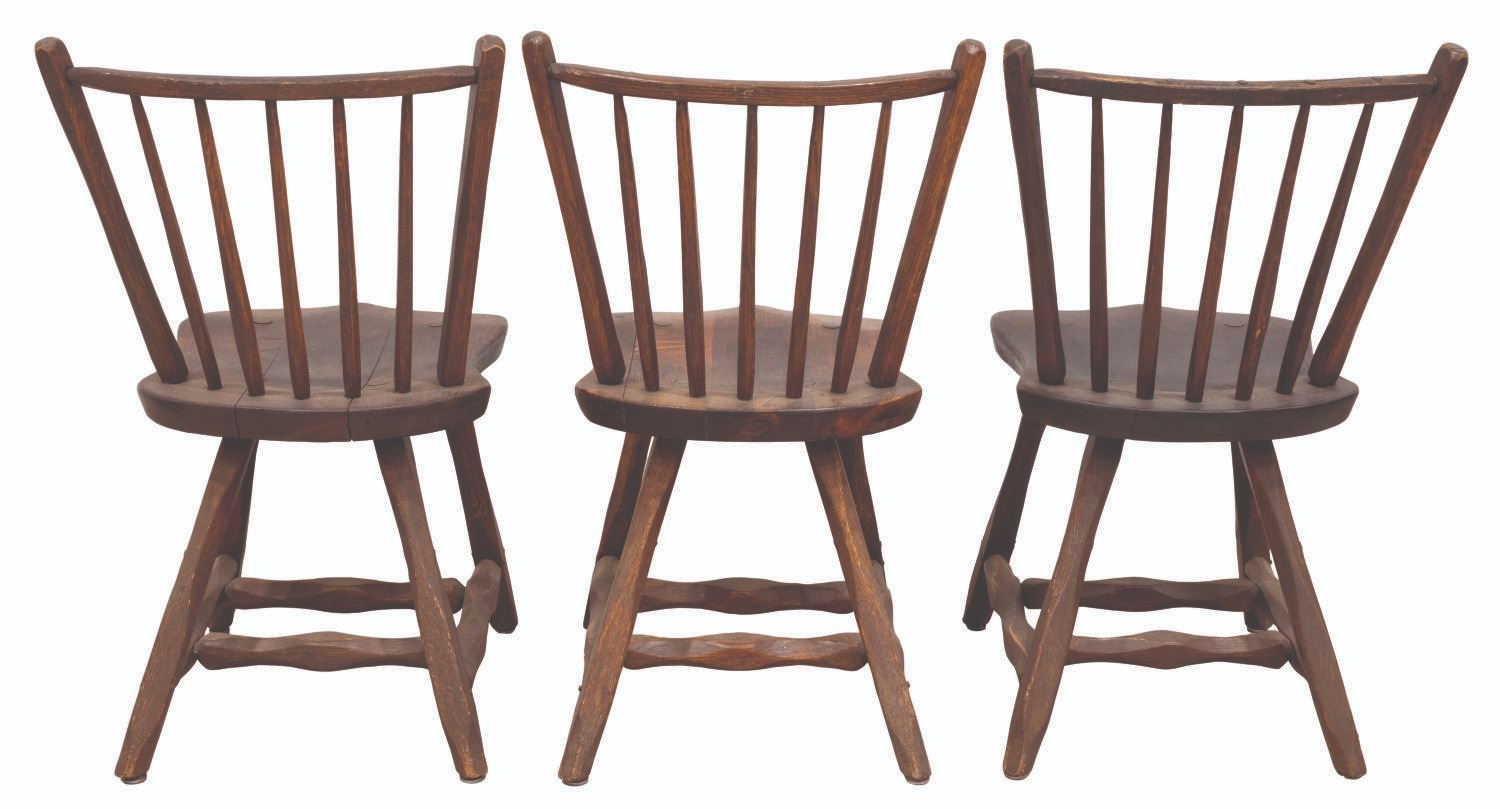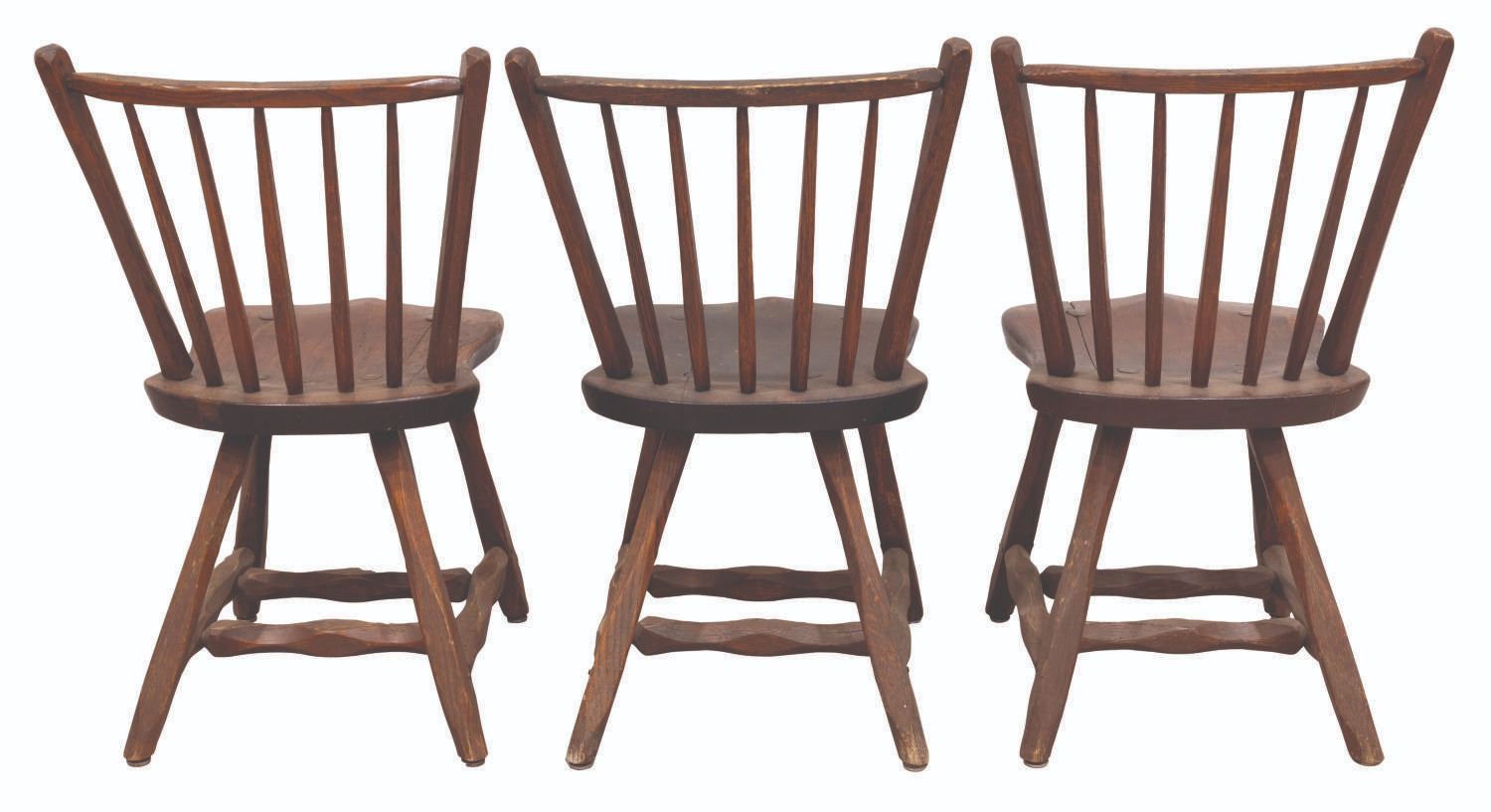 (Disneyland, 1970s) A set of six wooden chairs from the original Hungry Bear Restaurant in Disneyland. These all-wood chairs most likely date to the original “Golden Bear Lodge” as the restaurant was named from 1972 until 1977. Each measuring 16.5” x 19.25” x 32.5” high, the chairs are in good condition with heavy wear from Park use including scuffs, some split seats, and some loose legs and backs. This lot requires special shipping. Please inquire before bidding.