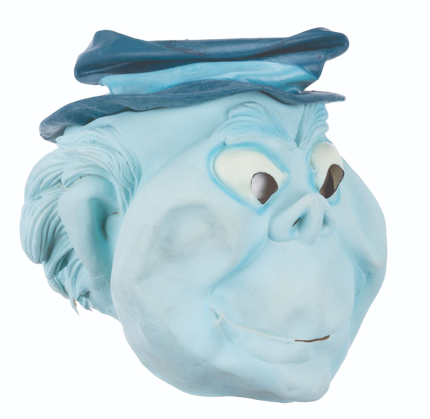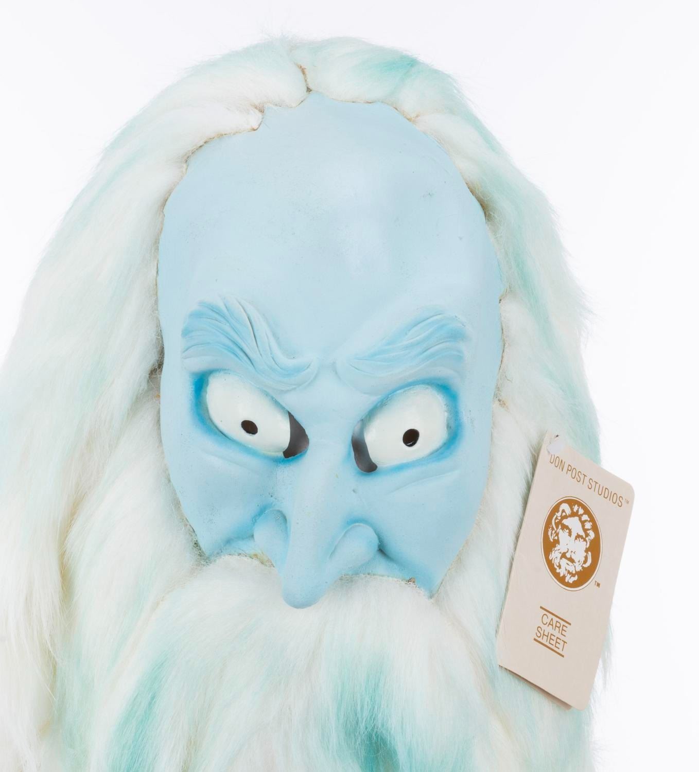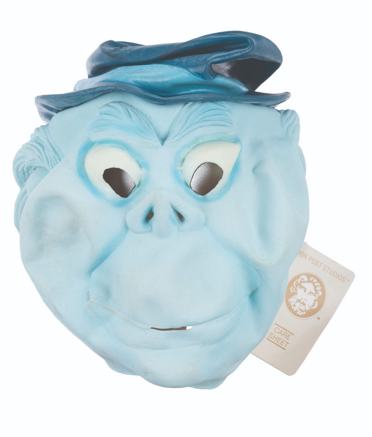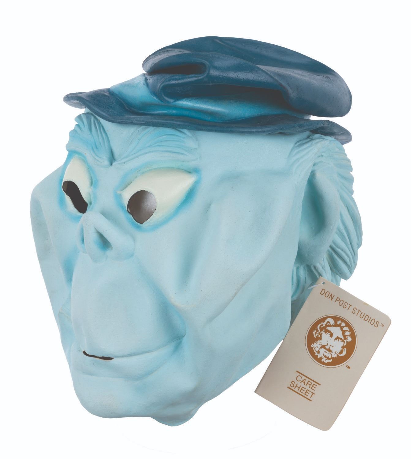 (Don Post Studios, 1992) A set of three Don Post latex rubber masks of the Hitchhiking Ghosts, Phineas, Gus, and Ezra from the Haunted Mansion. Known as “The Godfather of Halloween,” Post created the first full-head latex Halloween masks, many of which remain popular today. Ranging in size from 9.5” x 7.5” x 9.5” tall to 13.5” x 11.5” x 16” tall, the masks are in good to very good condition with light discoloration from age, wear, and stains, notably behind Gus’ beard.
