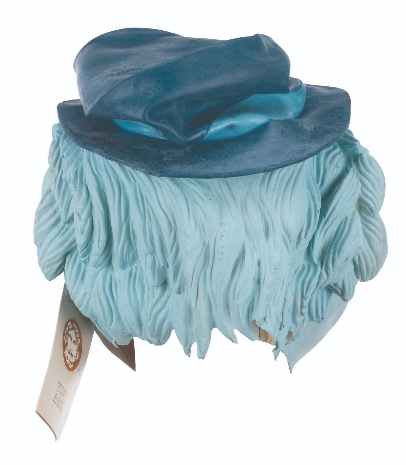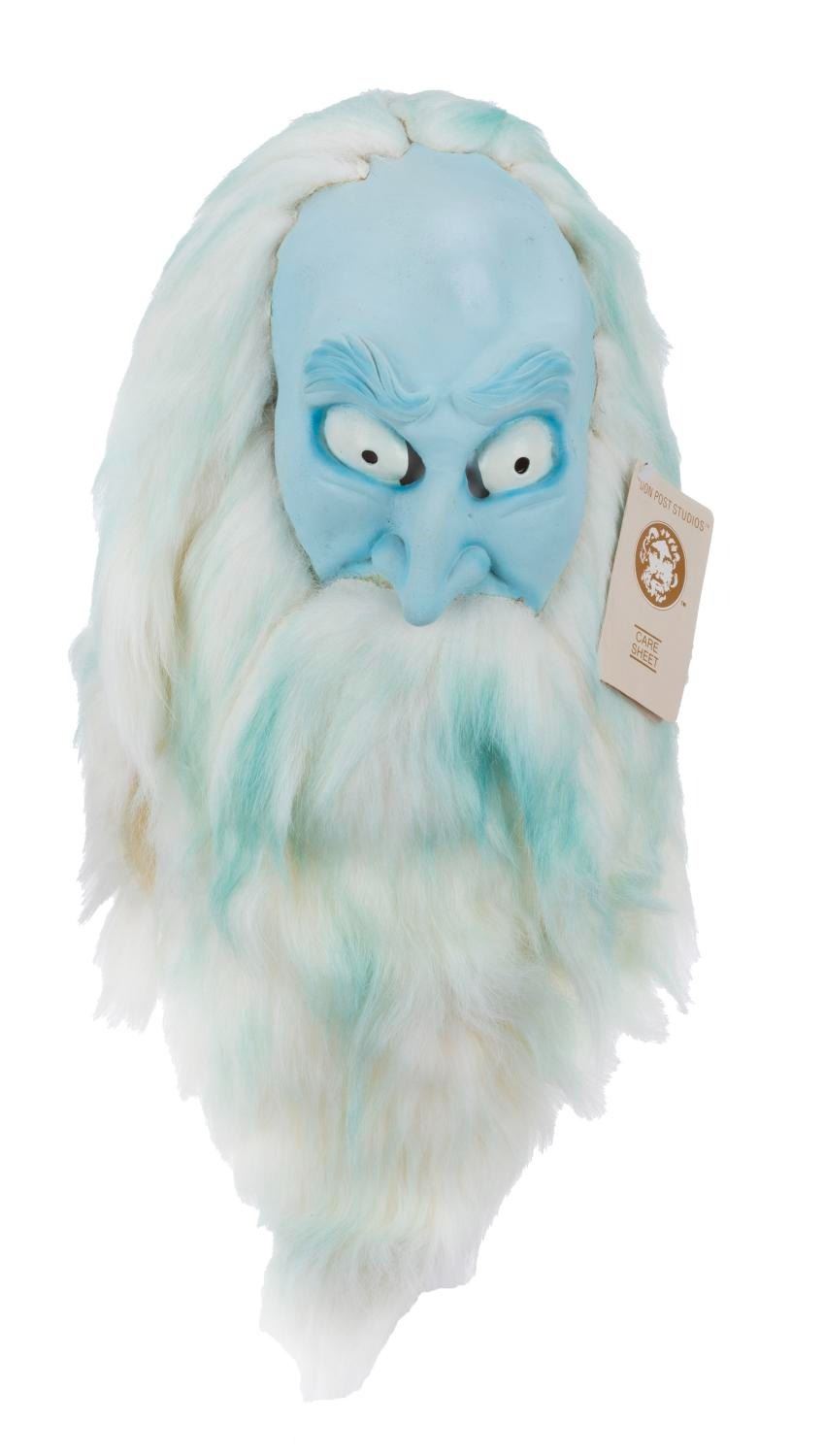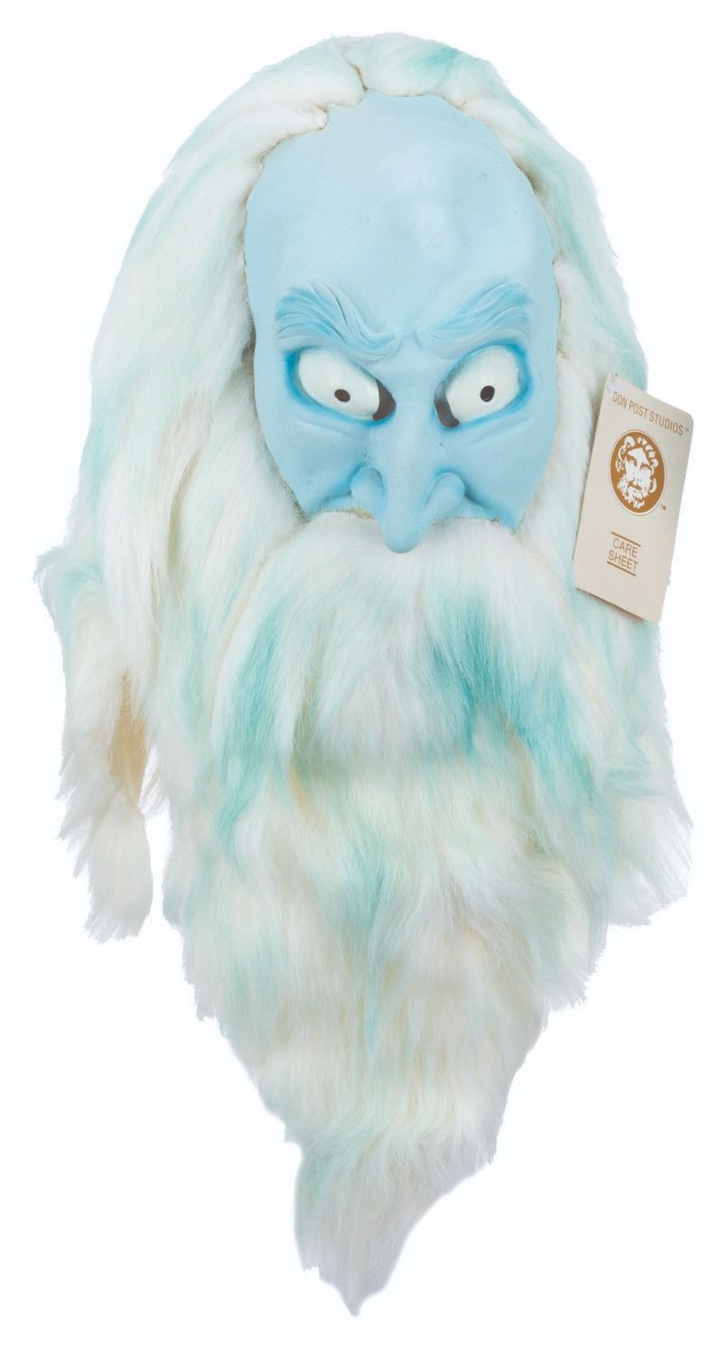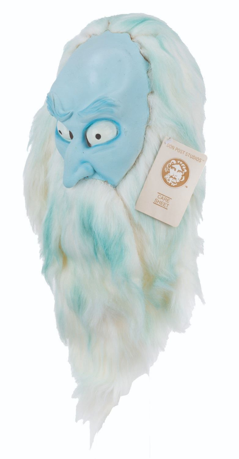 (Don Post Studios, 1992) A set of three Don Post latex rubber masks of the Hitchhiking Ghosts, Phineas, Gus, and Ezra from the Haunted Mansion. Known as “The Godfather of Halloween,” Post created the first full-head latex Halloween masks, many of which remain popular today. Ranging in size from 9.5” x 7.5” x 9.5” tall to 13.5” x 11.5” x 16” tall, the masks are in good to very good condition with light discoloration from age, wear, and stains, notably behind Gus’ beard.