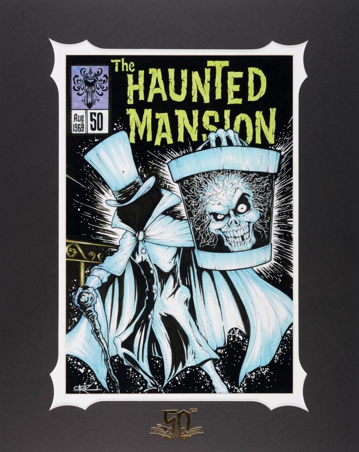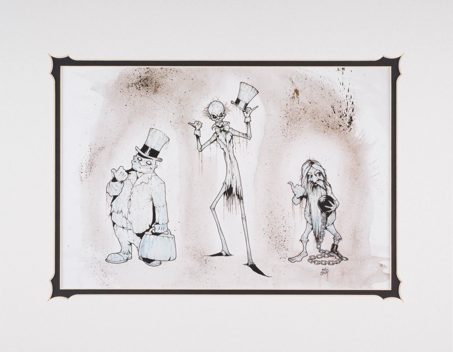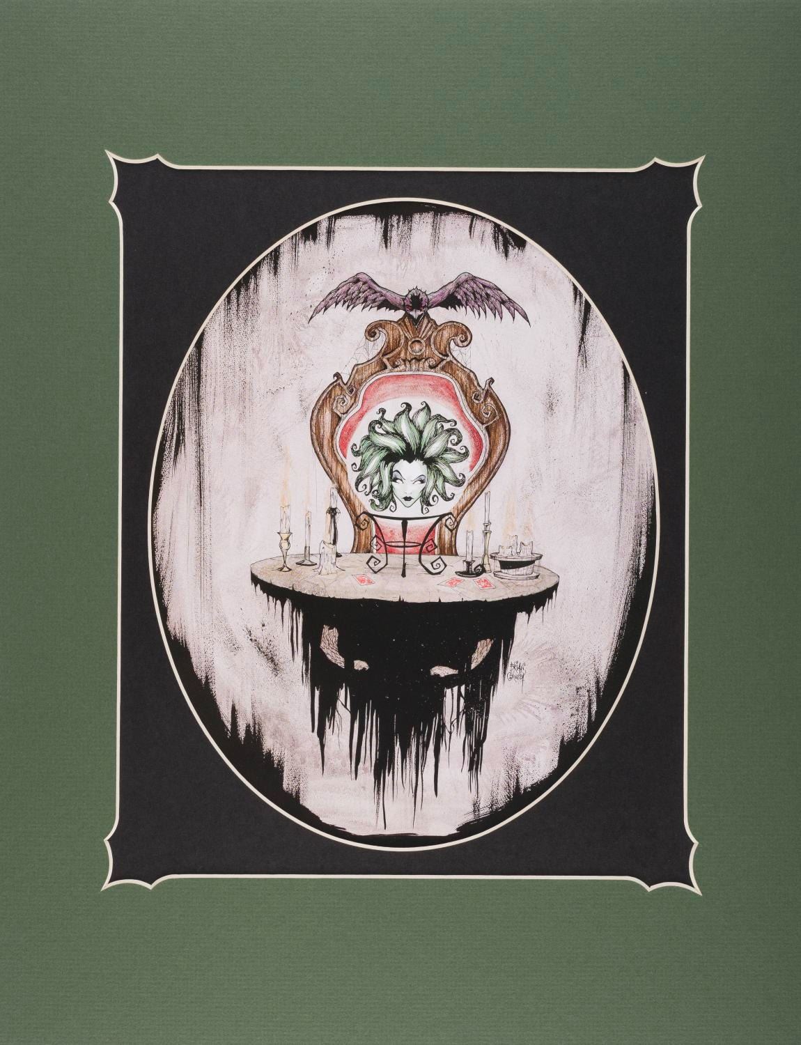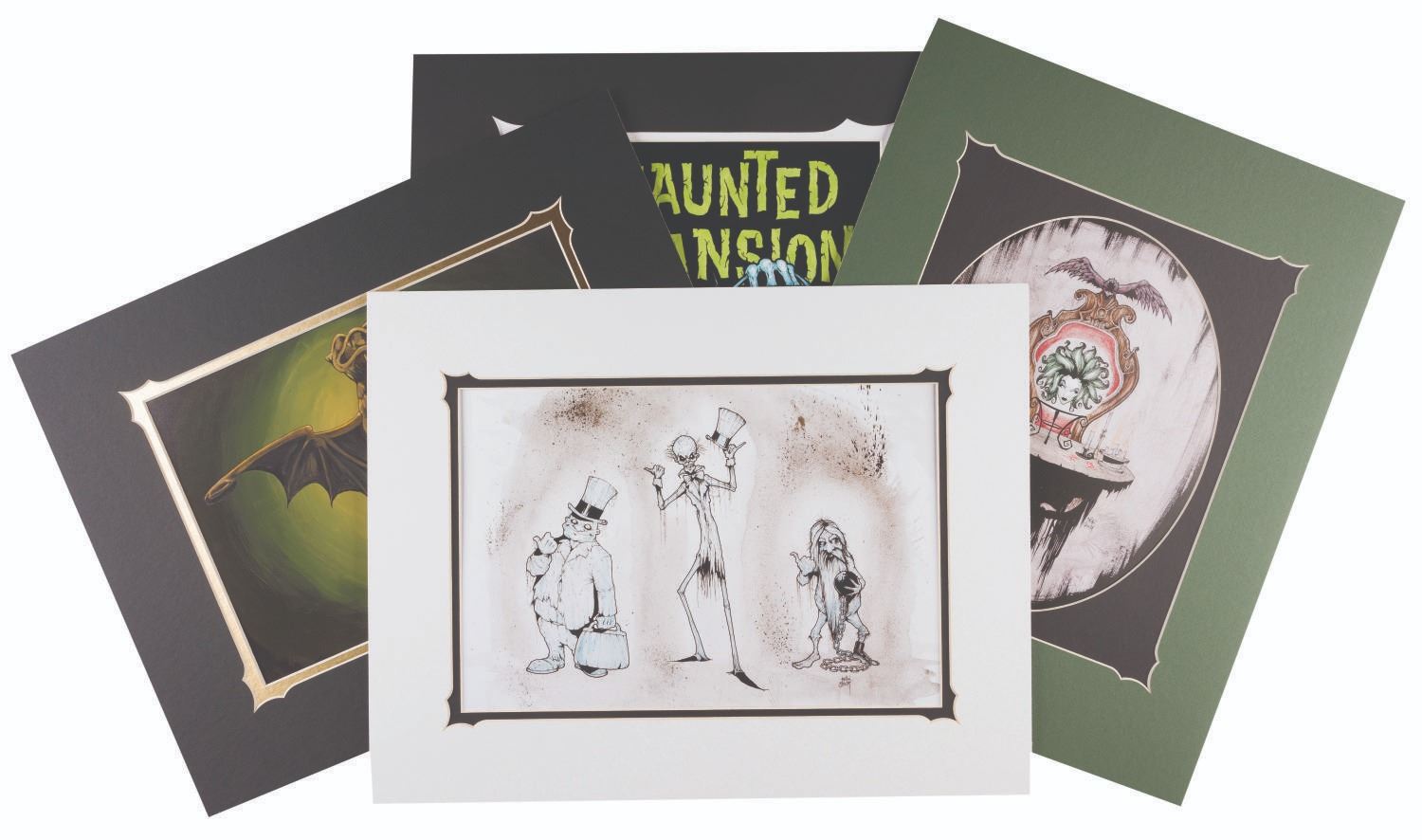(The Art of Disney Theme Parks) A set of four Haunted Mansion Prints by Brian Crosby. Among this lot are "Bat Stanchion," "Madame Leota," "Hitchhiking Ghosts," and "The Haunted Mansion #50." Three pieces come within 18"x14" mattes and one comes within a 20"x16" matte. Each piece is in fine condition.
