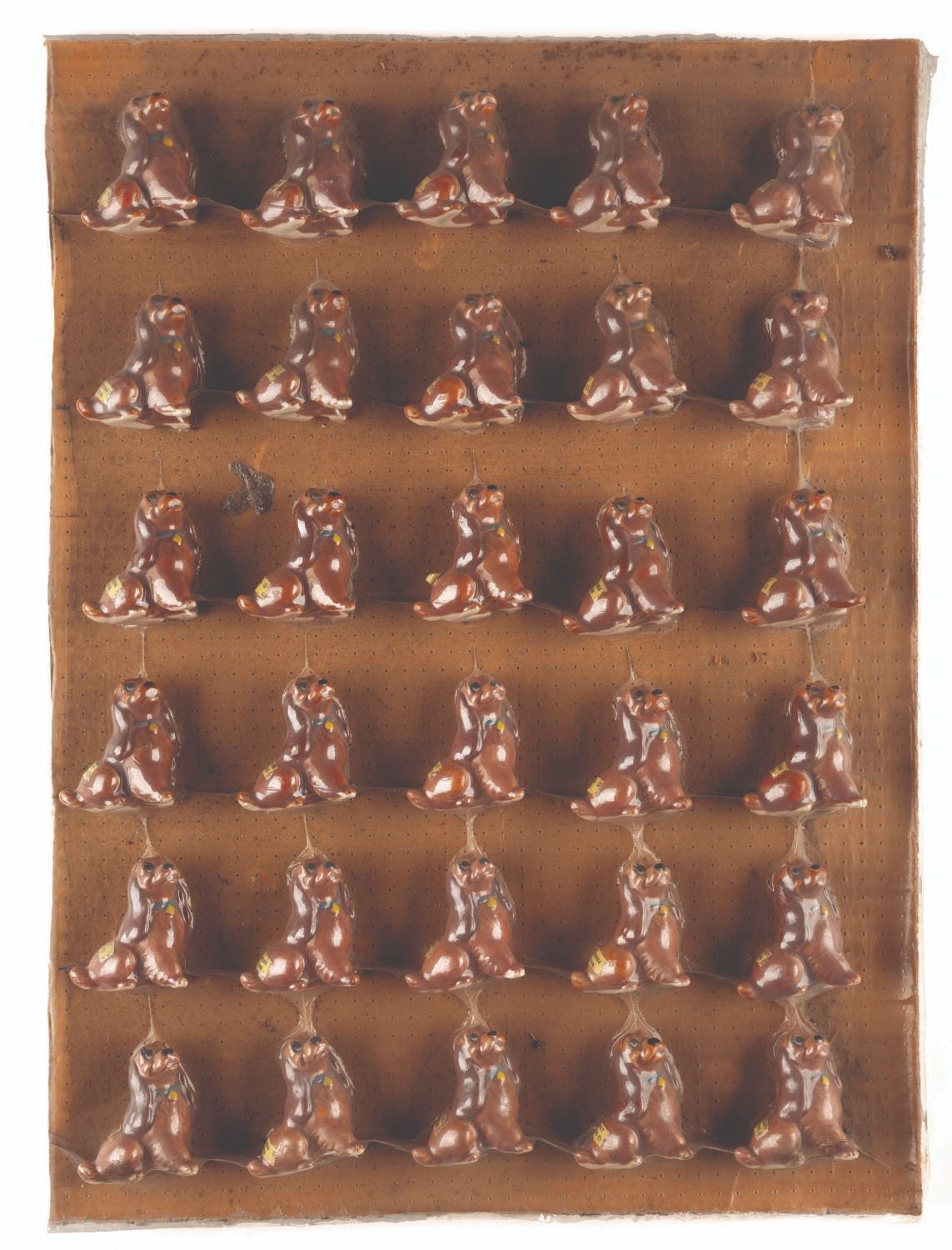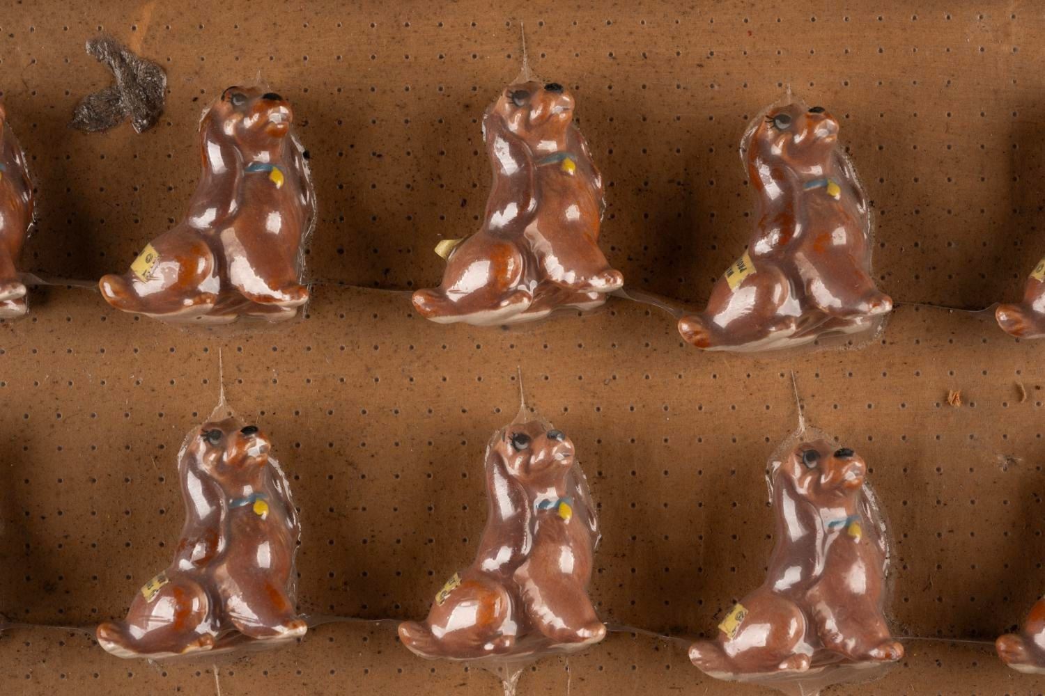 (Disney, 1950s-1970s) A shrink-wrapped set of 25 Lady ceramic figurines from “Lady and the Tramp.” Measuring 1.5” x 1.75” each on 12” x 16” cardboard backing, the unopened ceramic figures are as originally shipped by the manufacturer, in assumed fine condition, and may have some unseen cracks, damage, or wear once unwrapped.