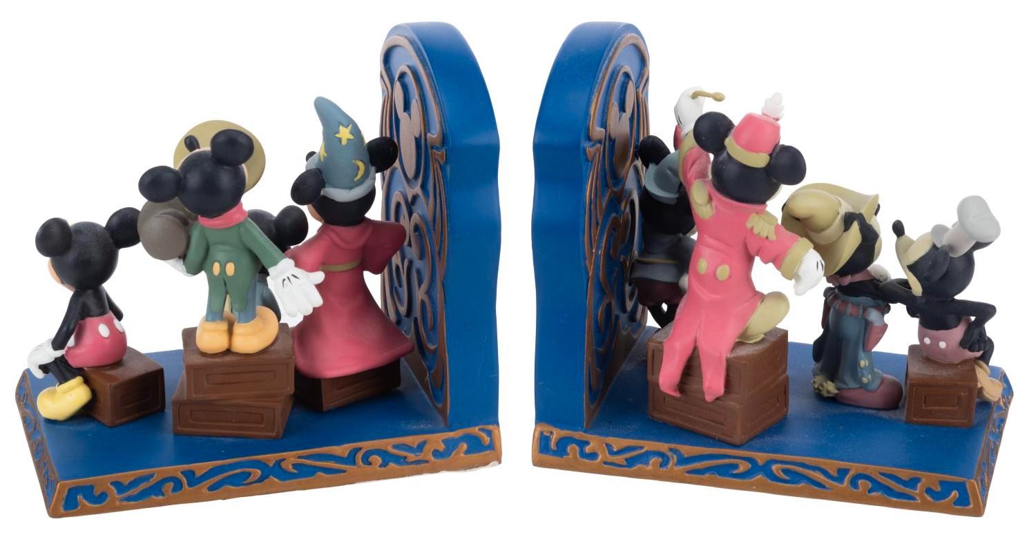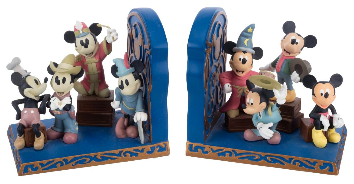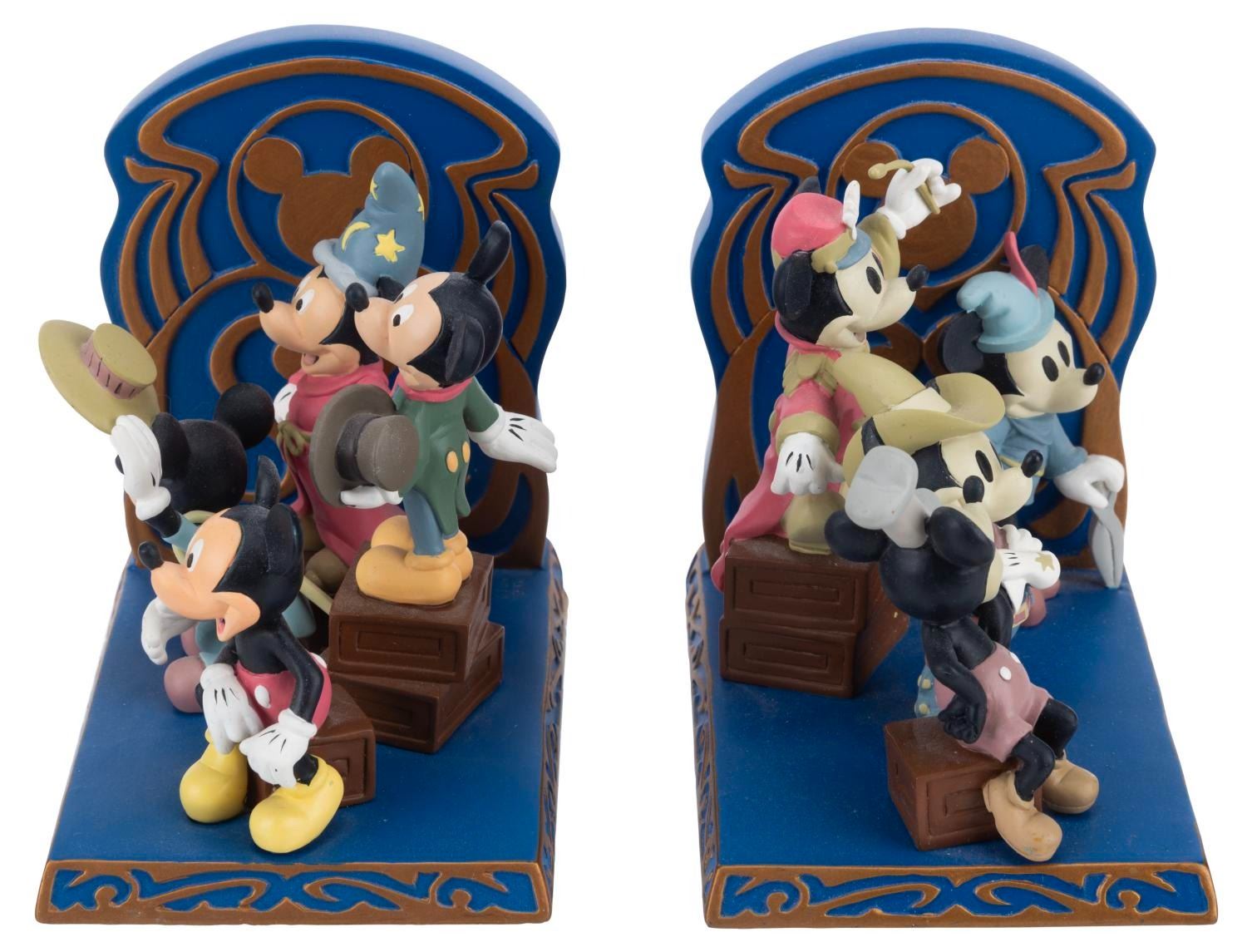 (Disney, 1990s-2000s) A set of resin Mickey Mouse bookends with eight different Mickey figures in costumes from some of his most famous cartoons. Measuring 3” x 4.5” x 4.25” each, the bookends are in very good condition with a light bend to Conductor Mickey’s baton.