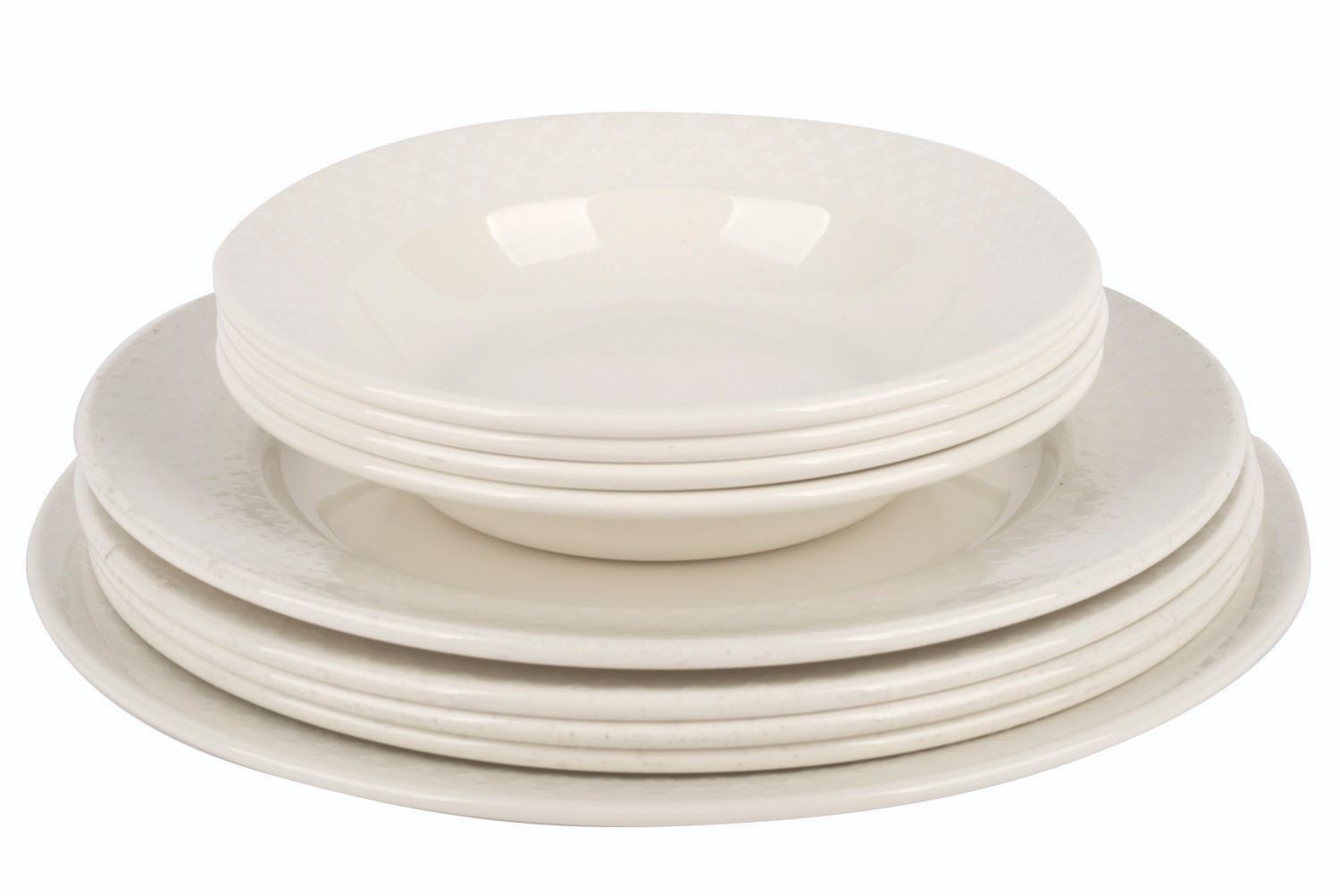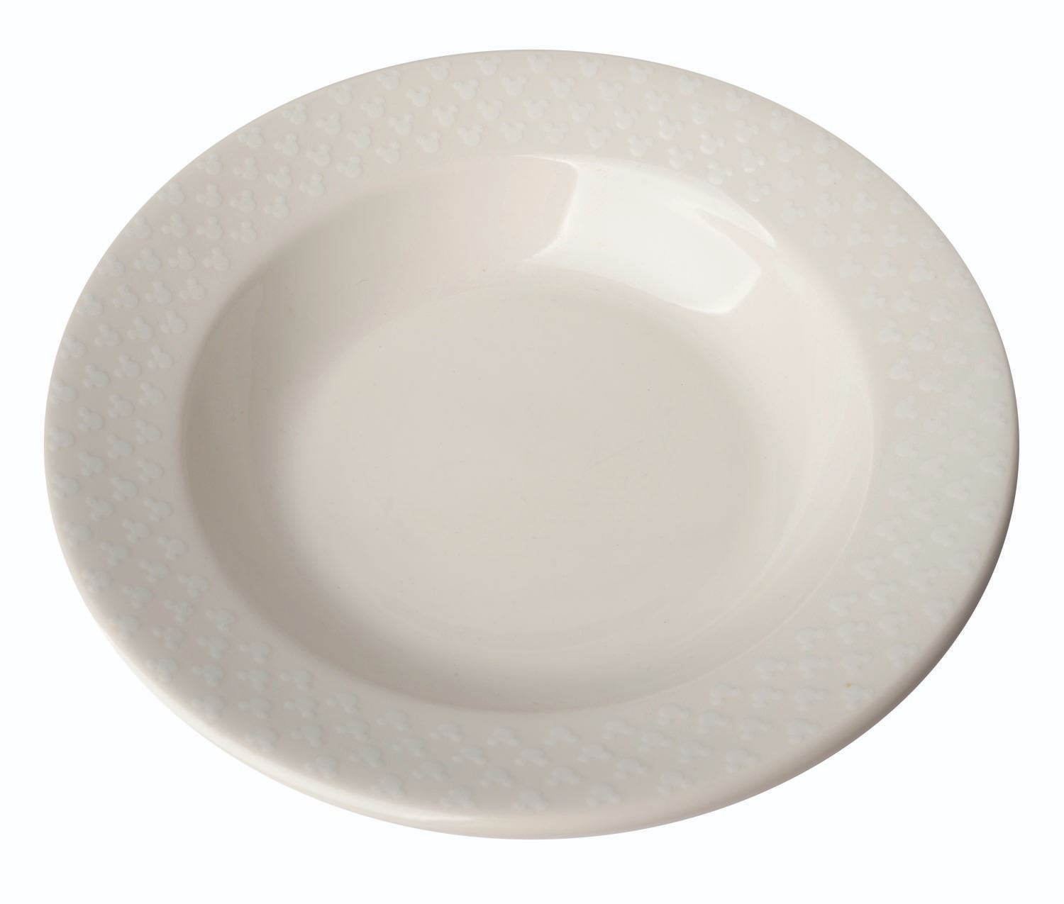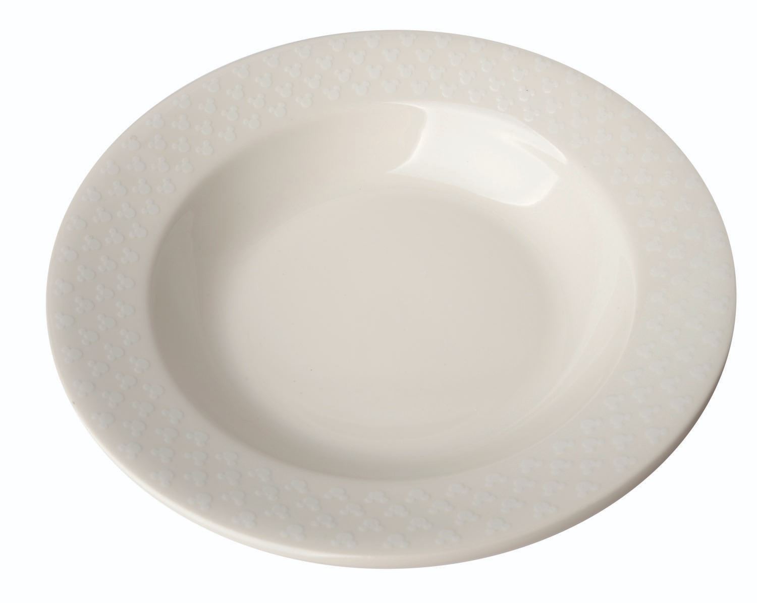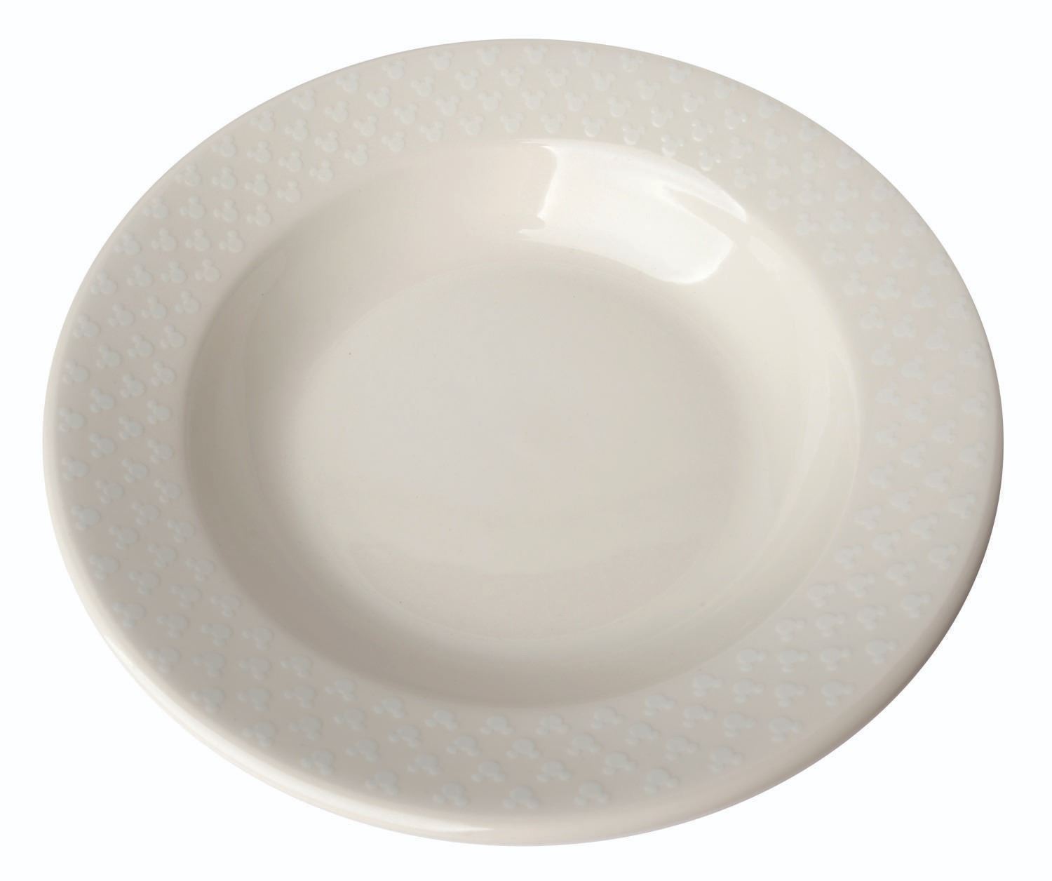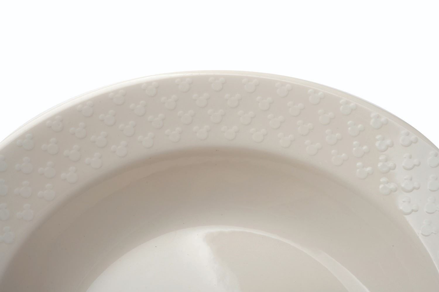 (Disney/Dudson, 2015) A set Mickey Mouse patterned dinnerware, produced by Dudson of England. The set includes (4) 9" bowls, (4) 11.5" plates, and (1) 12.5" plate. The pieces are in very good condition, with light wear from handling and use.