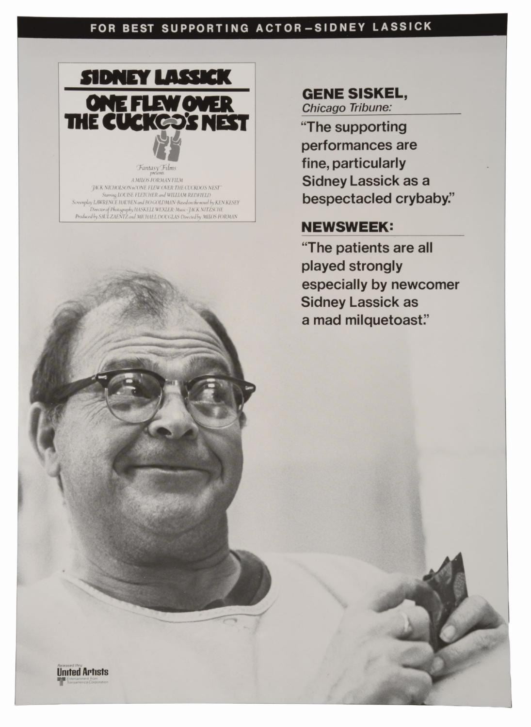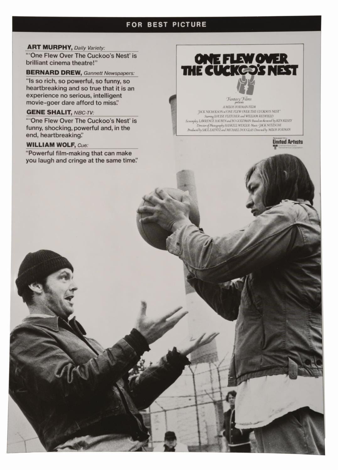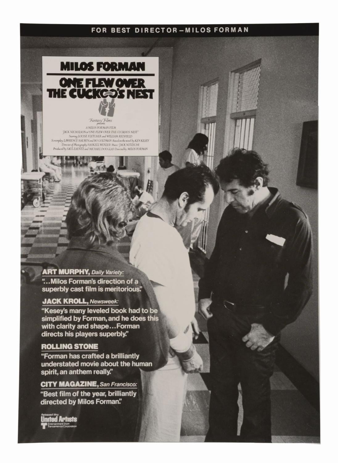 (United Artists, 1975) A set of five "One Flew Over the Cuckoo’s Nest" For Your Consideration ad layouts, including Best Picture, three for Best Actor - Jack Nicholson, and Best Supporting Actor - Sidney Lassick. Measuring 10" x 14", the ads are in very good condition with light creasing.