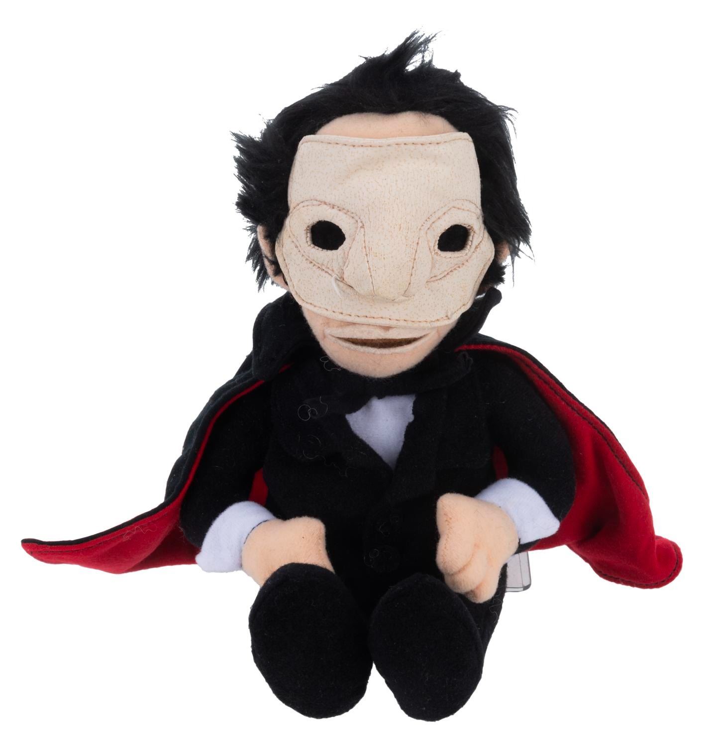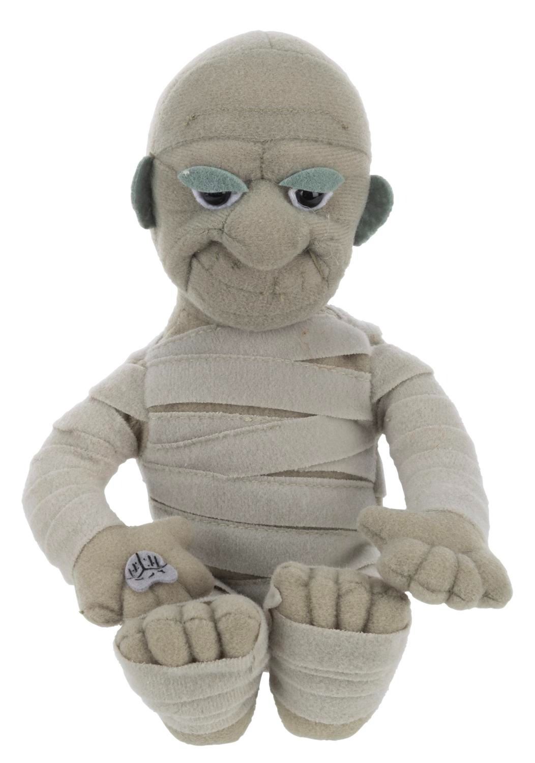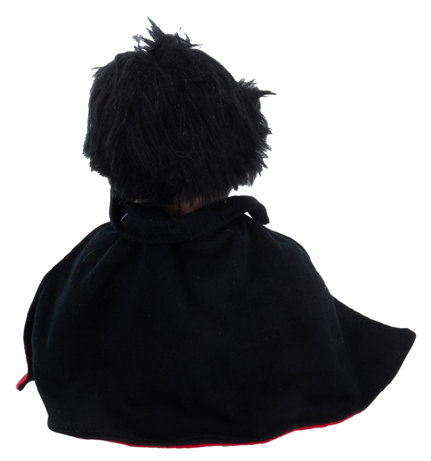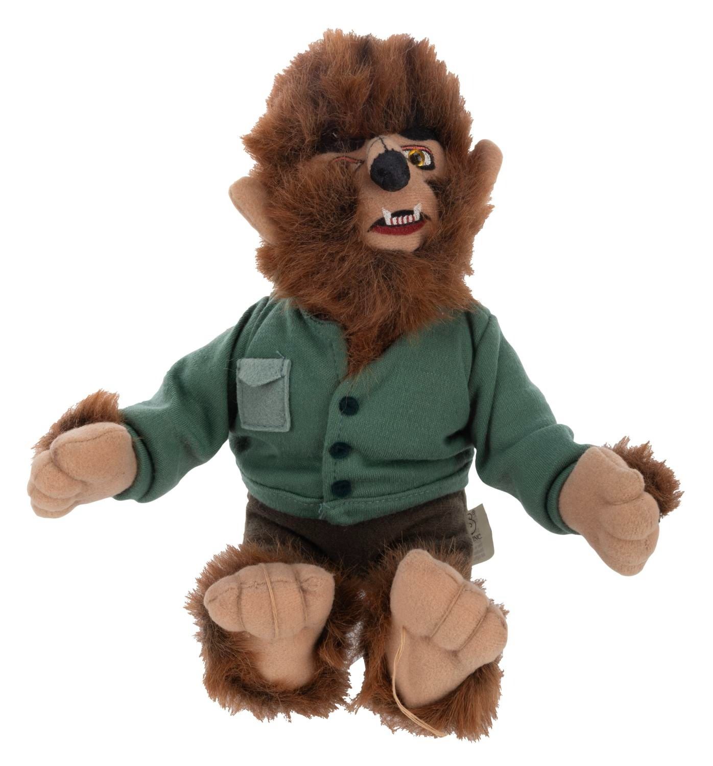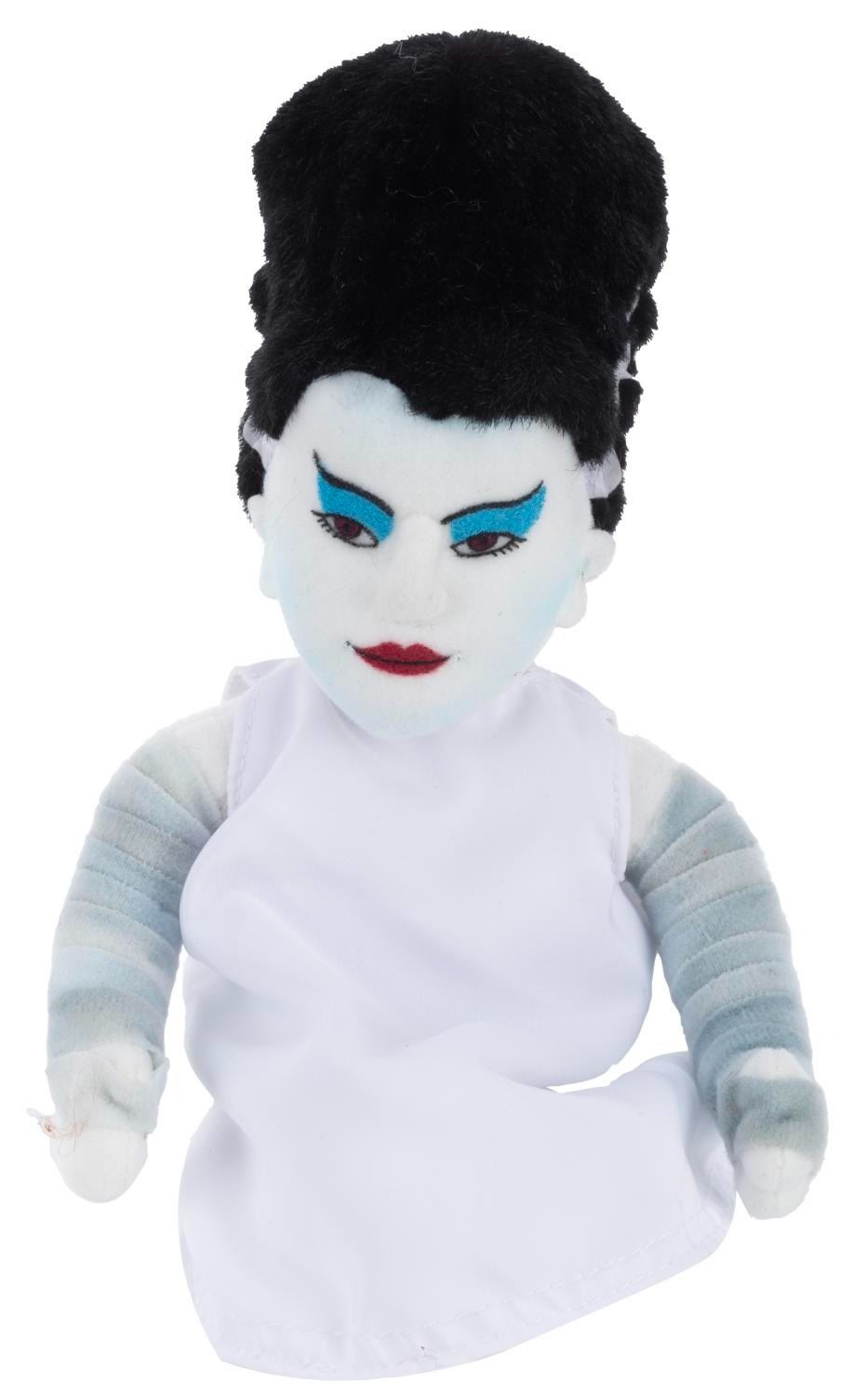 (CVS, 1999) A complete set of eight rare Universal Monsters "beanie" plush characters with the in-store display box. Included are Frankenstein, Wolfman, the Mummy, The Hunchback, the Phantom of the Opera, the Bride of Frankenstein, the Creature From the Black Lagoon, and Dracula. Each measuring approximately 8" tall, the dolls are in fine condition, with the very good condition 6.5" x 8.5" x 14.5" box.