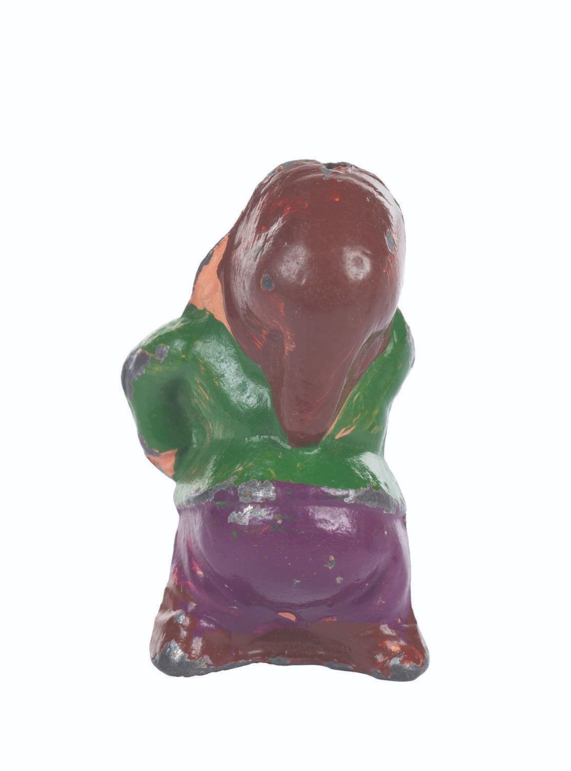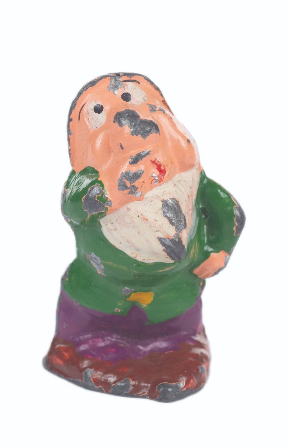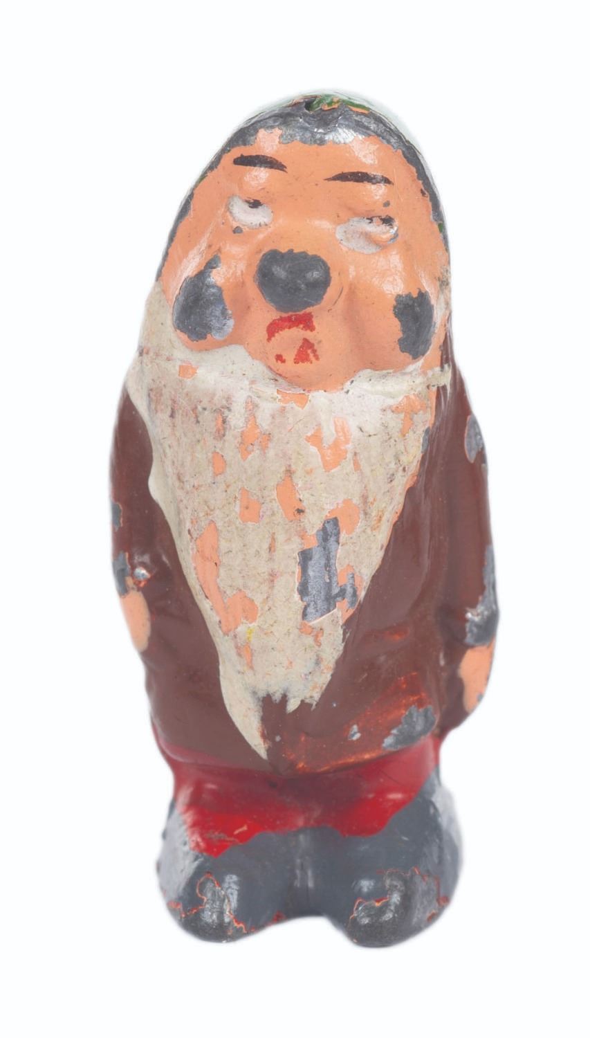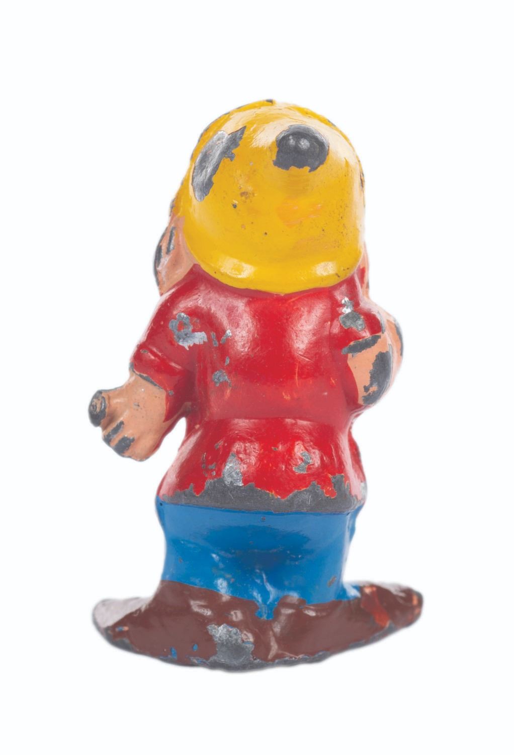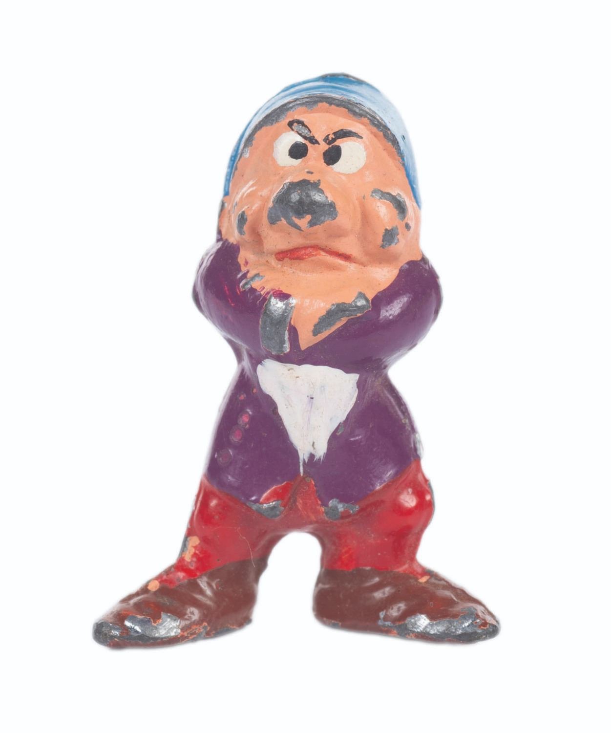 (Disney, 1930s) A collection of seven metal Snow White and the Seven Dwarfs figures, missing Bashful. The figures measure from 1.5" to 2.25" tall. and are in fair condition, with each exhibiting wear and chipping to the paint, and Snow White missing an arm.