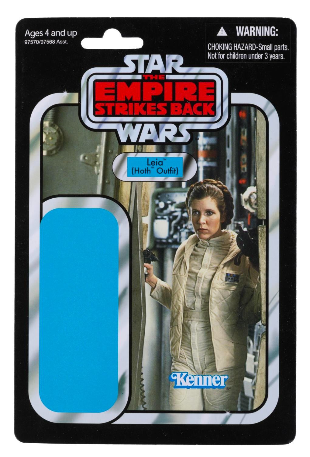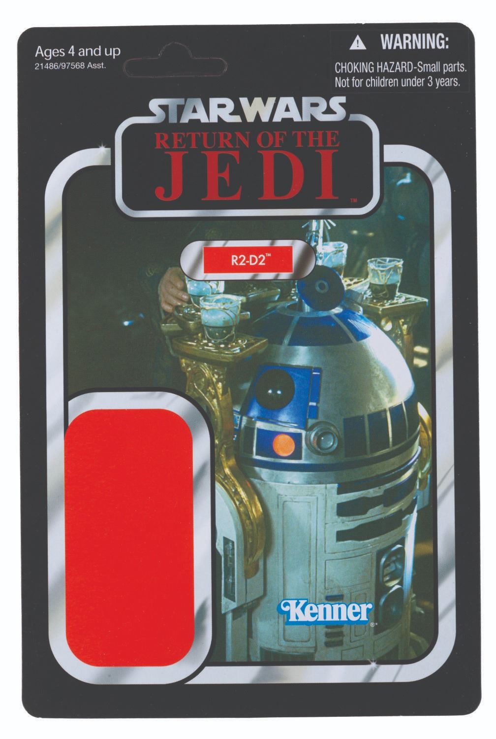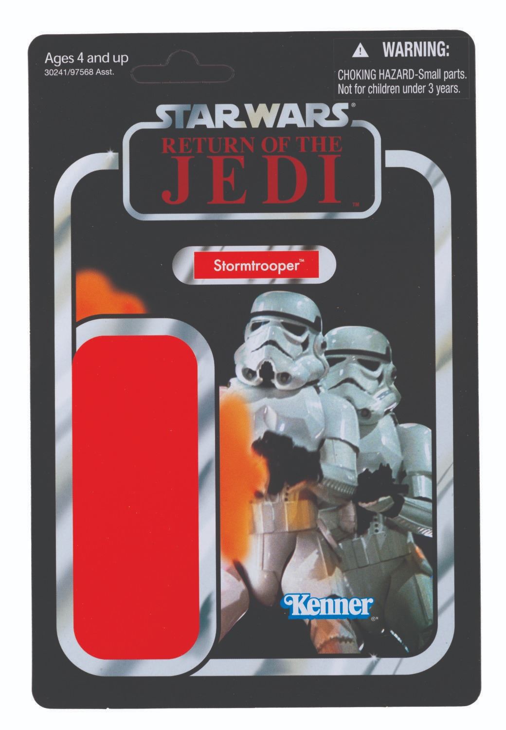 (Hasbro, 2010-2011) A set of 22 unused cardbacks for the Star Wars The Vintage Collection action figures based on the original Kenner action figures made in the late 1970s and early 80s. Included are cardbacks for Luke Skywalker, C-3PO, Han Solo, two designs for Darth Vader, and more. Measuring 6" x 9", the cardbacks, 16 of which are unpunched, are in very good to fine condition with minor edge wear to a few, and a small crease to the back bottom right corner of Han Solo.