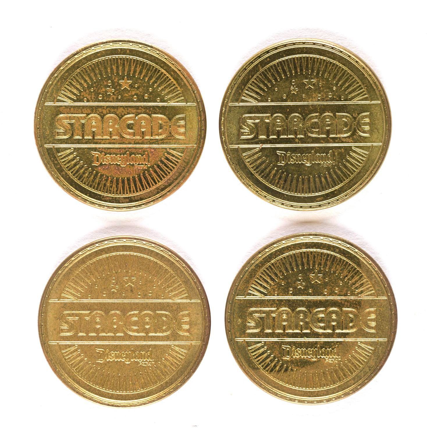 (Disneyland, 2000s) A set of (4) game tokens from Disneyland's Starcade in Tomorrowland. All are in very good used condition.