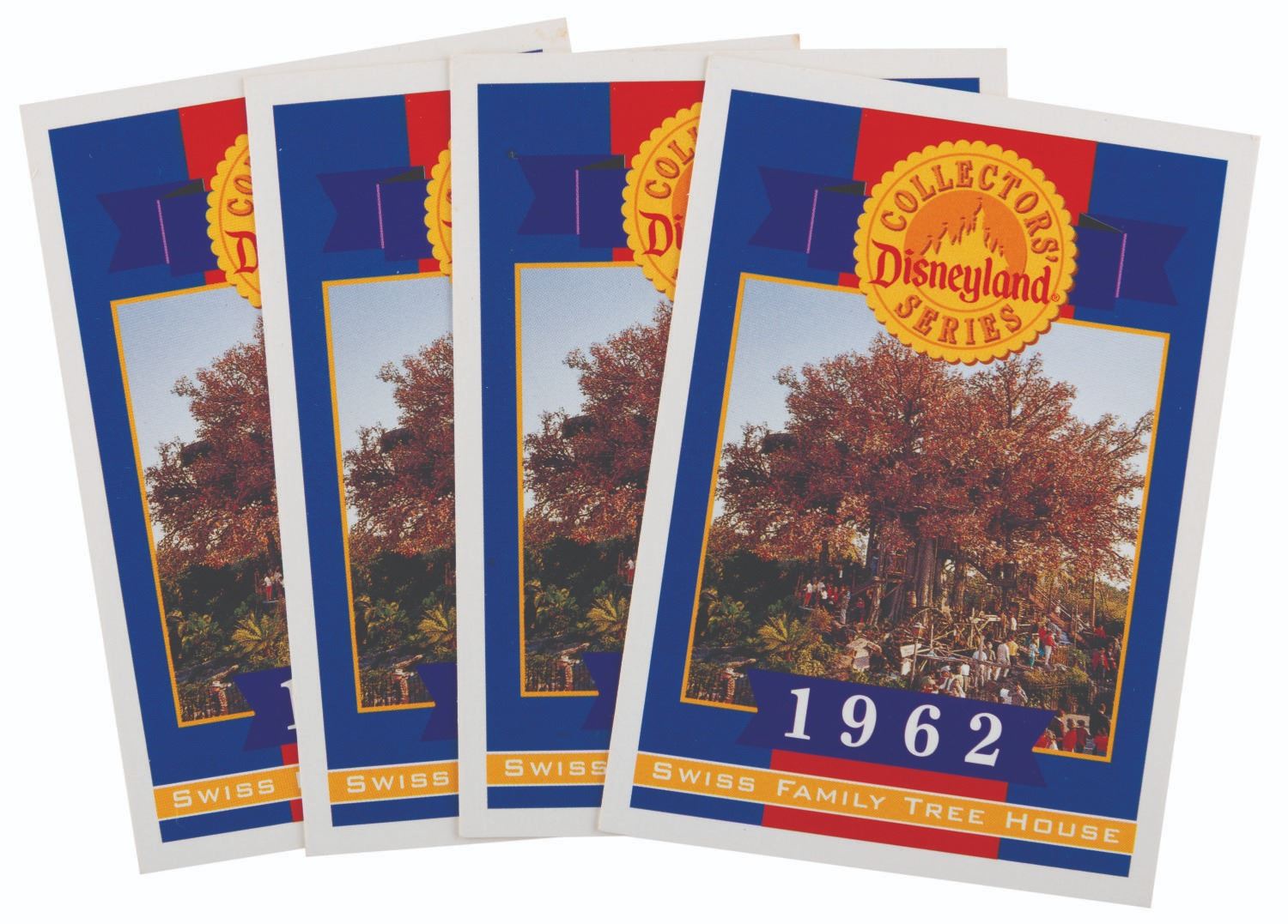 (Disneyland, 1995) A set of four sequential 40 Years of Adventure cards featuring the Swiss Family Robinson Treehouse at Disneyland. Measuring 2.5" x 3.5" the cards are in very good condition with minimal spots and stains.