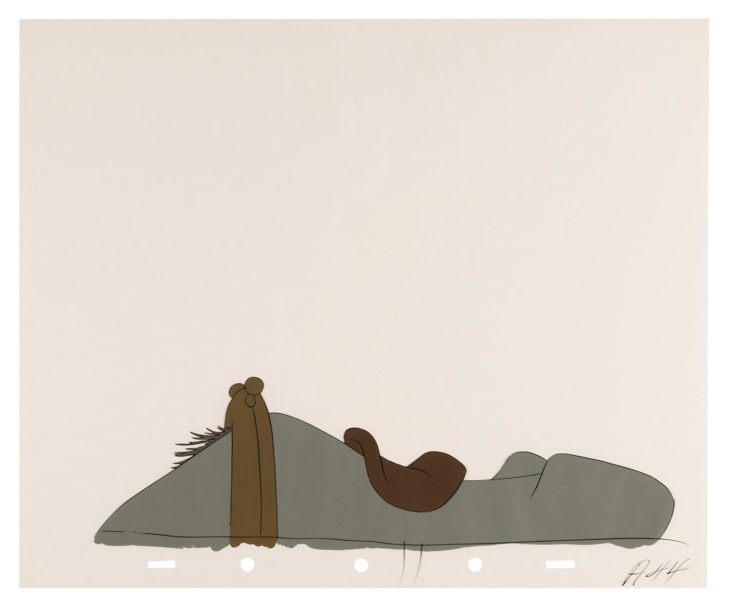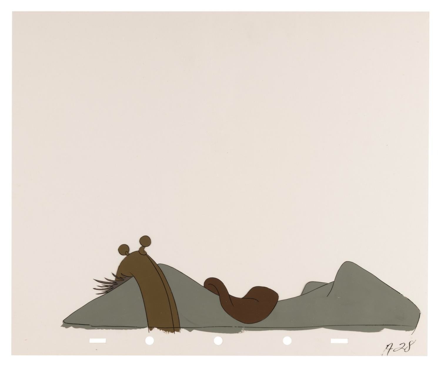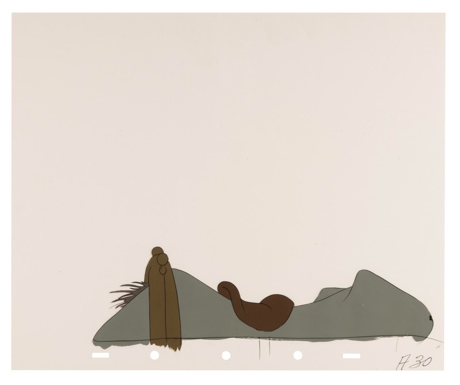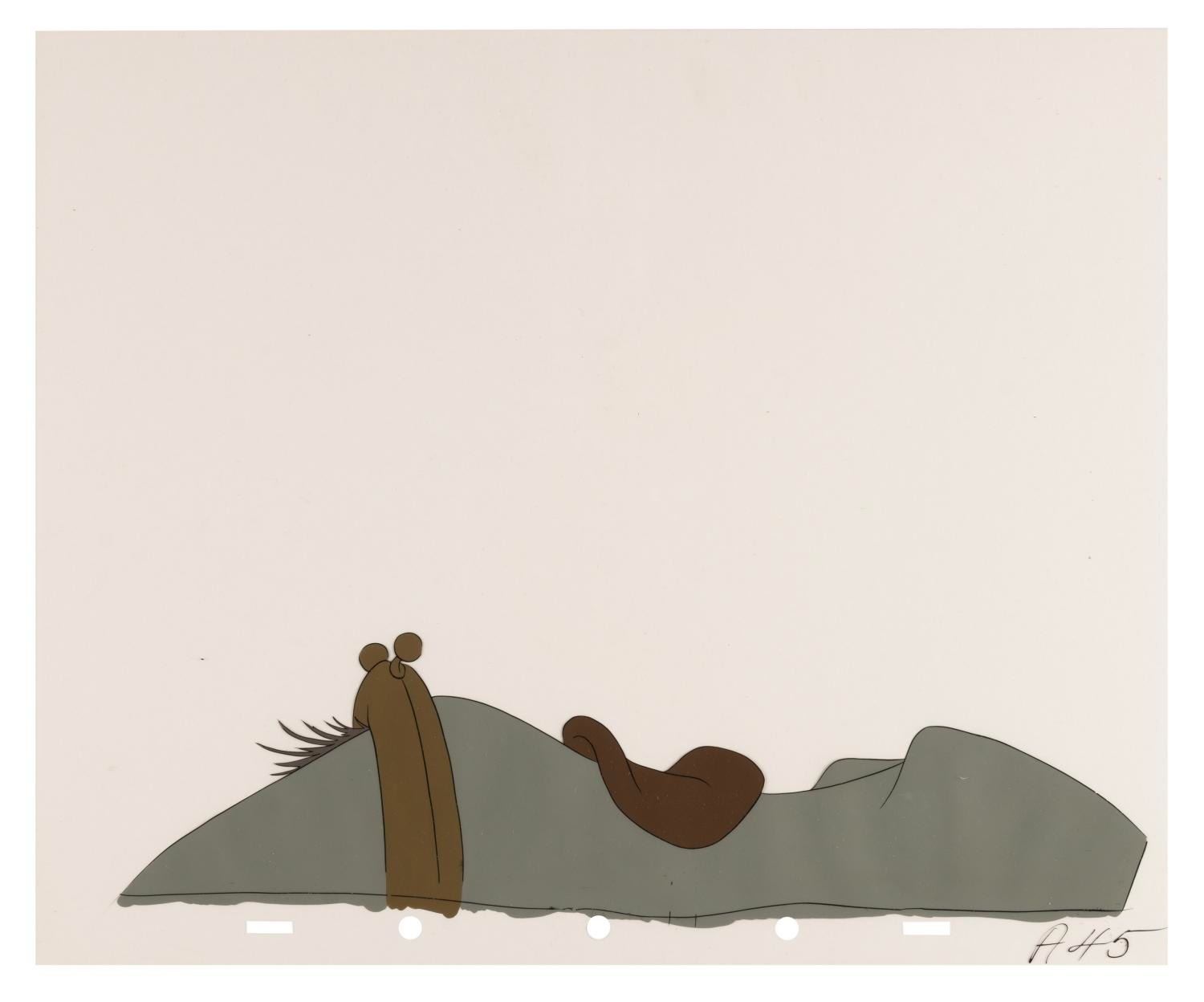(Disney, 1949) A collection of eight original production cels from “The Legend of Sleepy Hollow” segment of Walt Disney's anthology film "The Adventures of Ichabod and Mr. Toad." Included are one cel of Ichabod Crane and seven cels of his horse's back. Ichabod’s character image size measures 4.25” x 6” and the horse’s back ranges from 2.5” x 10.25” to 3” x 11”, each on 10” x 12” cels. The artwork displays in very good condition with light paint loss, scratches, scrapes, and smudges.