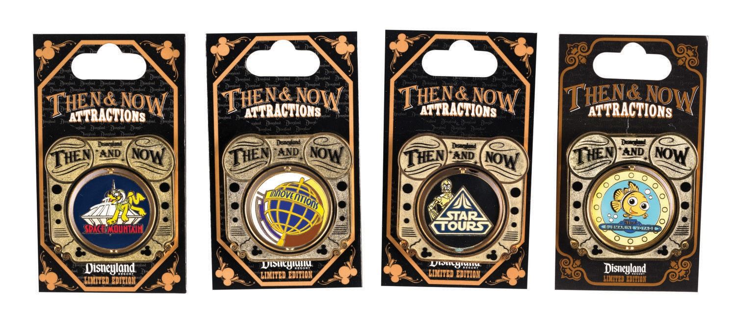 (Disneyland, 2000s) A set of (4) "Then and Now" pins on their original cards. In fine unused condition.