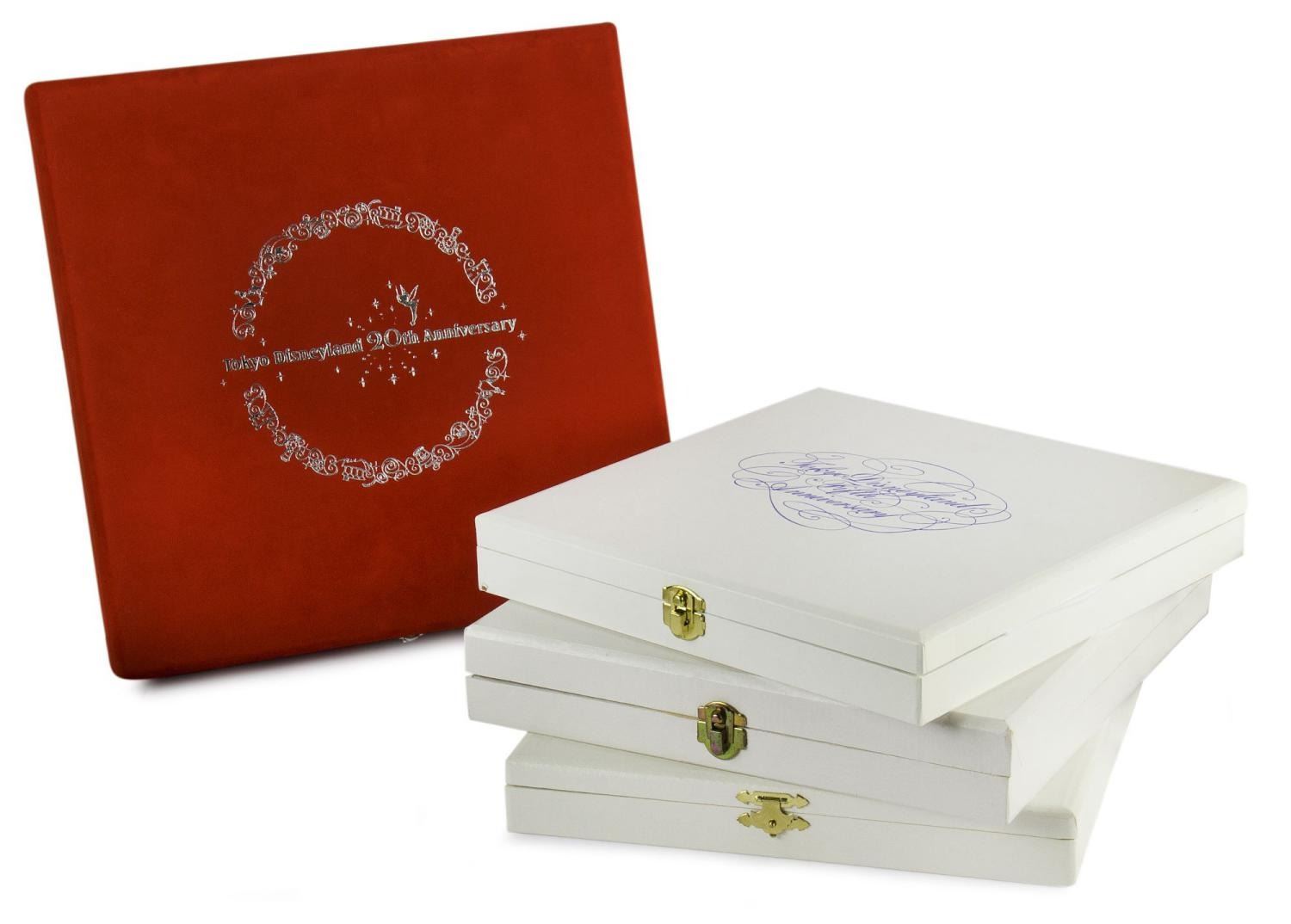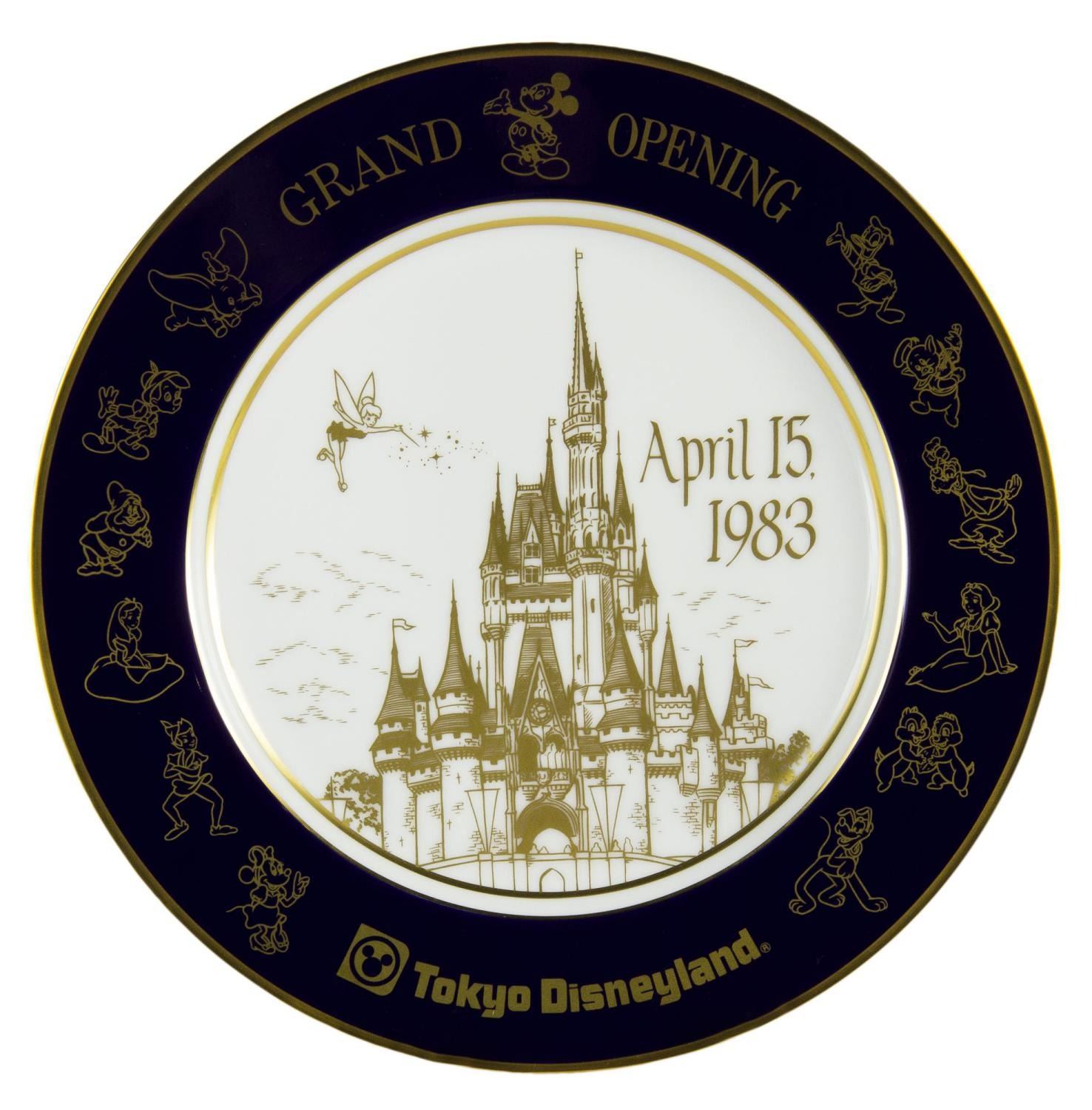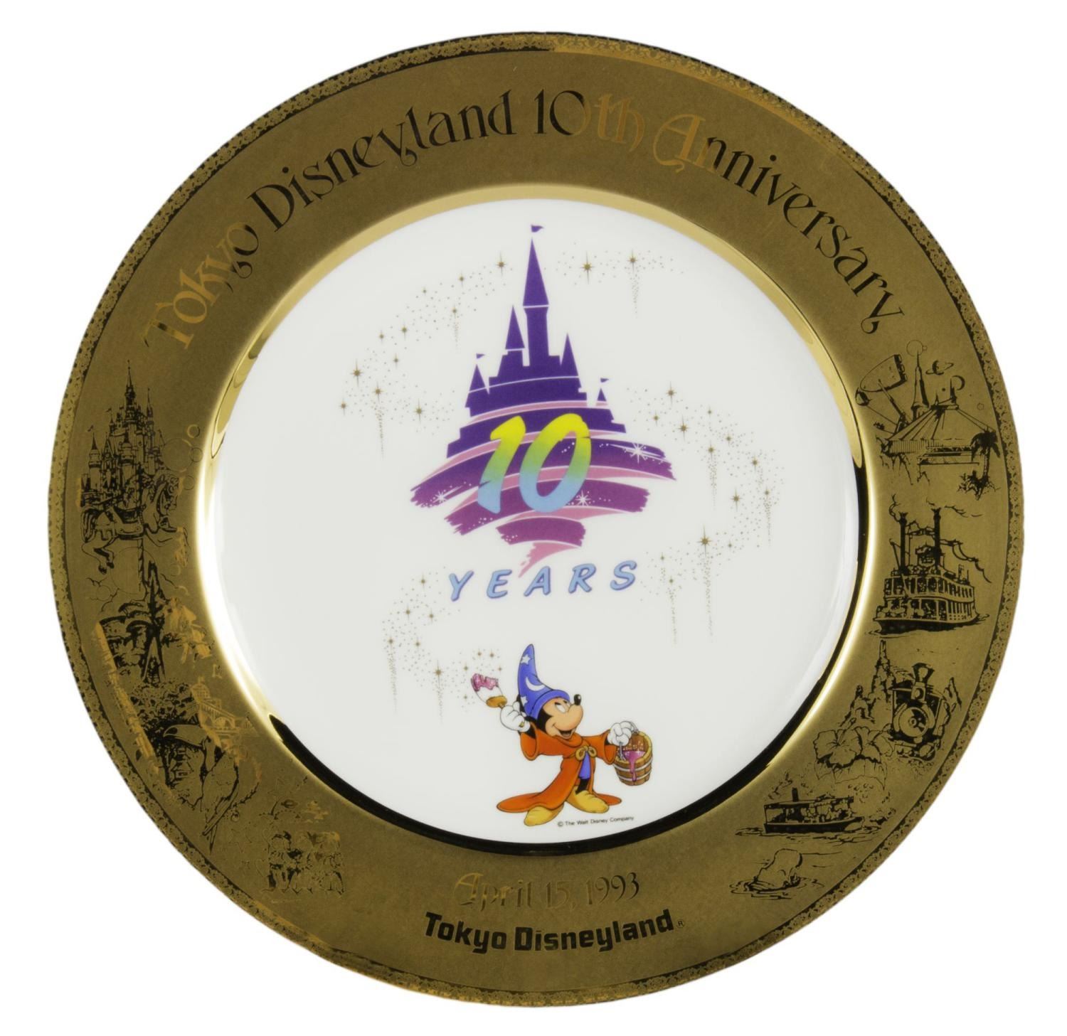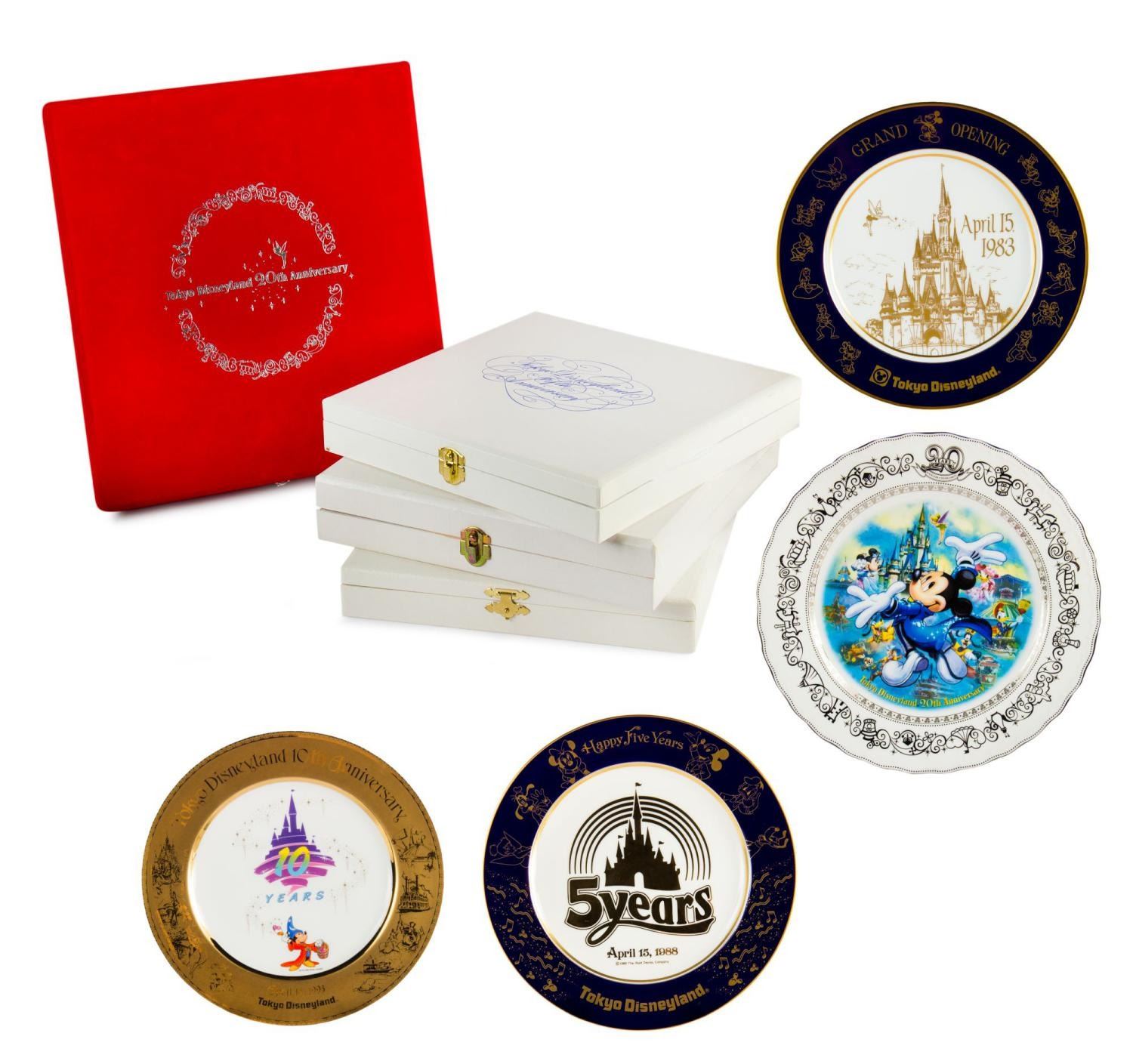 (Tokyo Disneyland, 1983-2003) A set of commemorative plates celebrating four significant anniversaries for Tokyo Disneyland. This set includes a plate for the Park's Grand Opening, 5th Anniversary, 10th Anniversary, and 20th Anniversary. The plates feature a variety of Disney characters and come in their original boxes. Measuring from 10” to 12” in diameter, the plates are in fine condition, with light wear to the boxes from handling.