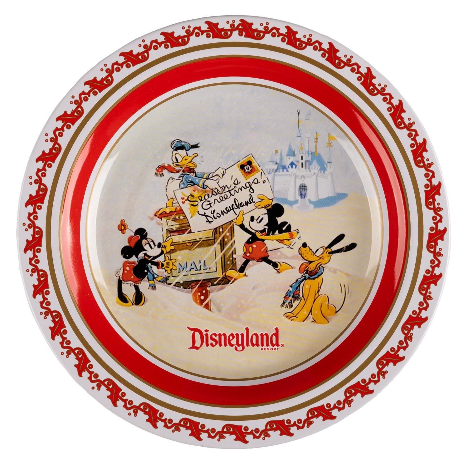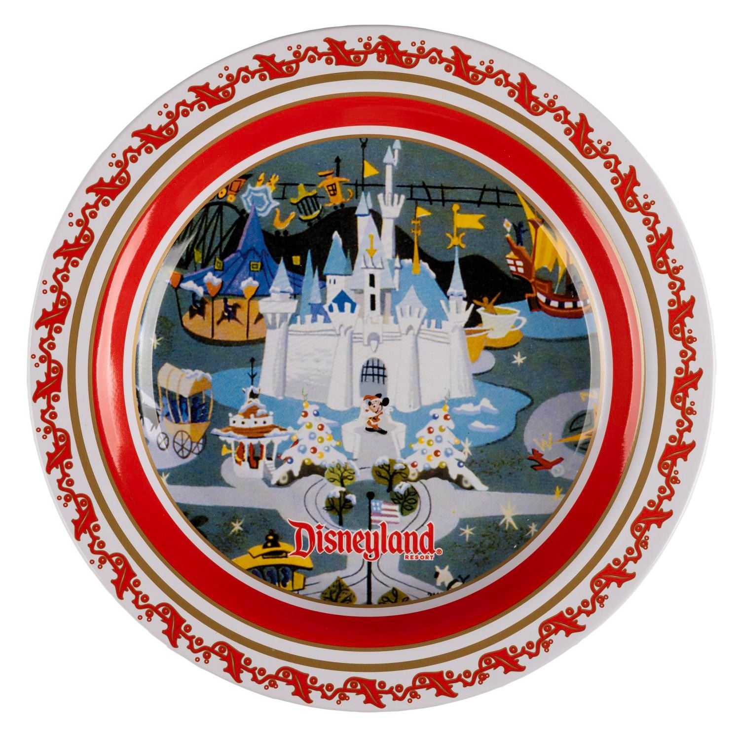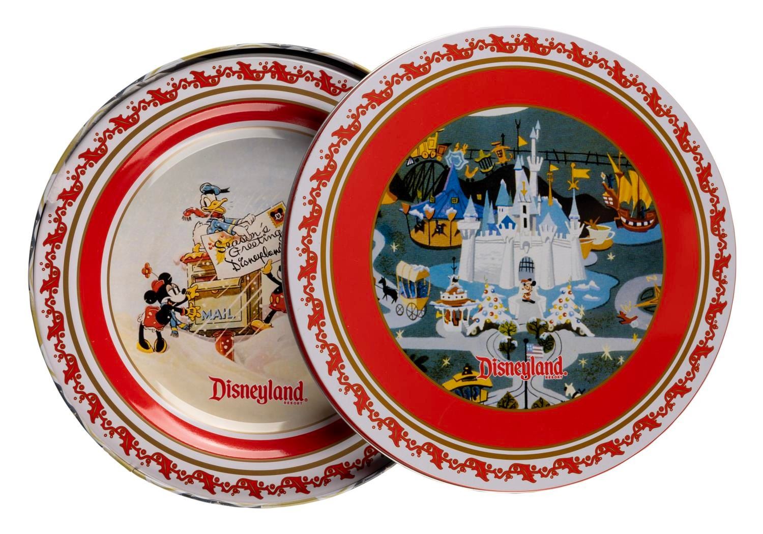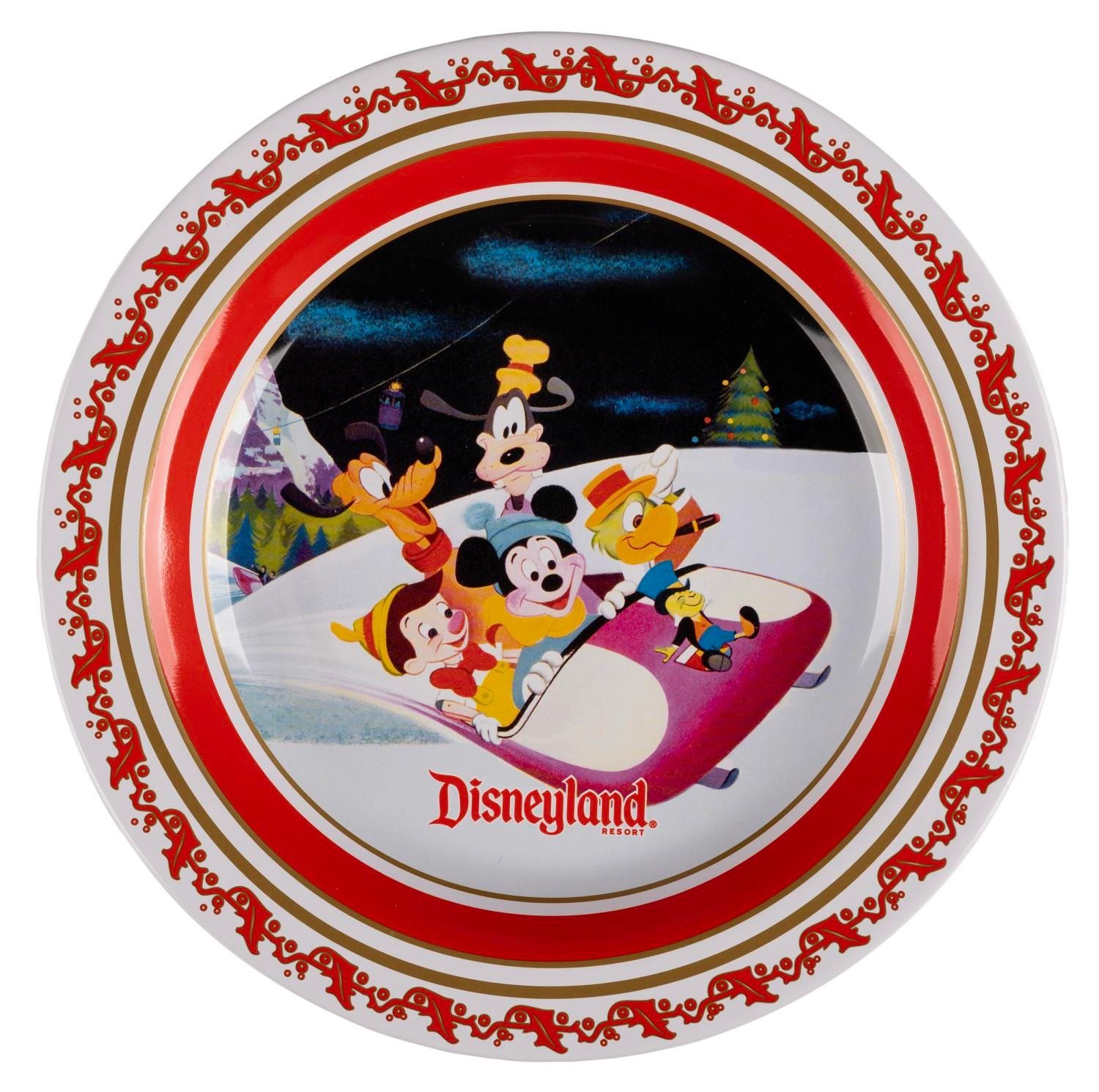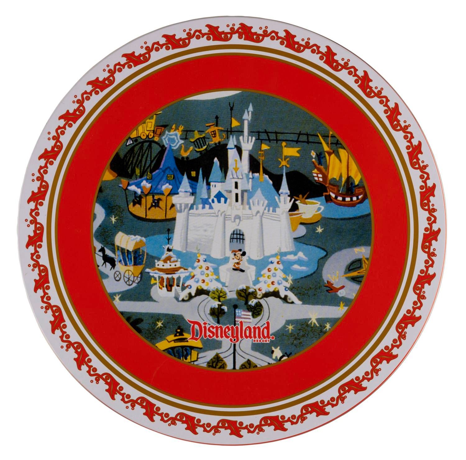 (Disneyland, 2007) A set of four Disneyland Resort exclusive tin Christmas plates. Measuring 8.5" in diameter, the plates are in very good condition with light wear mainly to the backs, with their 8.5" x 1.5" very good condition tin.