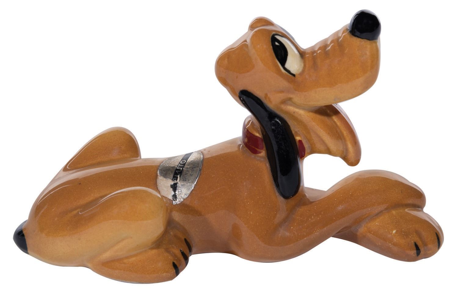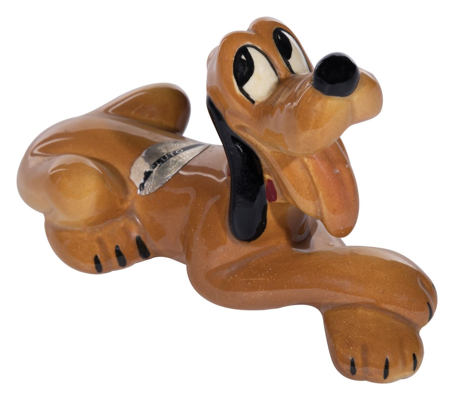 (Shaw, 1940s) A painted glazed ceramic figurine of Pluto by Evan K. Shaw of Los Angeles. Measuring 5.5"x3", Pluto is in fine condition, with very minor crazing. He retains the original label on his back.