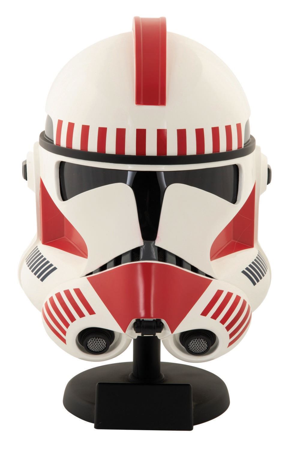 (Master Replicas, 2006) A Limited-Edition Imperial Shock Trooper Helmet Replica. This helmet is an exact replica of the originals seen in "Revenge of the Sith," and was one of very few unnumbered outside of the released edition of 750. The helmet has a total height of 16.75" while upon its display stand and is very fine condition.
