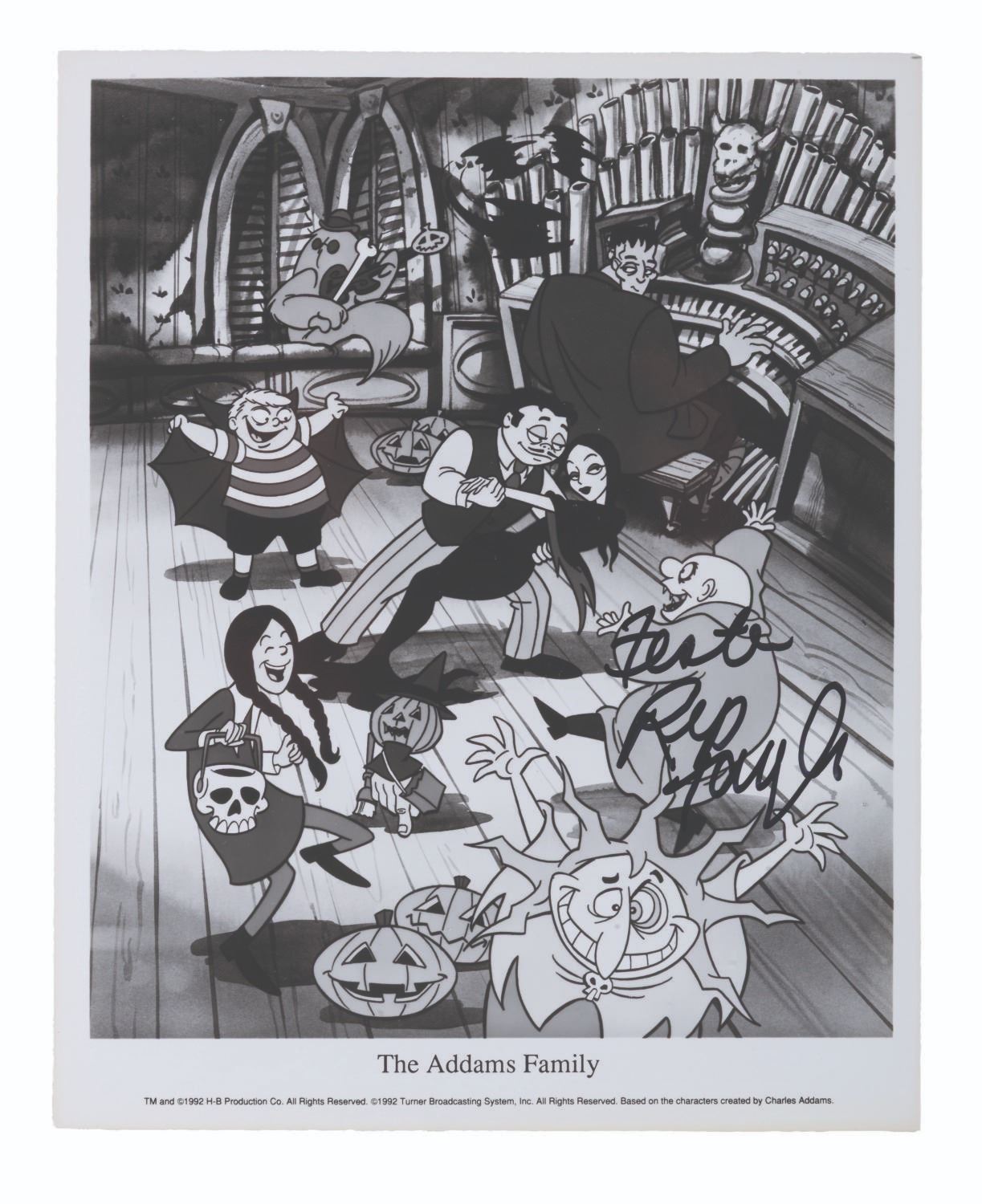 (Hanna-Barbera, 1992-93) A publicity photo for the 1990s animated "The Addams Family " series, signed by Fester voice actor Rip Taylor. Measuring 8 " x 10 " the photo is in fine condition.