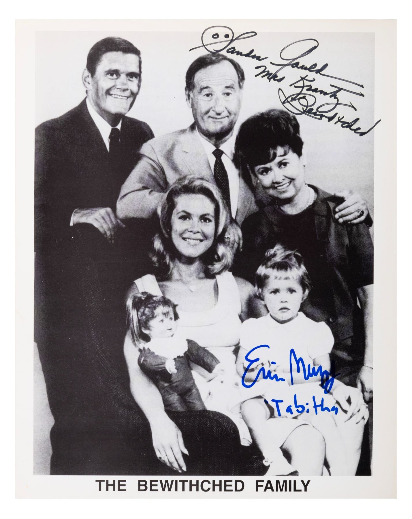 (ABC, 1980s-90s) A cast photo of "Bewitched" signed by Erin Murphy who played Tabitha, and Sandra Gould, the second actress to portray Mrs. Kravitz. Measuring 8" x 10" the autographed photo is in fine condition.