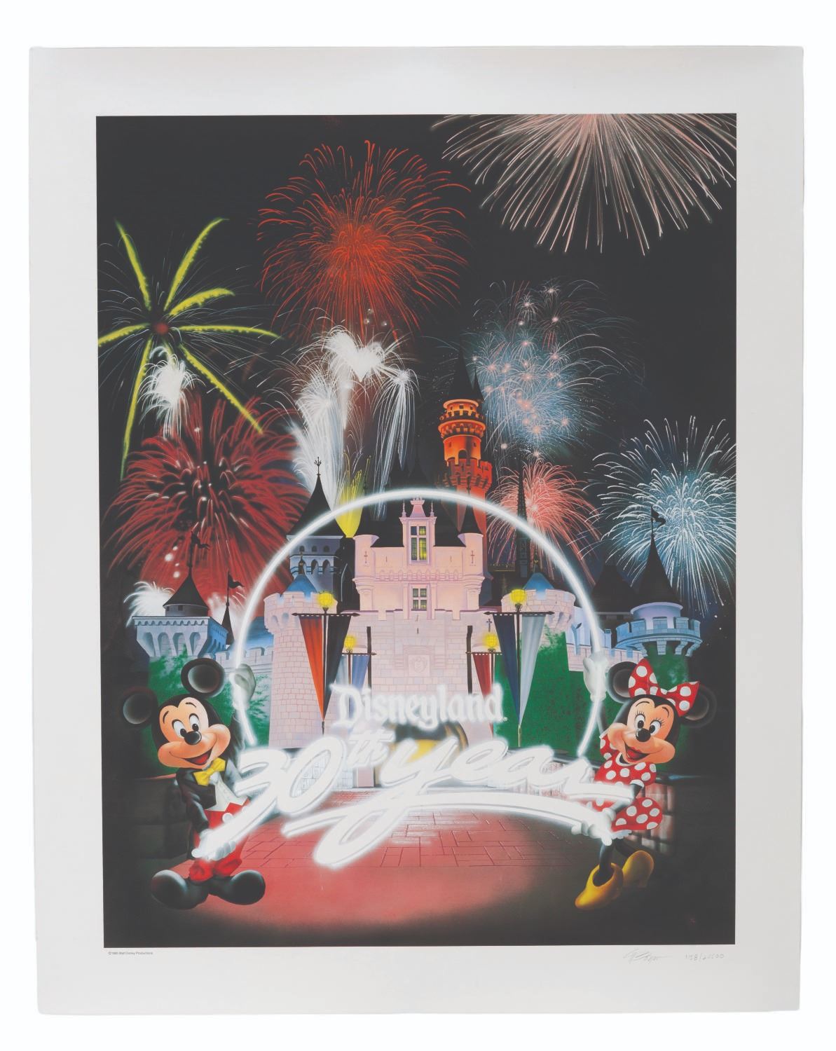 (Disneyland, 1985) A"Disneyland, 30 Years of Magic" limited edition poster signed by artist Charles Boyer. With an image size of 19" x 25" and measuring 23" x 29" overall, the poster displays in very good condition with light creases and a spot of discoloration at the bottom right.
