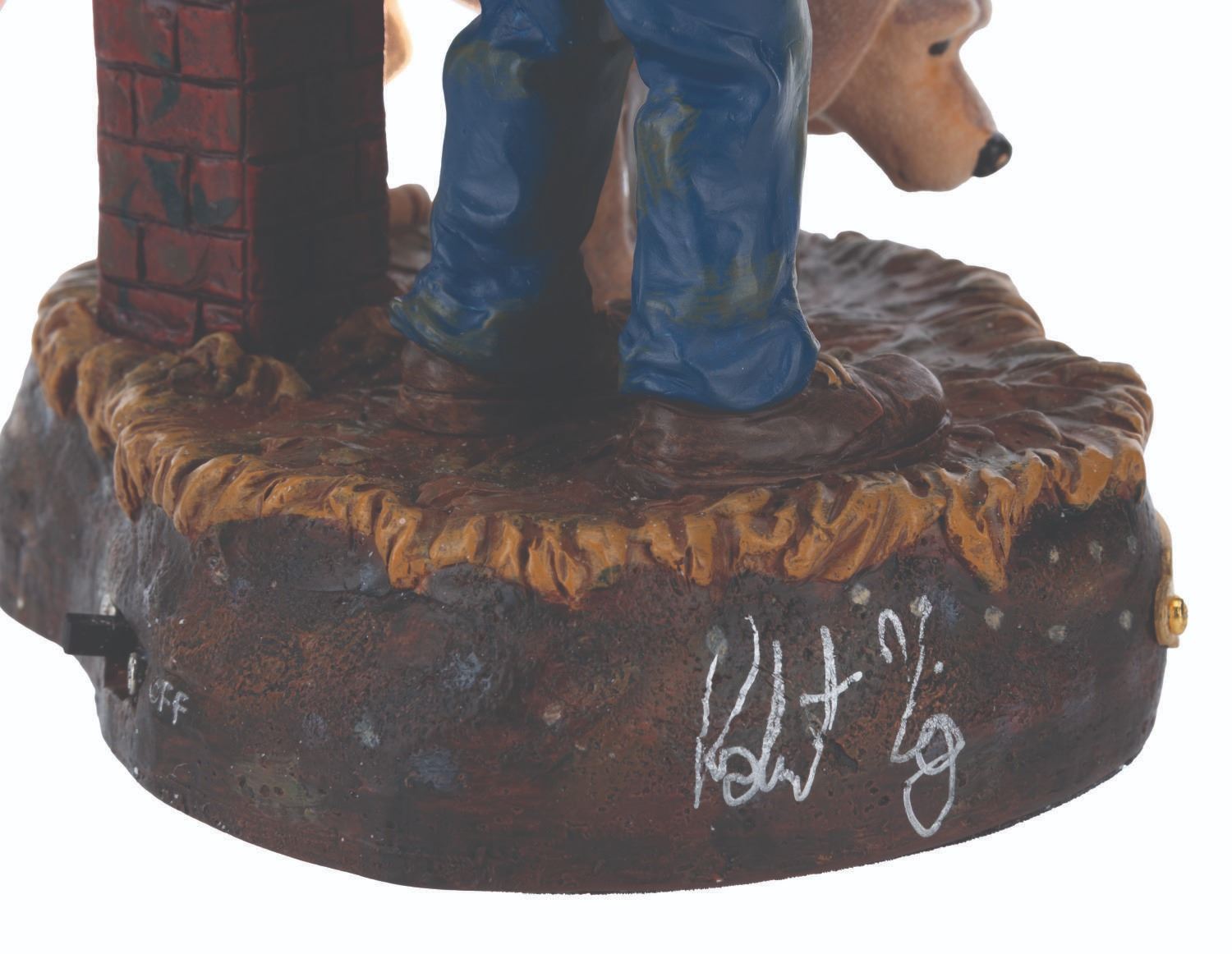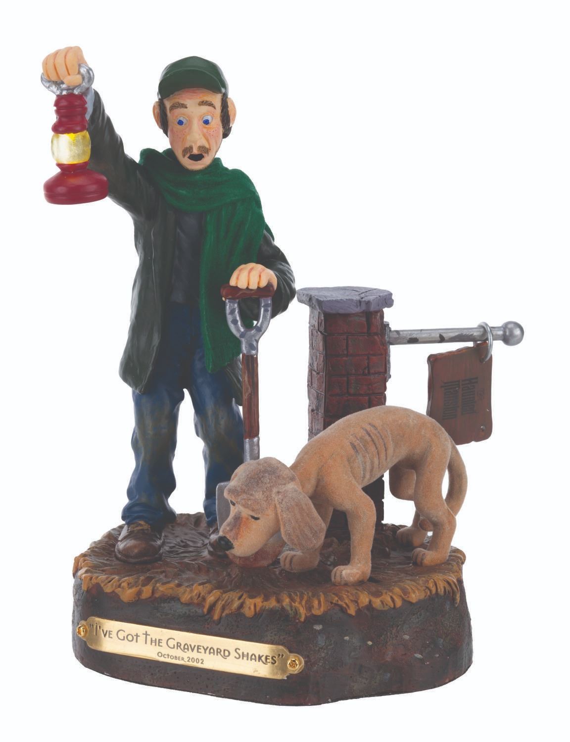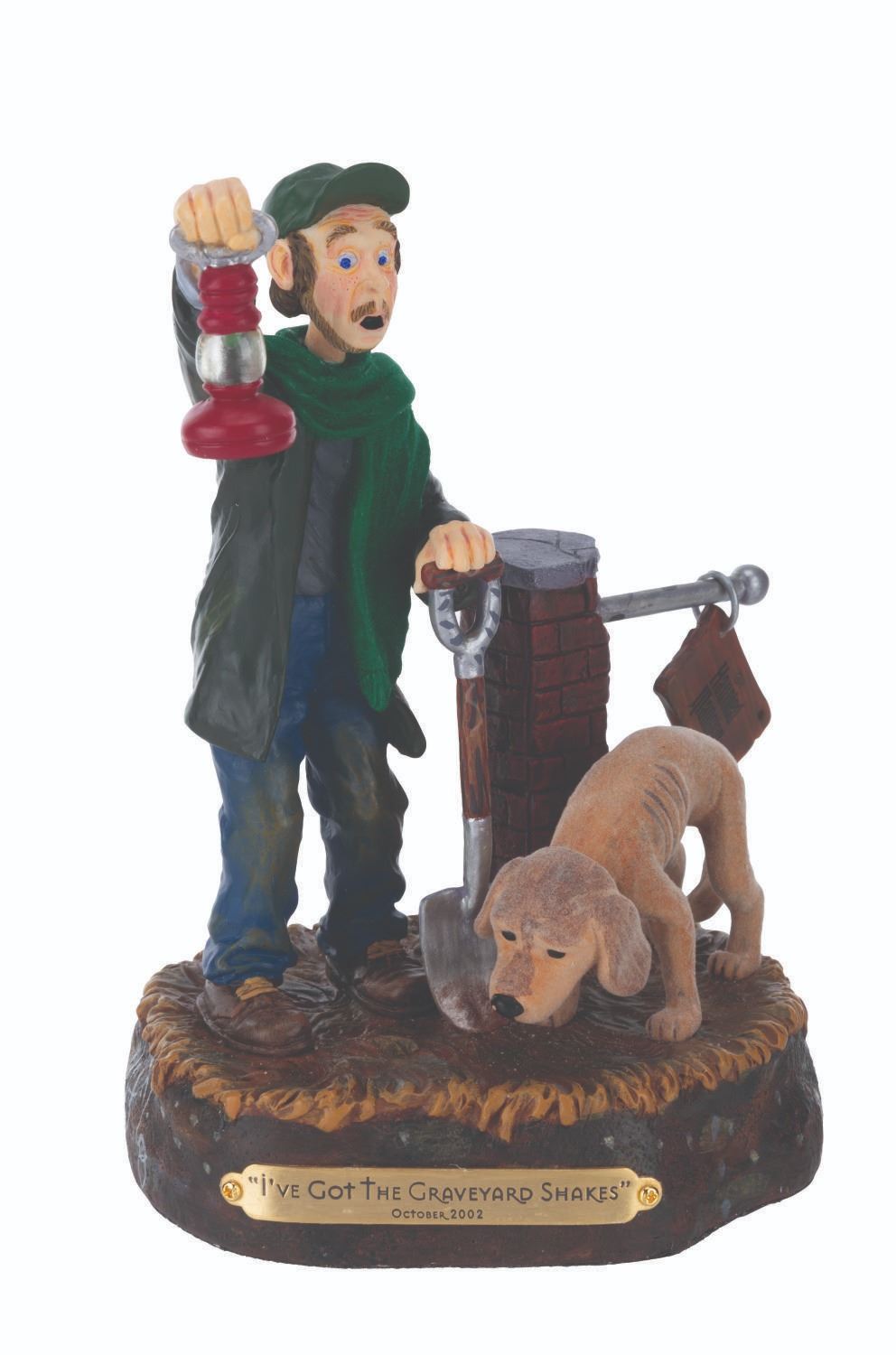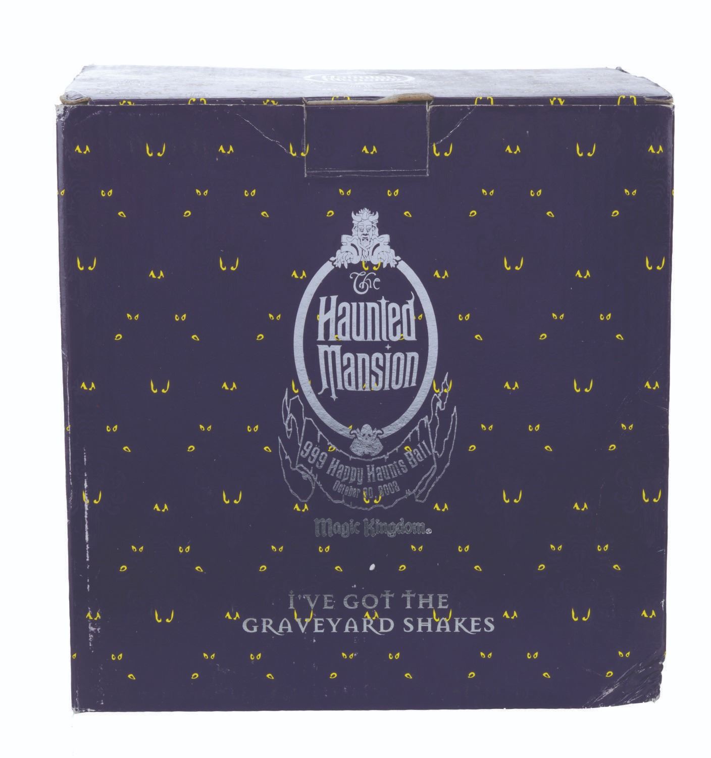 (Walt Disney World, 2002) A Haunted Mansion "I've Got The Graveyard Shakes" figure designed by Randy Noble and sculpted by Robert King. The piece was limited to an edition of 999 through the"999 Happy Haunts Ball" at The Magic Kingdom in 2002, and is signed on the base by designer Noble. With two"AAA" batteries (not included), the lamp glows yellow, and worked when tested. Measuring 6.5" x 4" x 7.5" tall, the resin figure is in fine condition.
