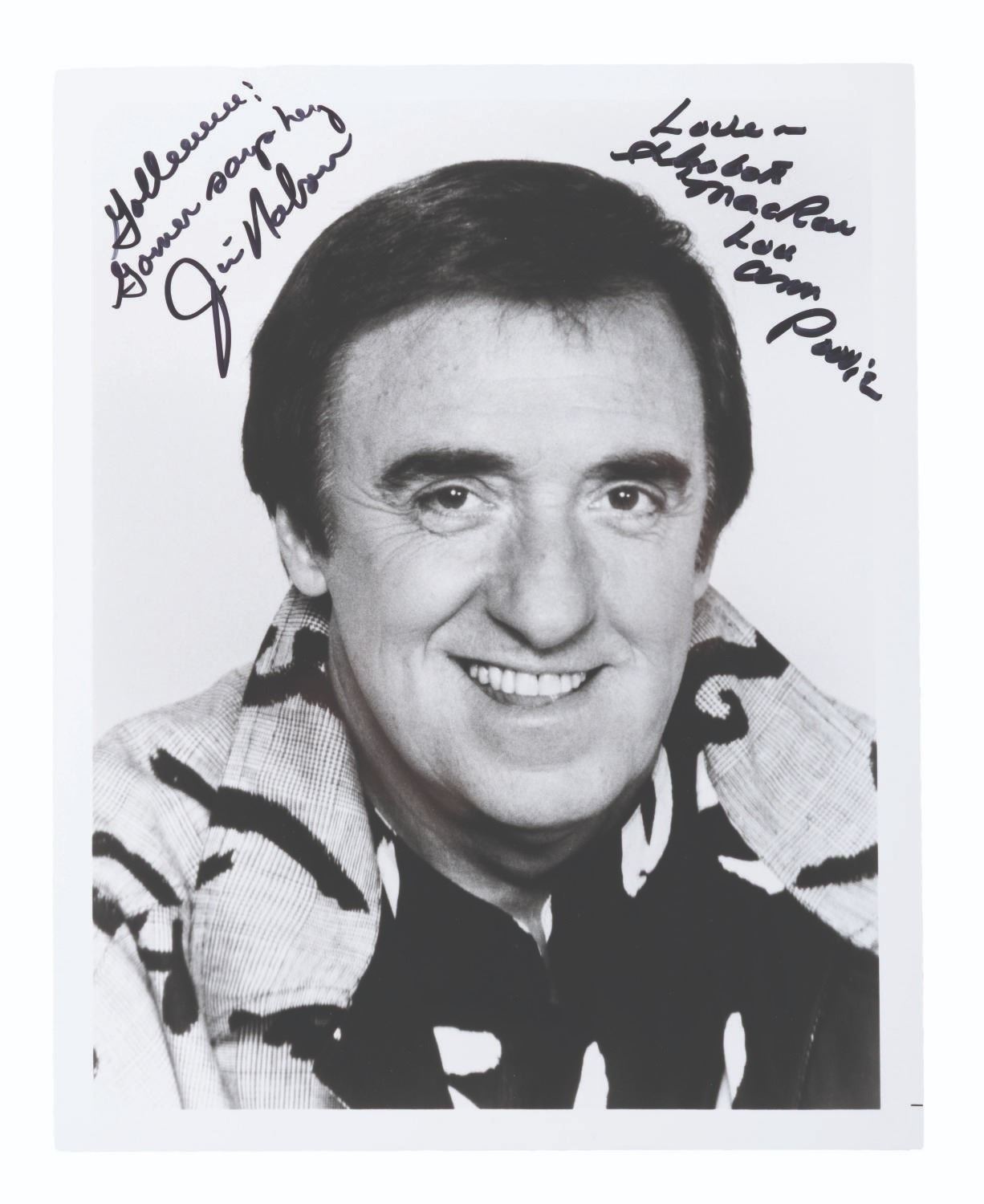 (Nabors/MacRae, 1980s-90s) A photo of Jim Nabors signed by stars of "Gomer Pyle-USMC," Jim Nabors (Gomer) and Elizabeth MacRae (Lou-Ann Poovie). Measuring 8" x 10", the photo is in fine condition.