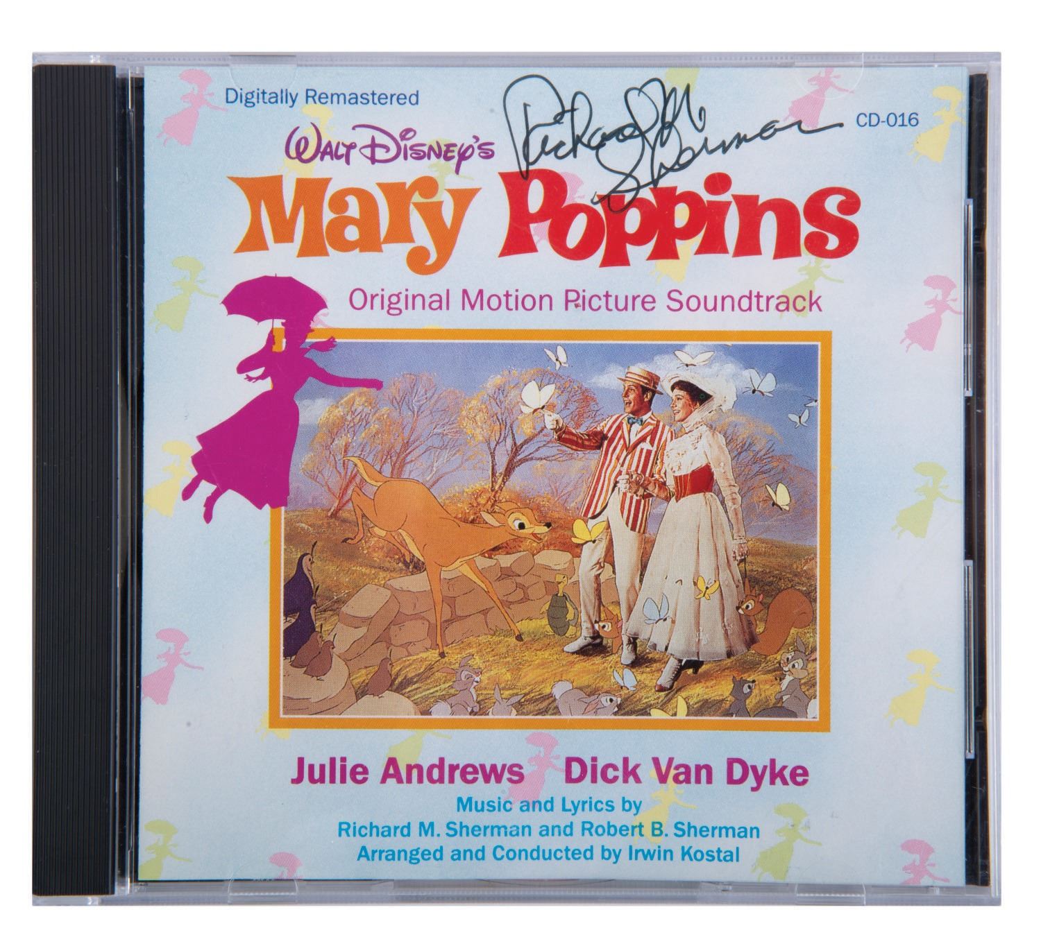 (Disney, 1989) A "Mary Poppins" CD signed on the cover by composer Richard Sherman. This was the first U.S. release of the soundtrack on Compact Disc. The CD is in fine condition with the slightest wear from handling.