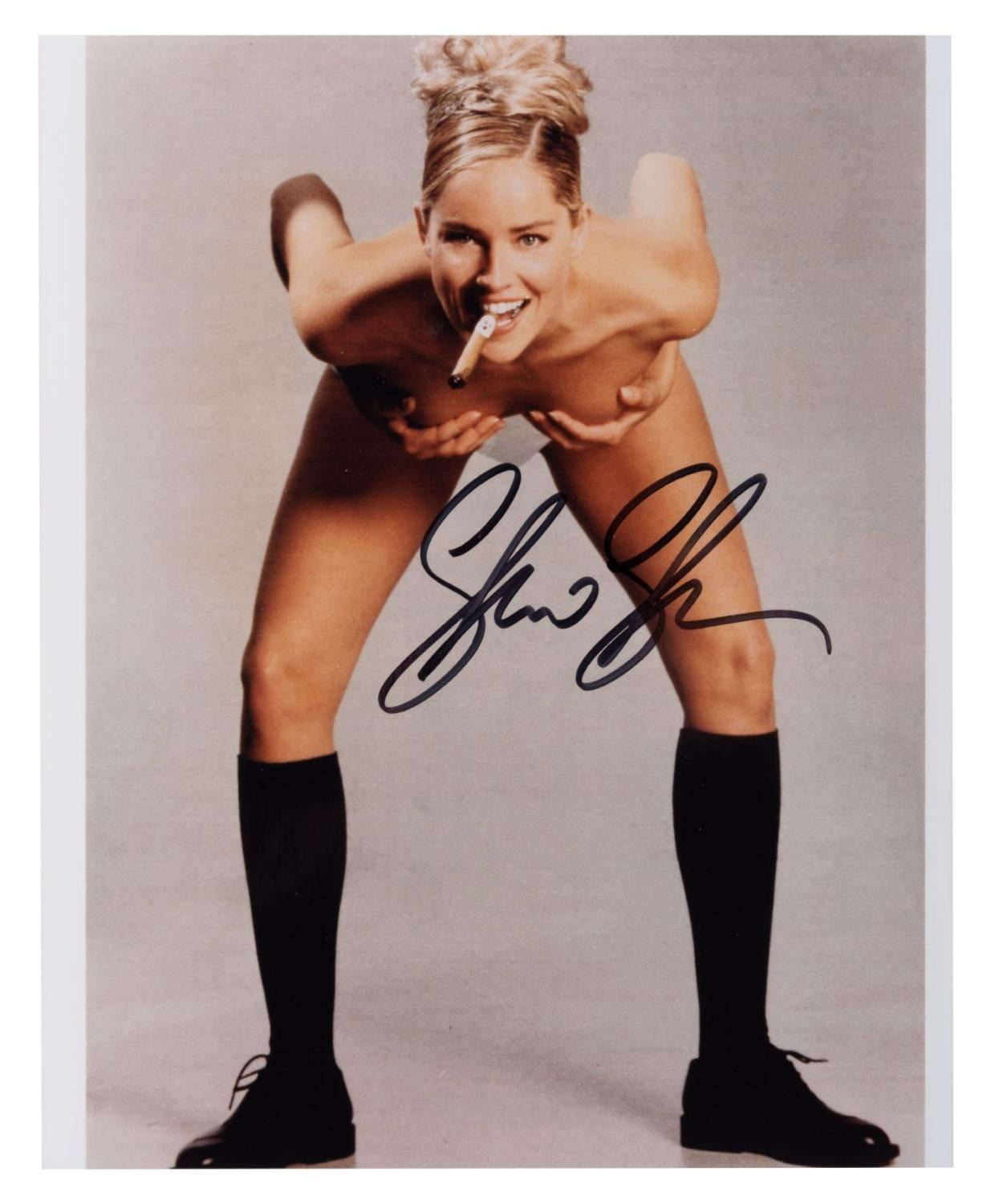 (Sharon Stone, 1990s-2000s) A publicity photo signed by Sharon Stone, known for her roles in "King Solomon's Mines," "Basic Instinct," and "Total Recall." Measuring 8" x 10", the photo is in fine condition.