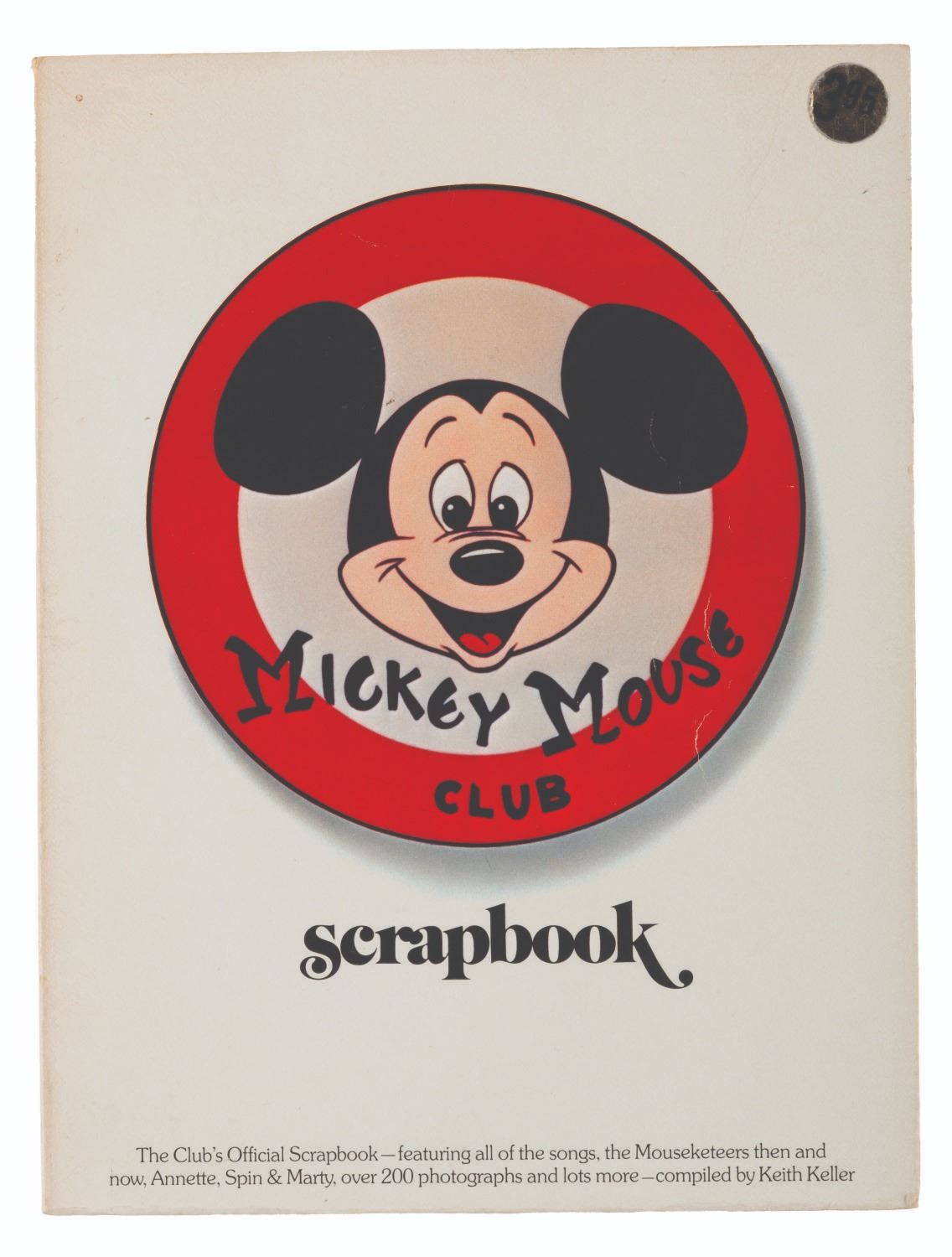 (Disney, 1975) A softcover book "The Mickey Mouse Club Scrapbook," with two signatures each inside from mouseketeers Cubby O'Brien and Sharon Baird. The signed book is in good condition with light cover wear typical of handling and age.