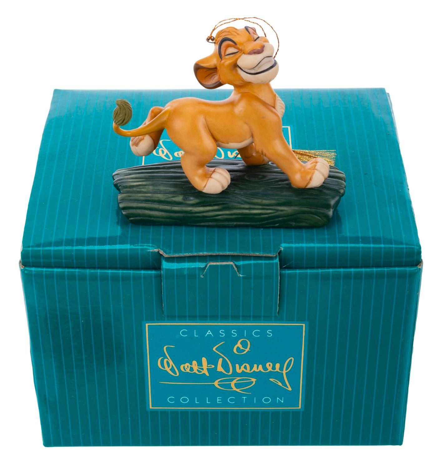 (Disney, 1998) An ornament of Simba titled “Hakuna Matata.” Standing 2.5” tall, the porcelain ornament is in fine condition.