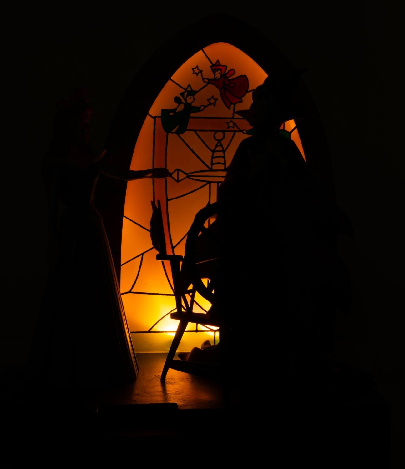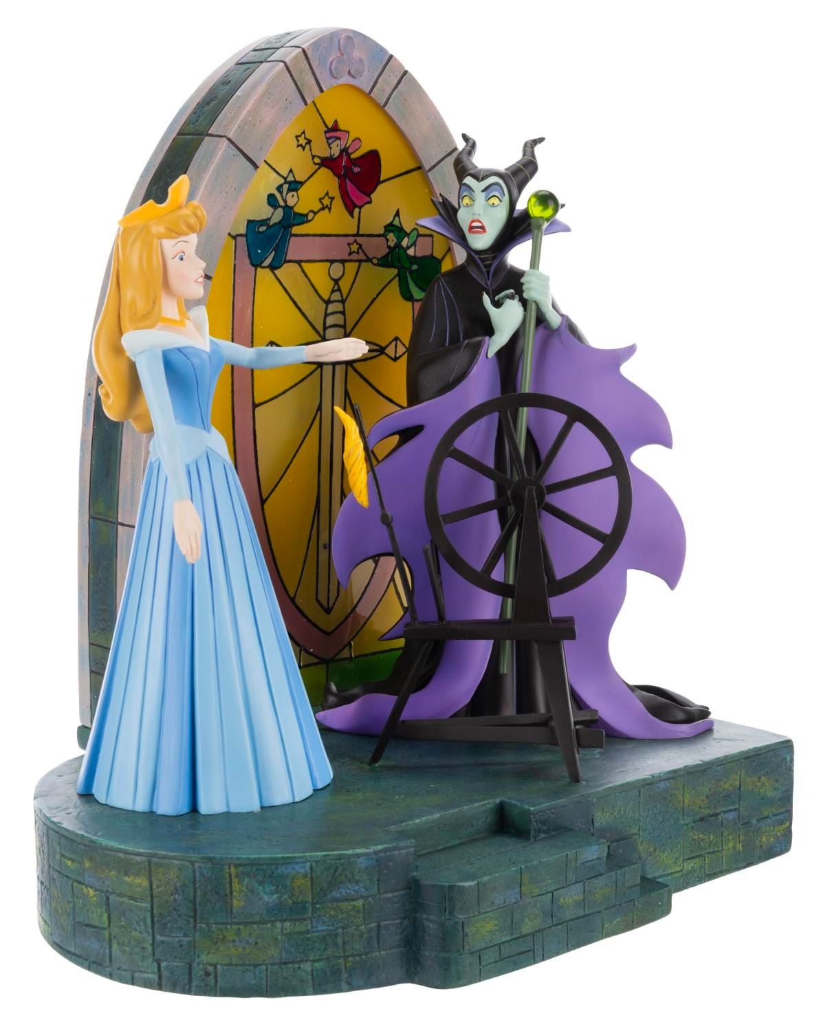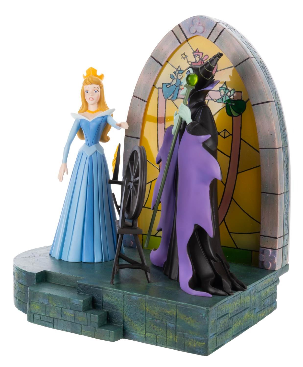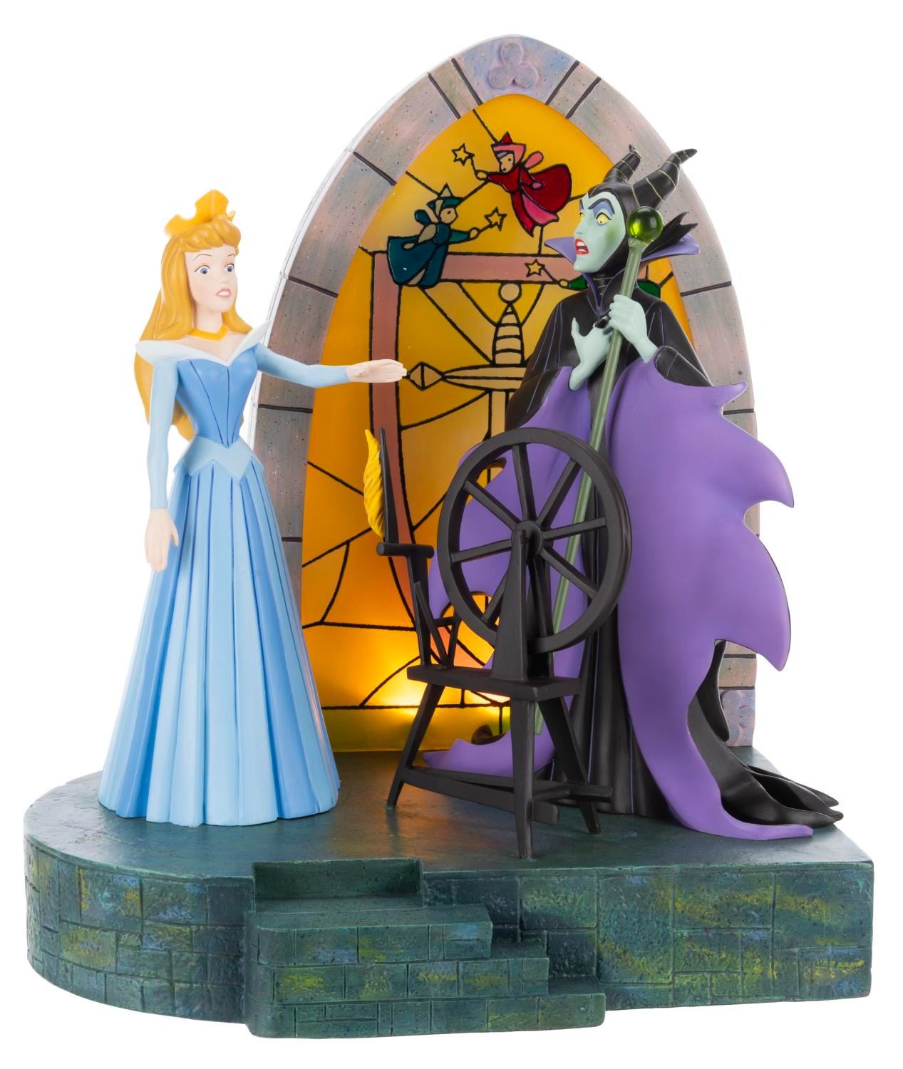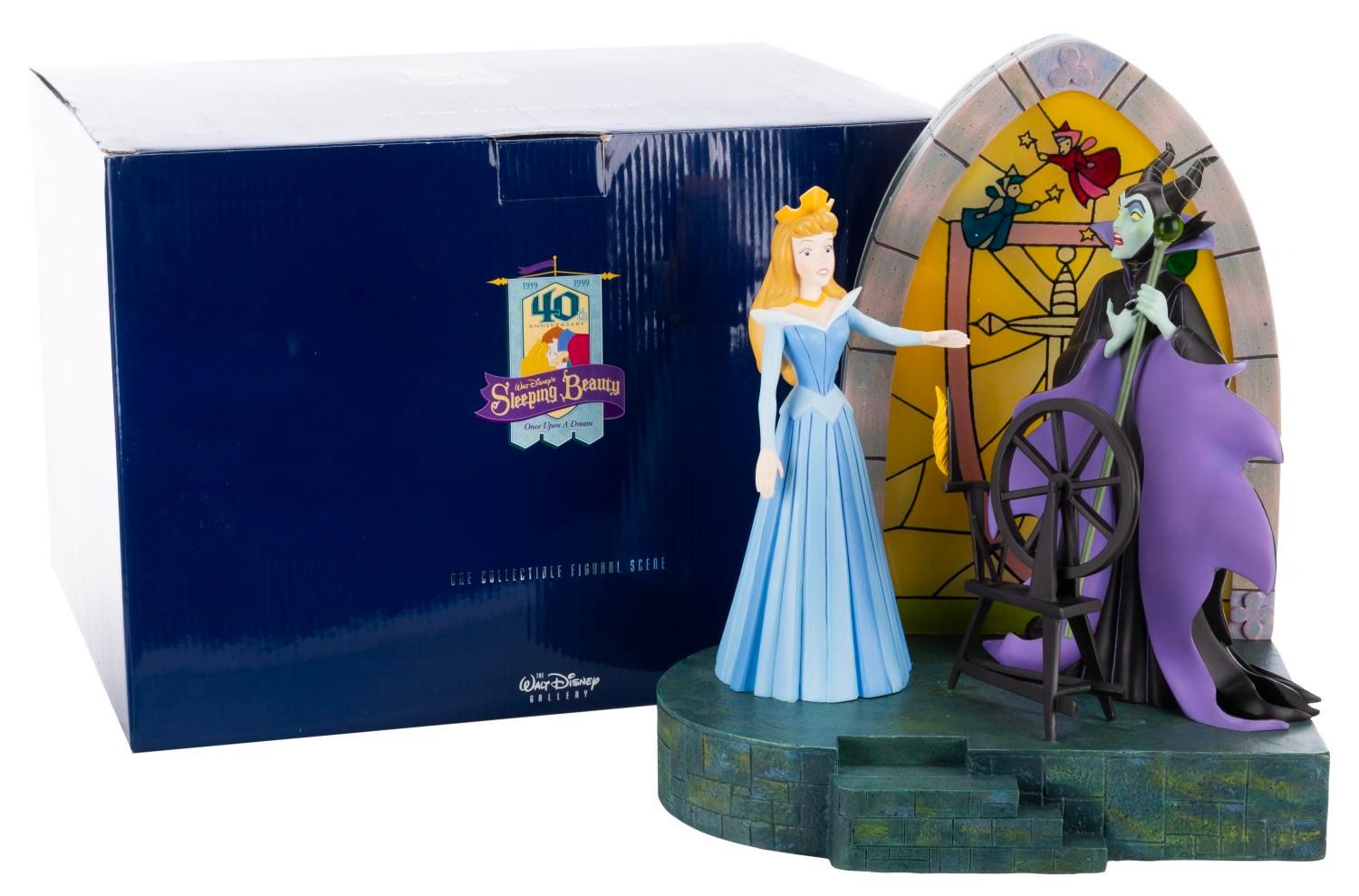 (Disney, 1999) A light-up figural scene of Aurora and Maleficent, created for the 40th anniversary of "Sleeping Beauty." The light-up function worked when tested, requiring two AA batteries (not included). Released in a limited edition, the piece is numbered 397/2500. Measuring 10.5" x 8" x 11.5" tall, the figural scene comes with its original box and is in very good condition with light wear.
