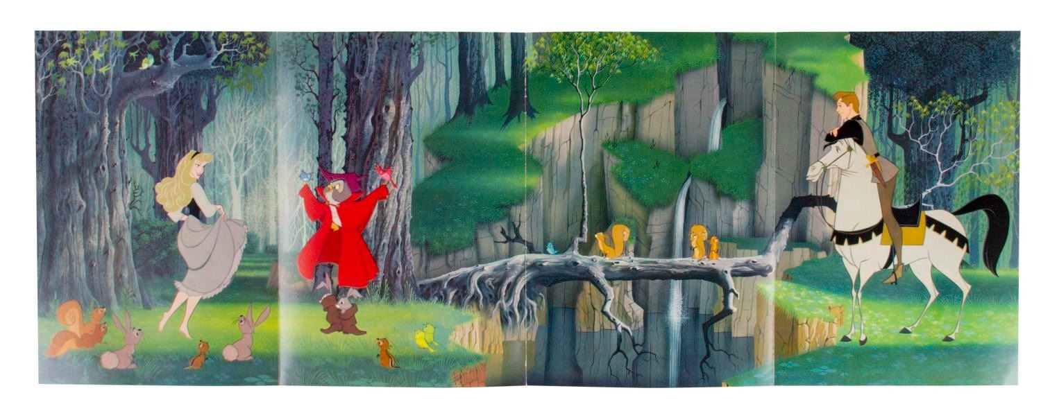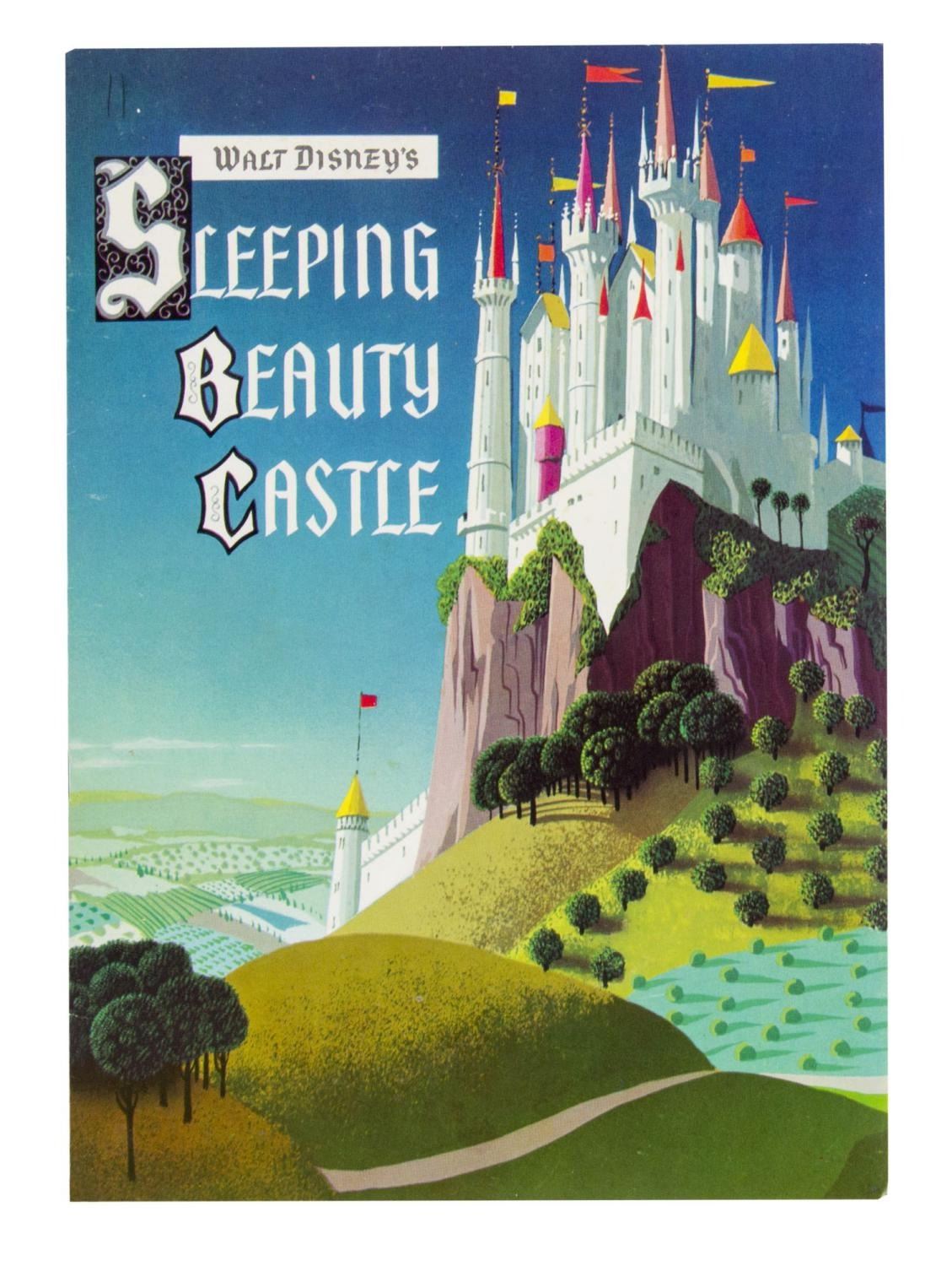 (Disneyland, 1957) A rare souvenir booklet featuring text and colorful stills from the film "Sleeping Beauty," first sold when the Sleeping Beauty Castle Walkthrough attraction opened in 1957. Measuring 7.75" x 11", the six-page guidebook is in very good condition with creases, handling wear, and two ink marks at the top left corner.
