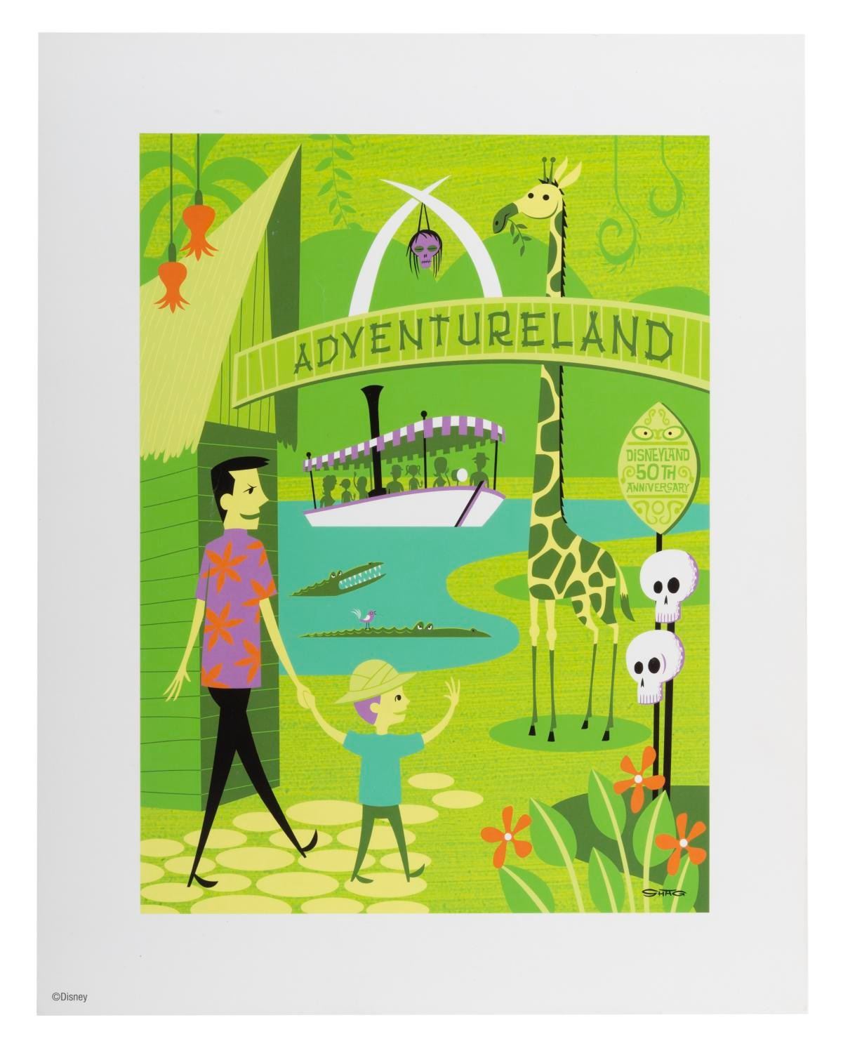 (Disneyland, 2005) An Adventureland print by SHAG from the Original Lands Collection, created for the 50th Anniversary of Disneyland. Measuring 11 " x 14 ", the print is in good condition with creases and curling from storage.