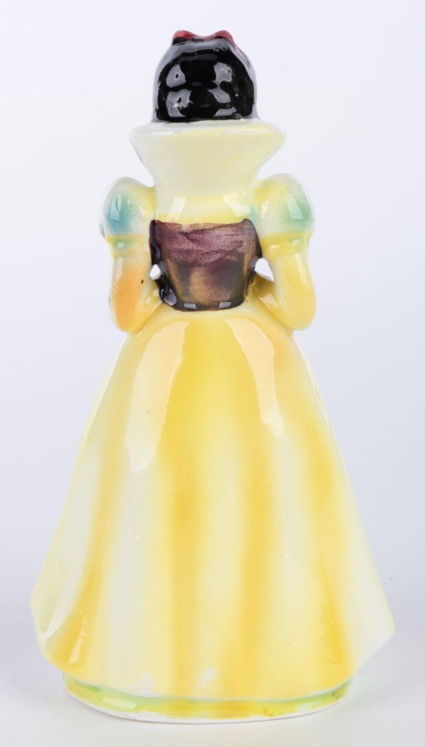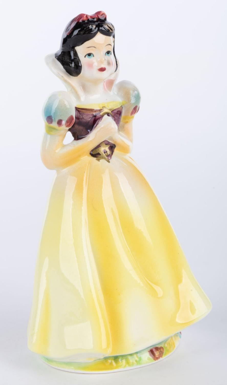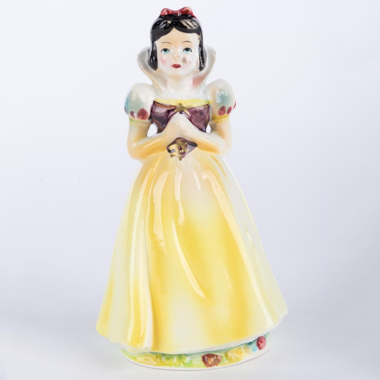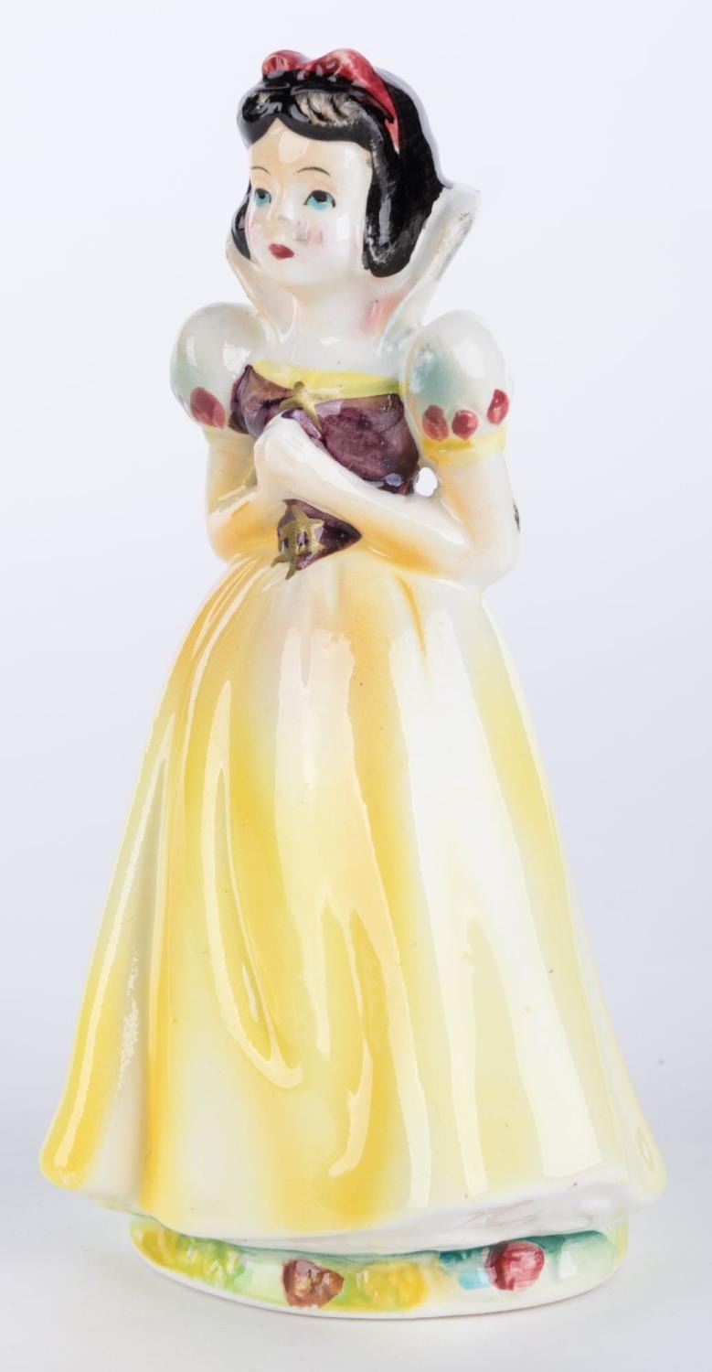 (Wales, 1960s) A Snow White figurine from "Snow White and the Seven Dwarfs," by Wales China. Measuring 5" tall, the figurine is in very good condition with minimal paint and glazing imperfections.