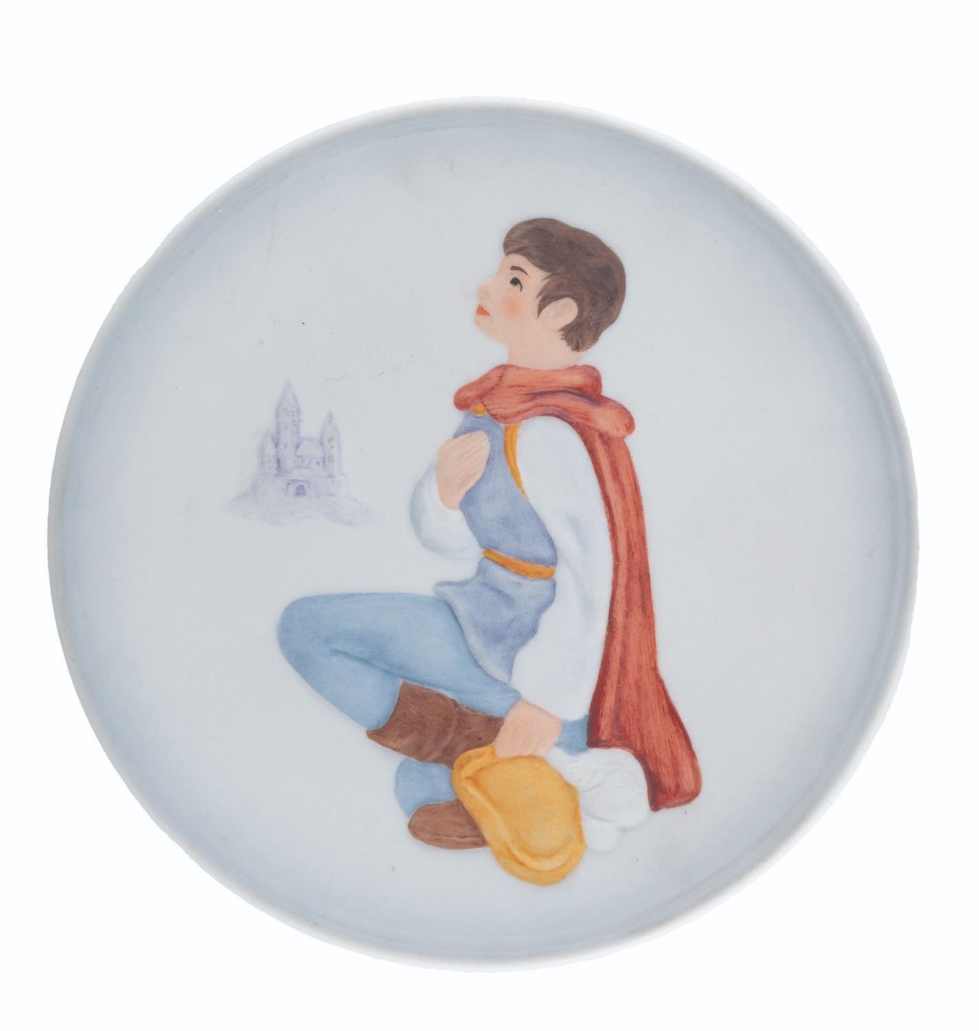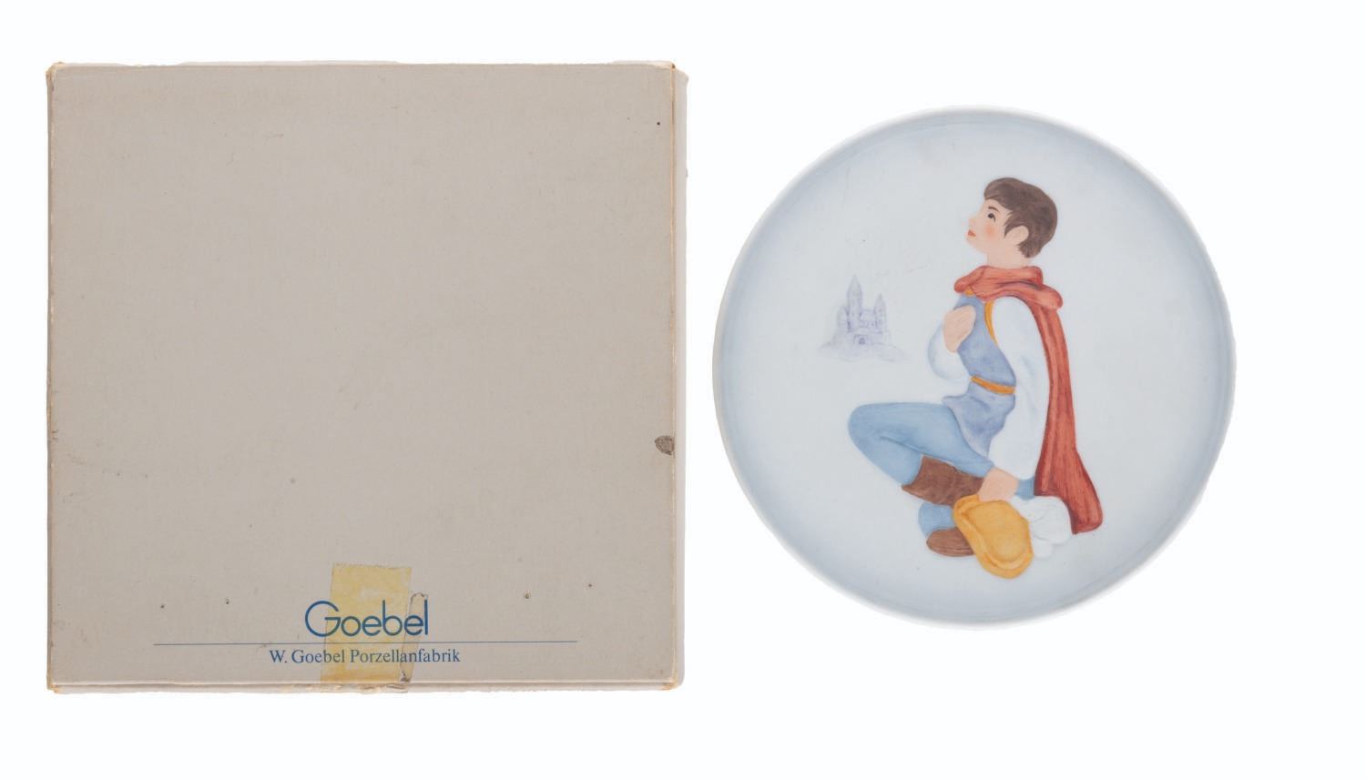 (Goebel, 1987) A mini collector plate of the Prince from "Snow White and the Seven Dwarfs. " Measuring 4 " diameter, the bisque plate is in very good condition with very light wear from display.