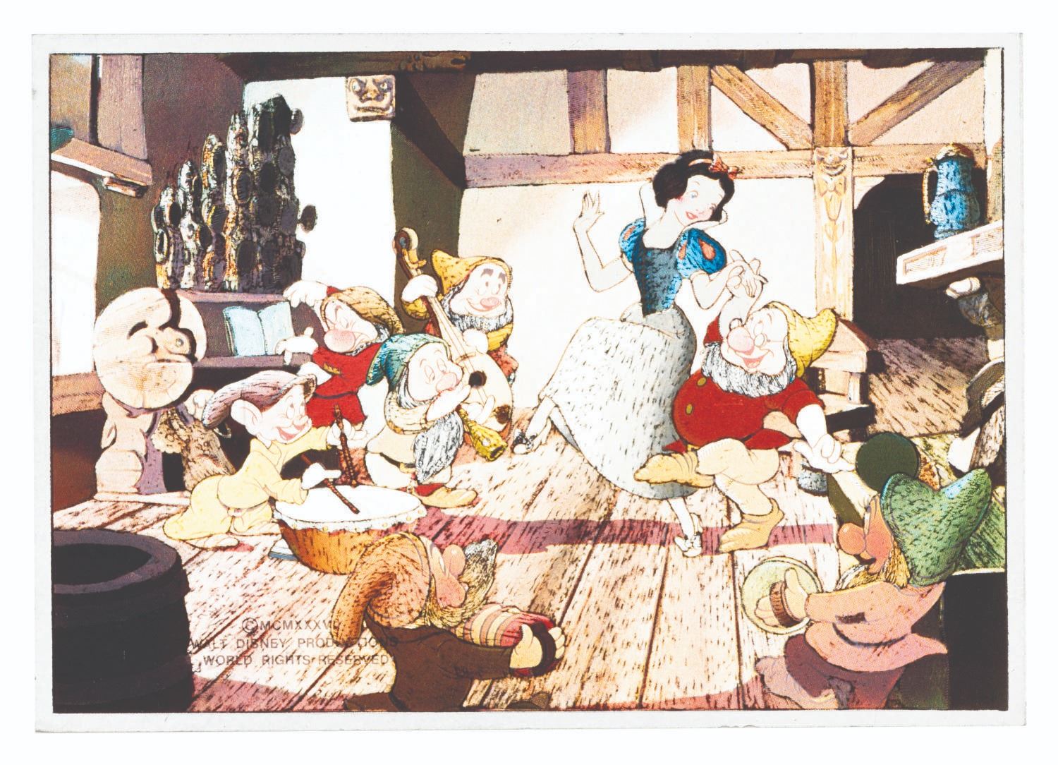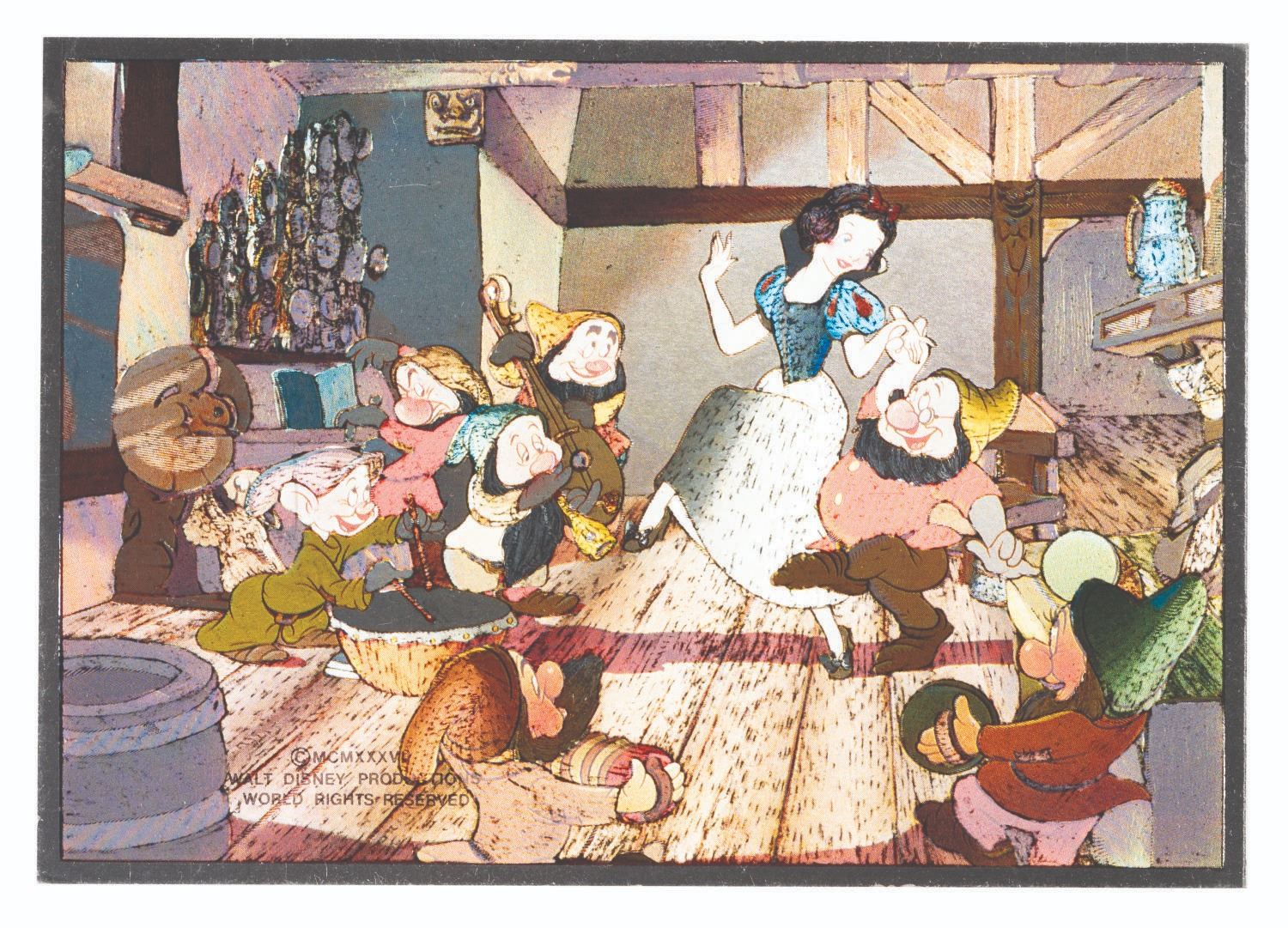 (FJ Warren Ltd., 1960s-80s) A Dufex postcard featuring Walt Disney’s "Snow White and the Seven Dwarfs." Measuring 4.25" x 6", the card is in very good condition with light scuffing, edge wear, and light spotting to the reverse.