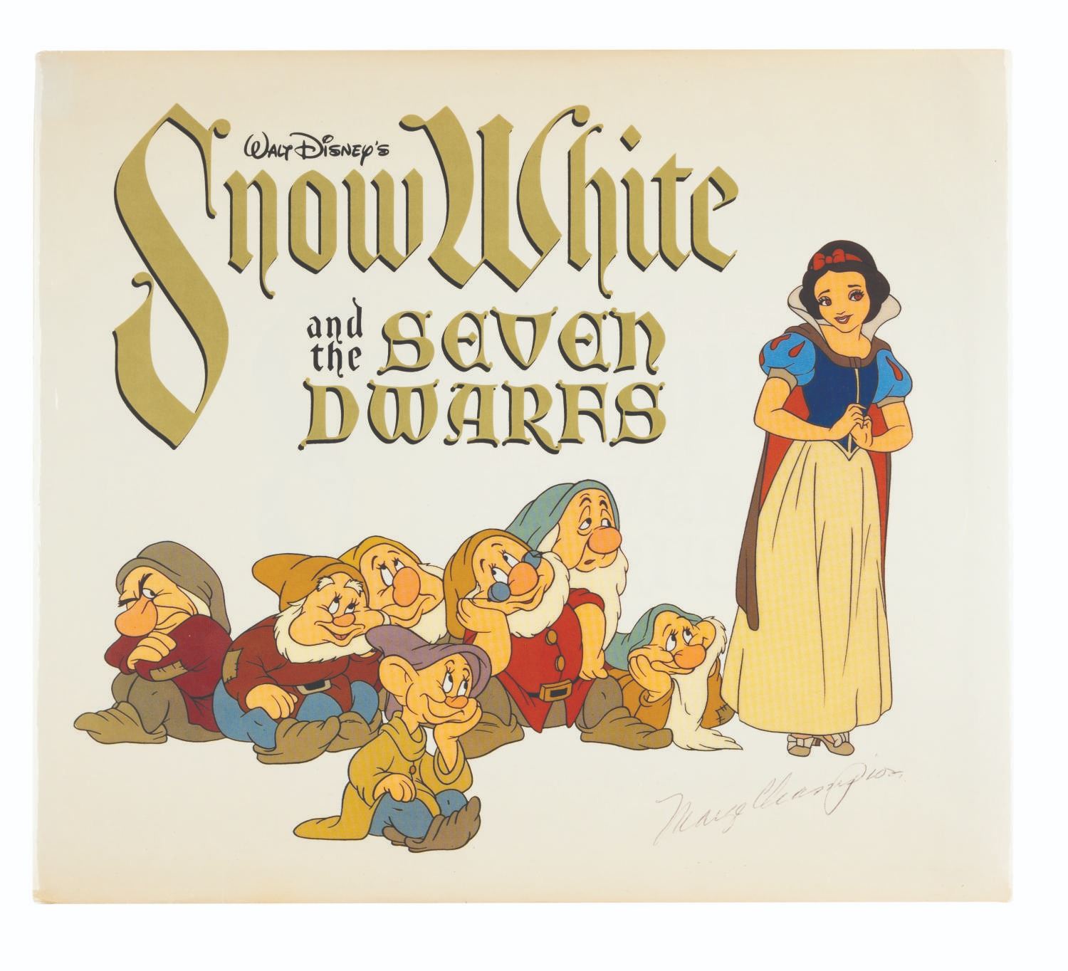 (Viking, 1979) A “Snow White and the Seven Dwarfs” book signed by actress Marge Champion, the dance model for Snow White. Champion later modeled The Blue Fairy in “Pinocchio” and helped choreograph “Fantasia.” The Disney Legend signed the dust jacket of the book in black ink. Measuring 11” x 12.5”, the book is in fine condition, while the dust jacket is in good condition with light surface scratches, wear, and discoloration from age.