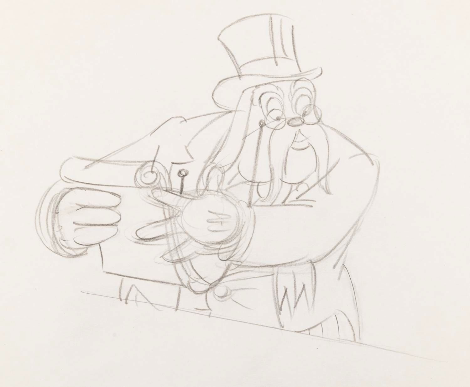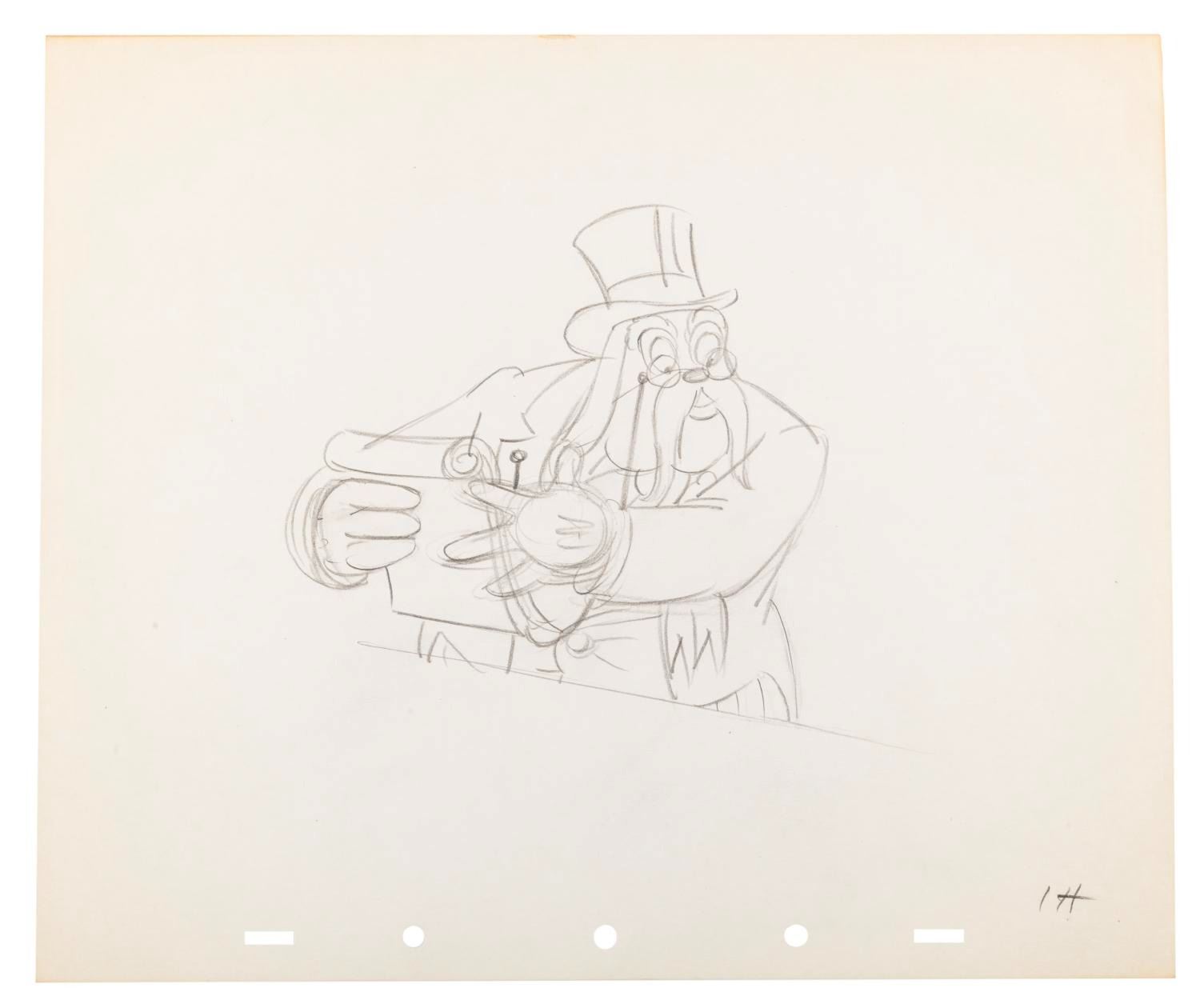 (Disney, 1939) An original production drawing of the Judge in "Society Dog Show. " The Judge has an image size of 5.75 " x 5.5 " on 10 " x 12 " animation paper. The graphite drawing is in very good condition with light creasing and discoloration.
