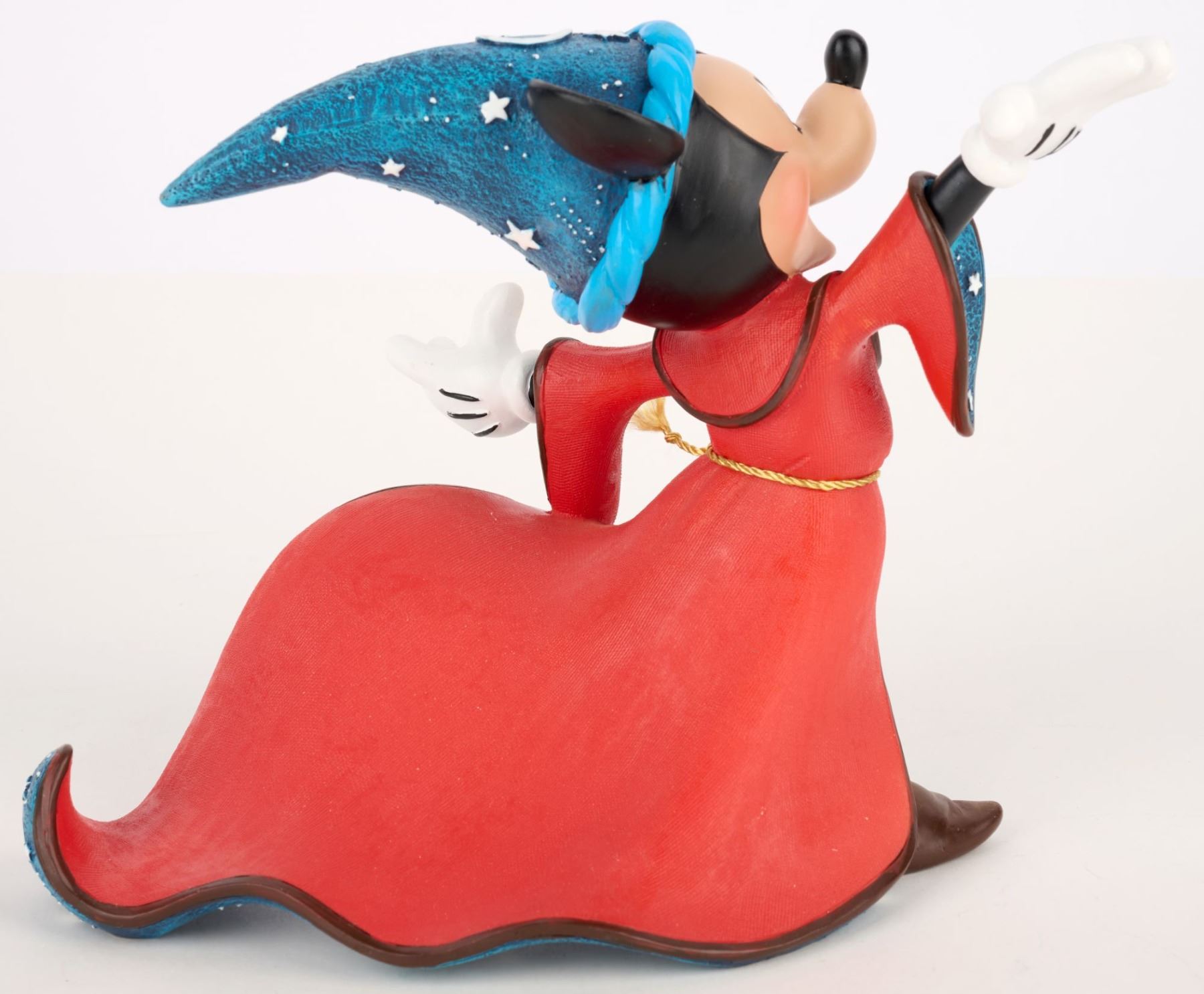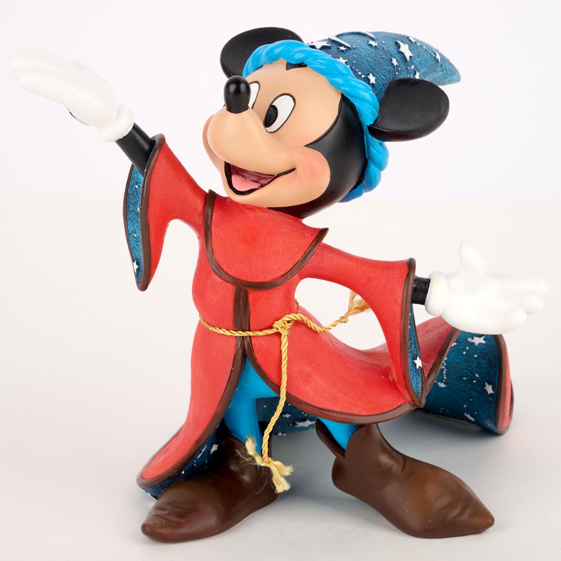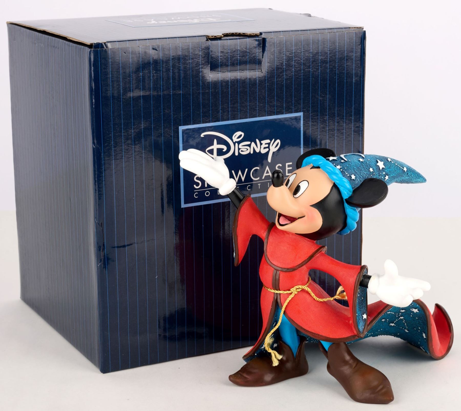 (Enesco, 2020) A Disney Showcase Collection ‘Couture de Force’ figurine of Sorcerer Mickey from Walt Disney’s “Fantasia," released for the film's 80th anniversary. Measuring 8" x 6.25" and 6.25" tall, the resin figurine is in fine condition with light manufacturing-related imperfections and comes with the original box.