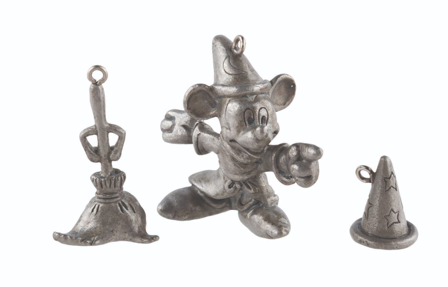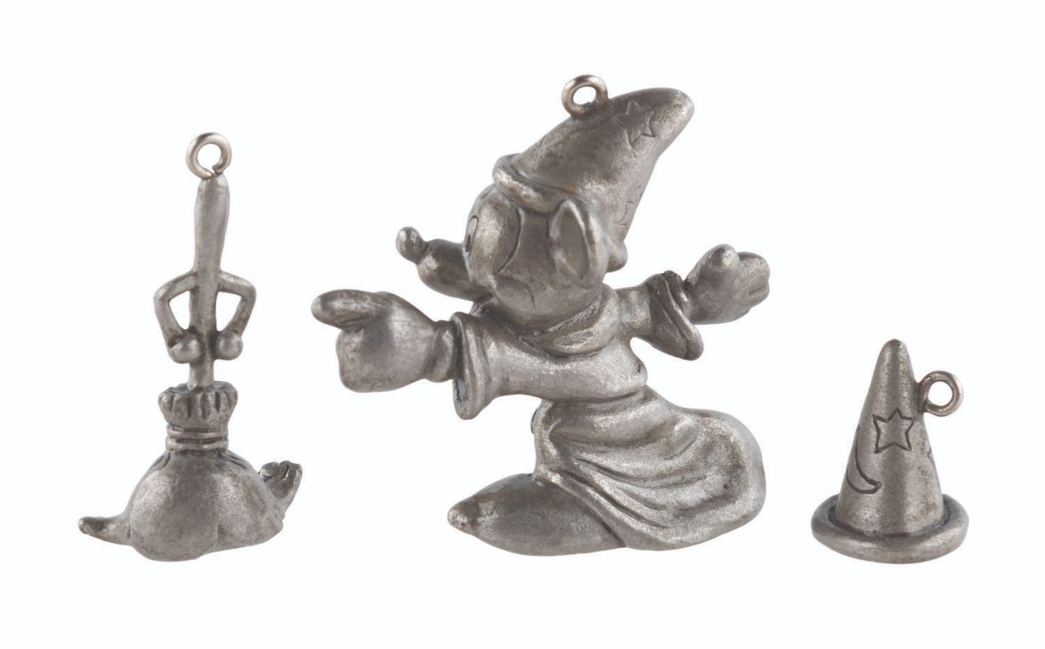(Hallmark, 2001) A set of three Sorcerer’s Apprentice pewter charms, including Yen Sid's hat, Mickey as the Apprentice, and a magical broom. Standing from 0.5 " to 1.25 " tall, the charms are in very good condition.